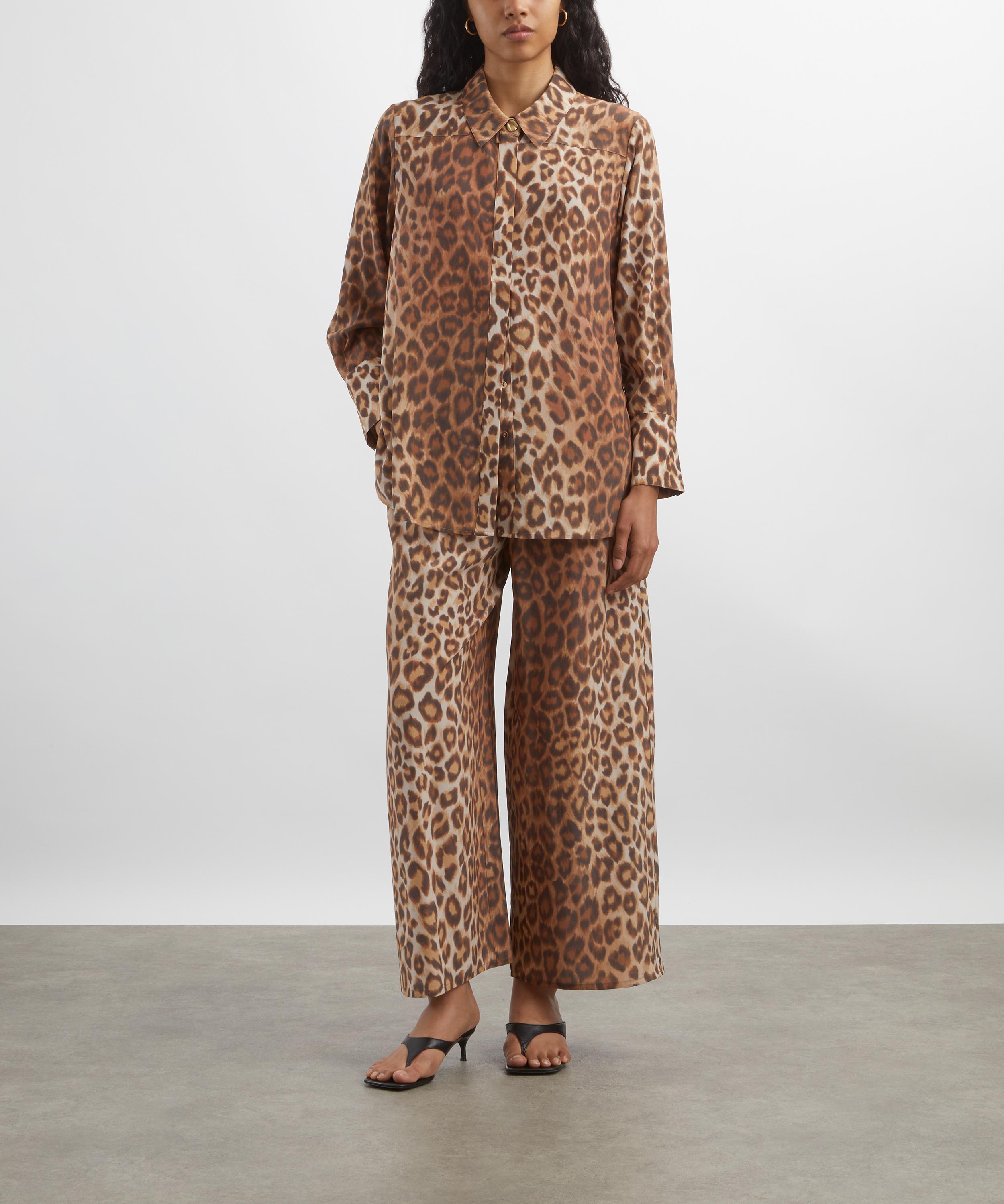 Adorned with an all-over bold leopard print, this luxurious silk pyjama-style shirt features a relaxed fit with straight sleeves, exaggerated cuffs, and a classic shirt collar - offering effortless style and exceptional comfort.