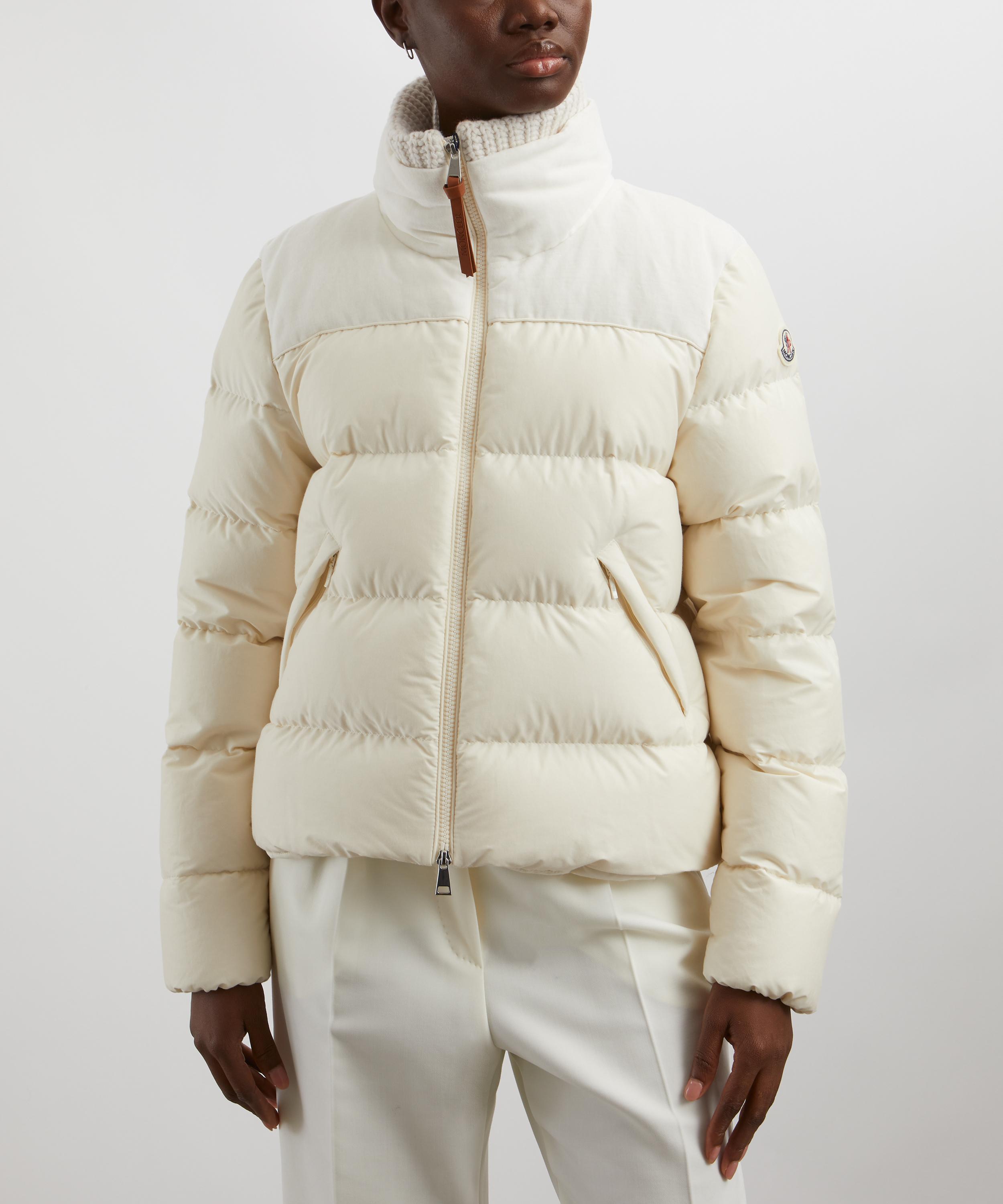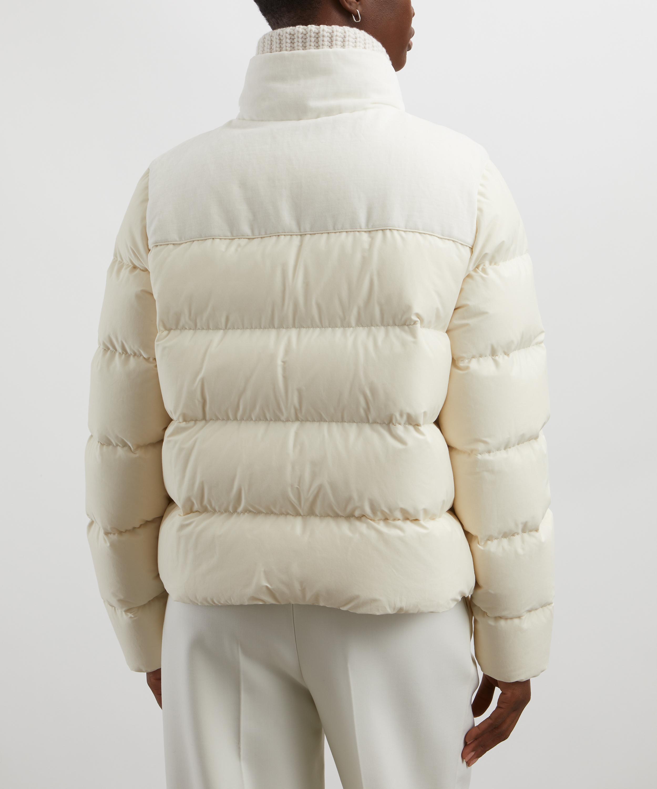 An elevated everyday piece, this zip-up jacket is designed with a flattering silhouette with sleek angular quilting throughout. Secured with a double-ended zip closure, this go-to staple is finished with knitted panelling to the throat to lock in warmth.