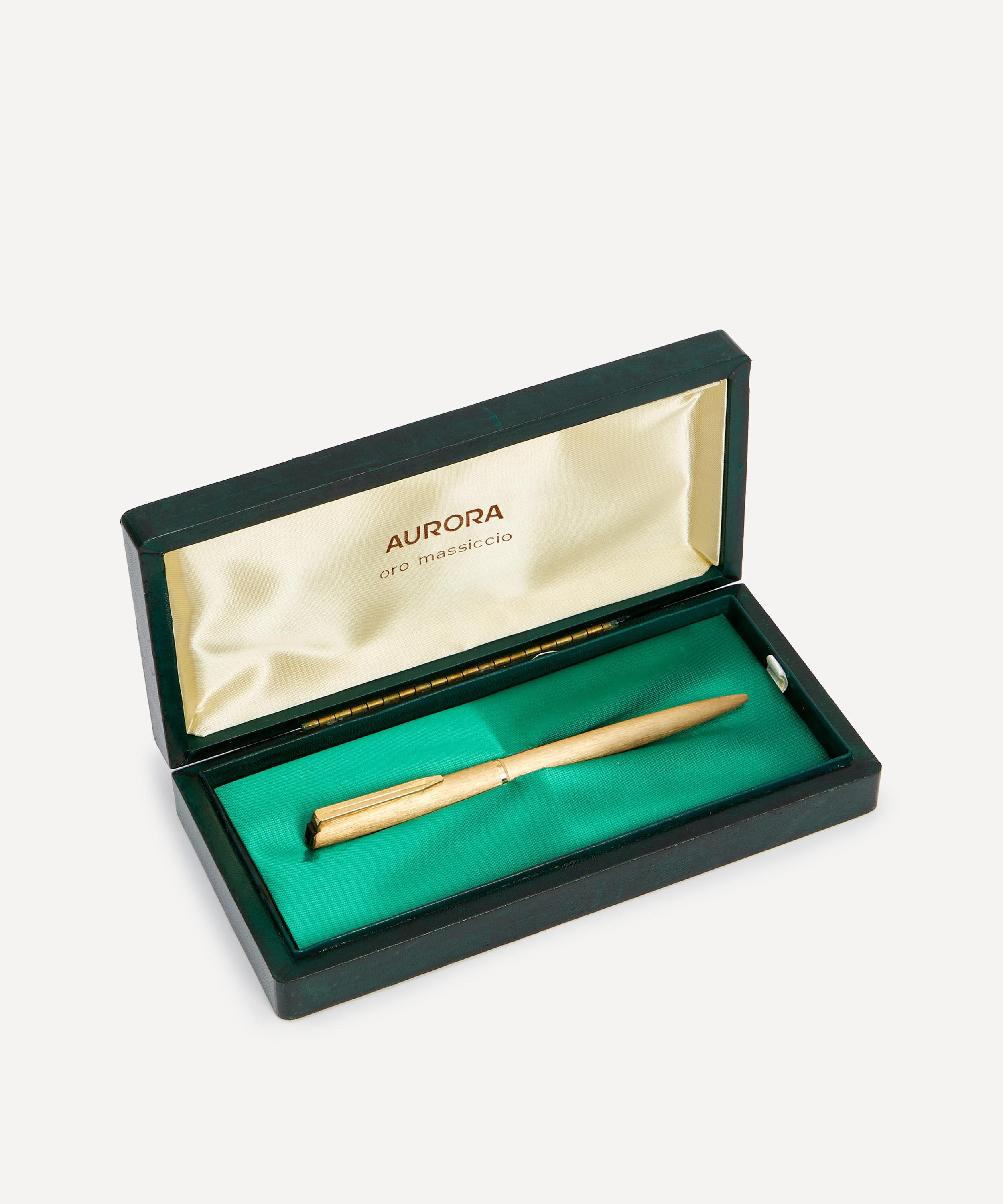 Featuring an elegant solid 8kt gold with a brushed stain finish, this pen is set to become a future heirloom - crafted to be passed down for generations. Smartly presented in its original box, this sleek stationary essential is a chic addition to your workspace or a perfect gift to a loved one with literary tendencies.
