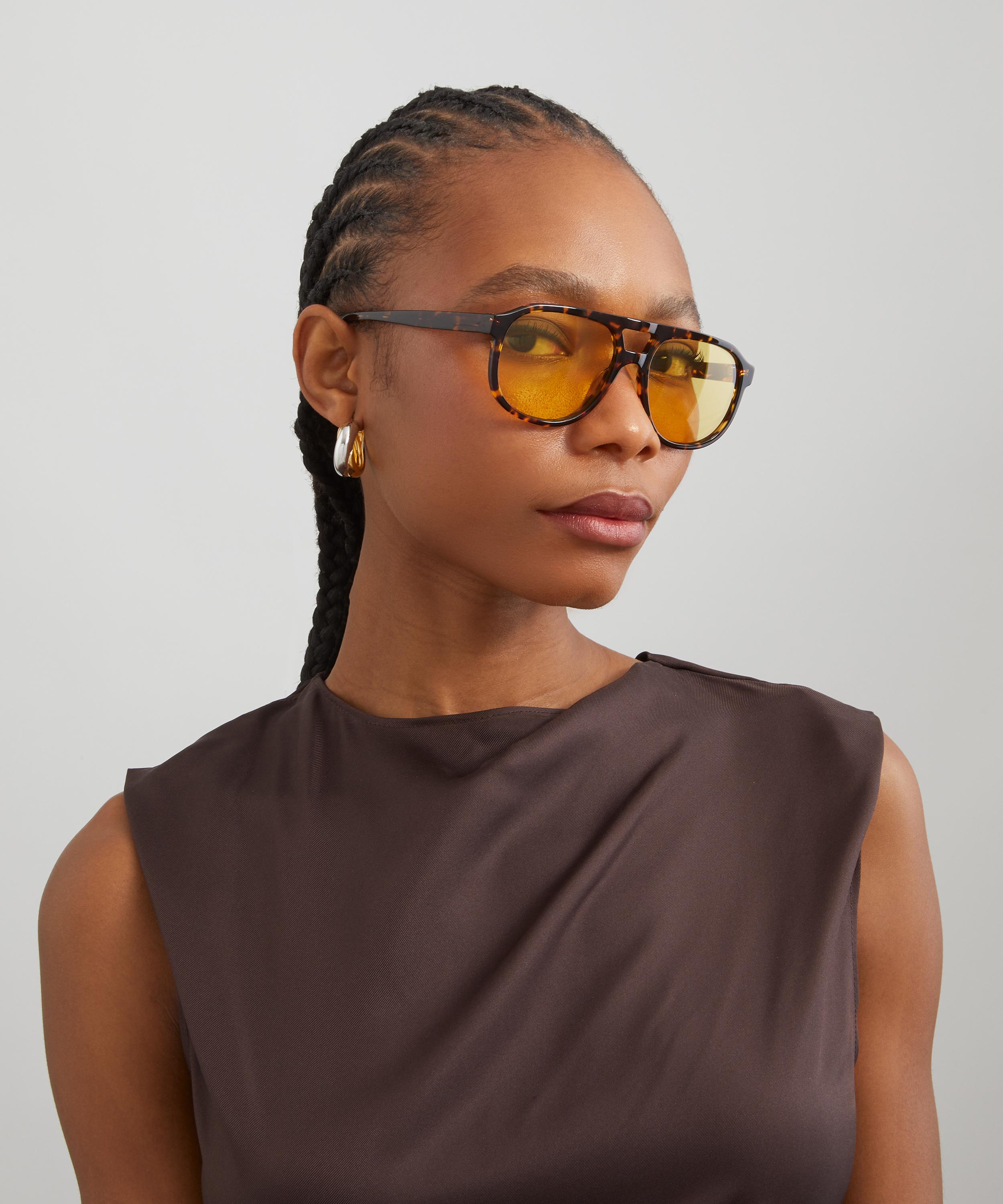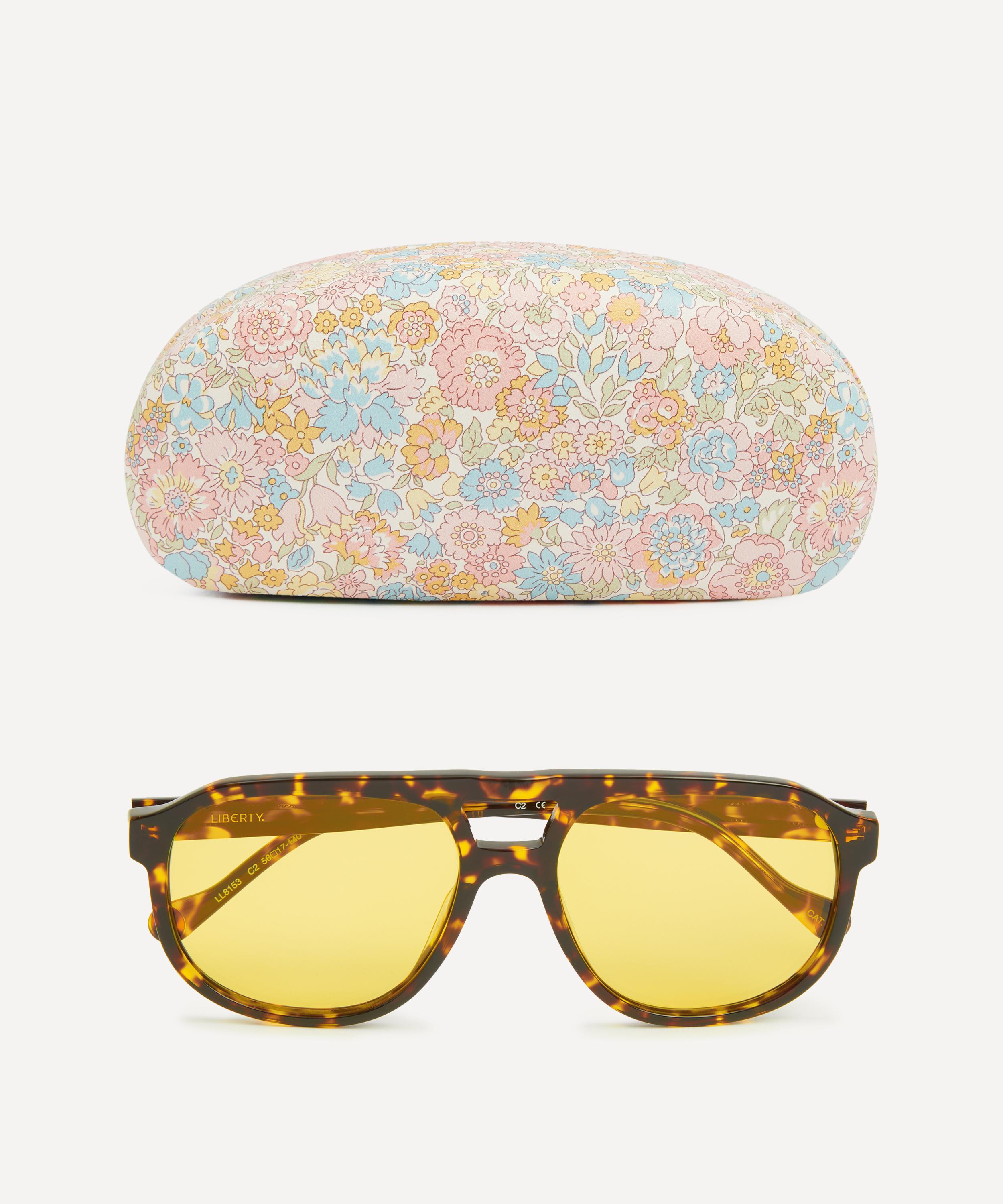 Expertly crafted from smooth and durable acetate, this flattering pair is characterised by its classic aviator shape, offering both a polished look and practicality. The elegant tortoise design is complimented by yellow-tinted lenses – to shade and protect your eyes from UV light. Finished with signature Liberty branding to the temple, they arrive housed in a bespoke Liberty print case – perfect for sun-drenched city strolls or weekend escapes to the coast.