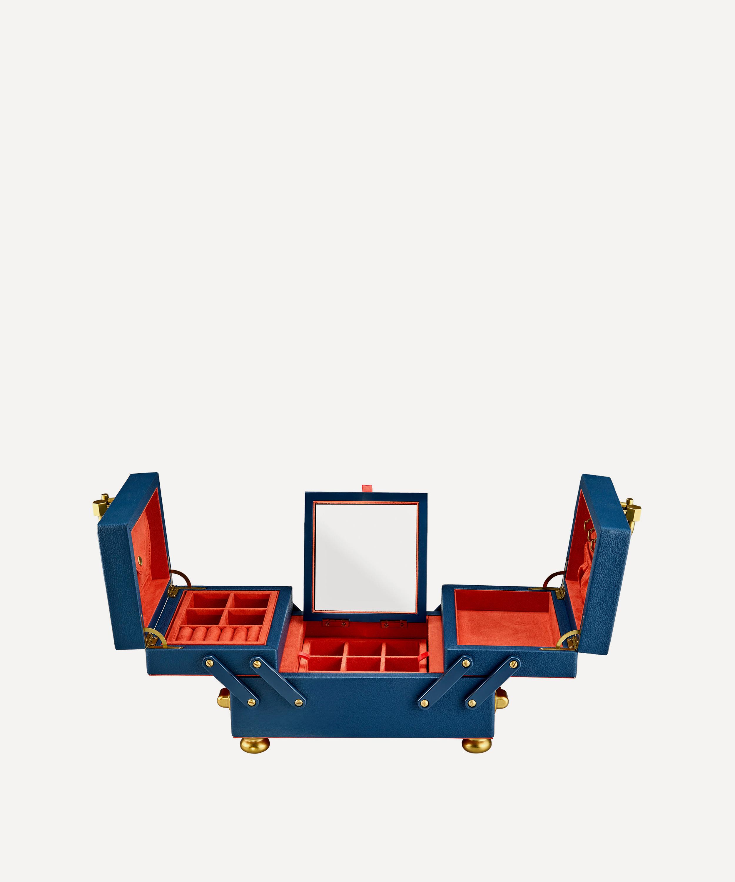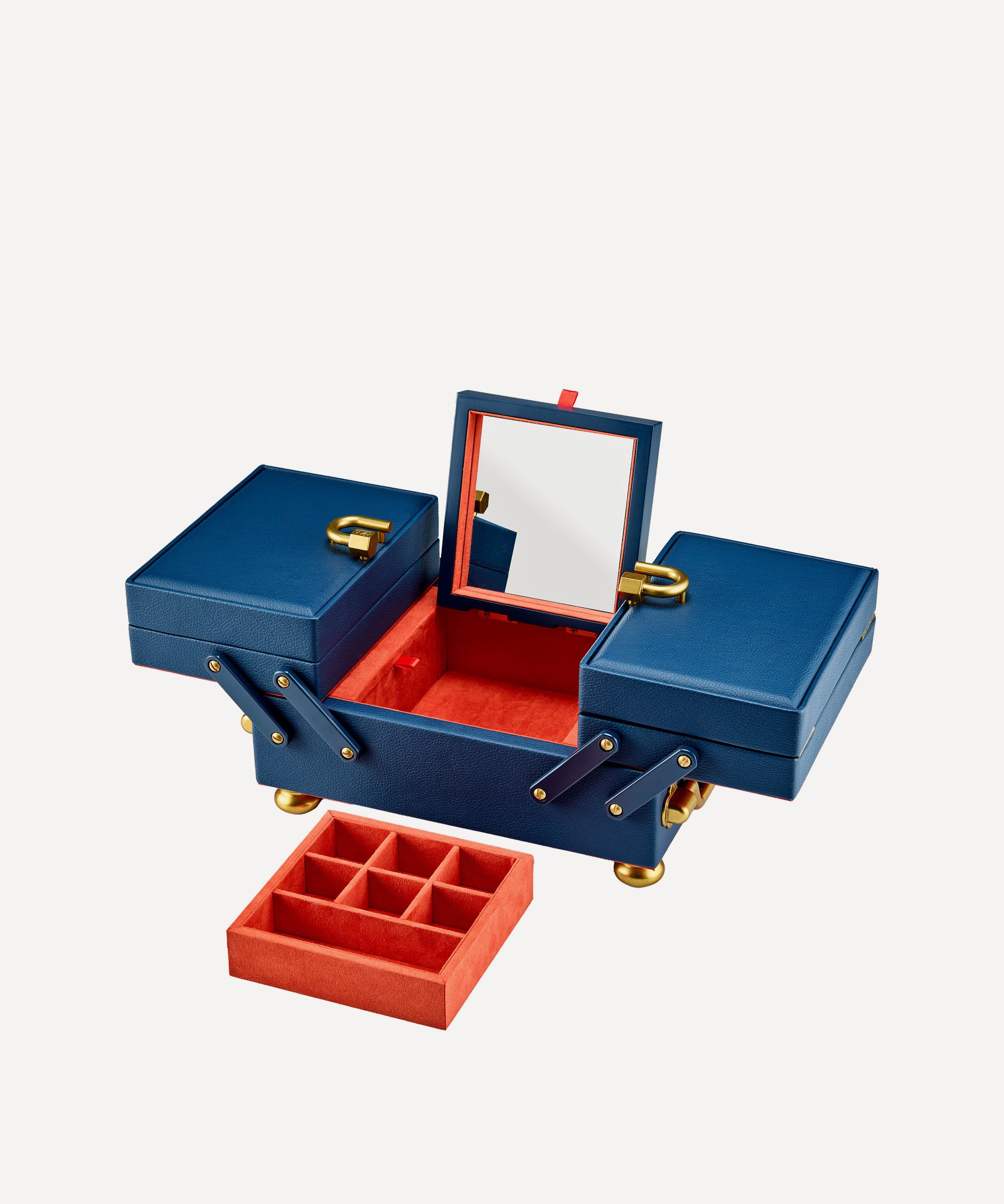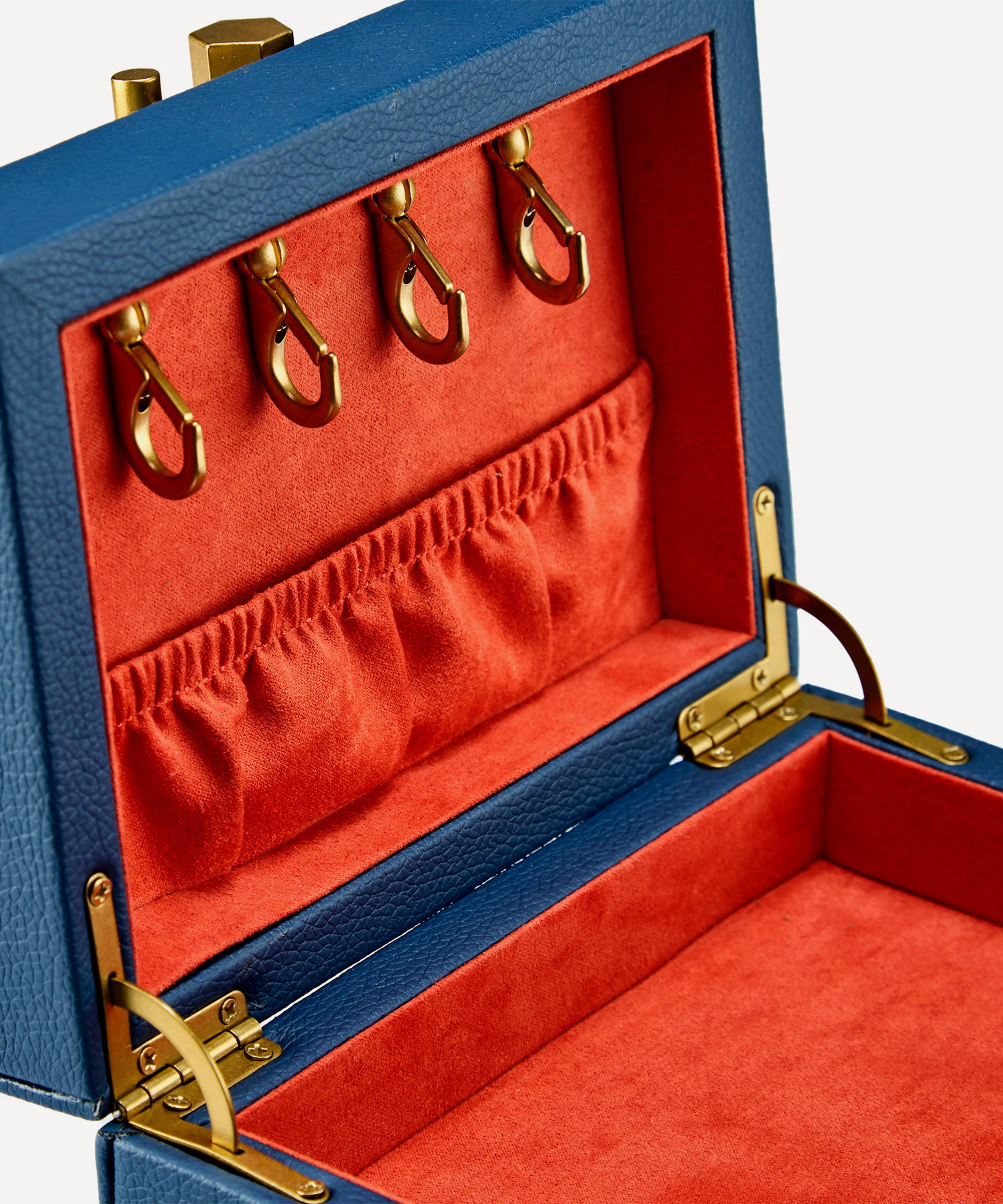 Crafted in faux leather, it’s a feat of precision engineering with carry handles on either side and two removable trays that you can fill and store either inside or outside the box. It opens and closes with a satisfying tactility due to the brand’s signature lock mechanism – inside you’ll find a wall of brass hooks that are perfect for hanging chains and necklaces, an envelope pocket for important papers, two secret compartments and a mirror. Whether used for housing letters and meaningful mementos or your favourite jewellery pieces, it holds space – both literal and symbolic – for the stories we choose to carry.