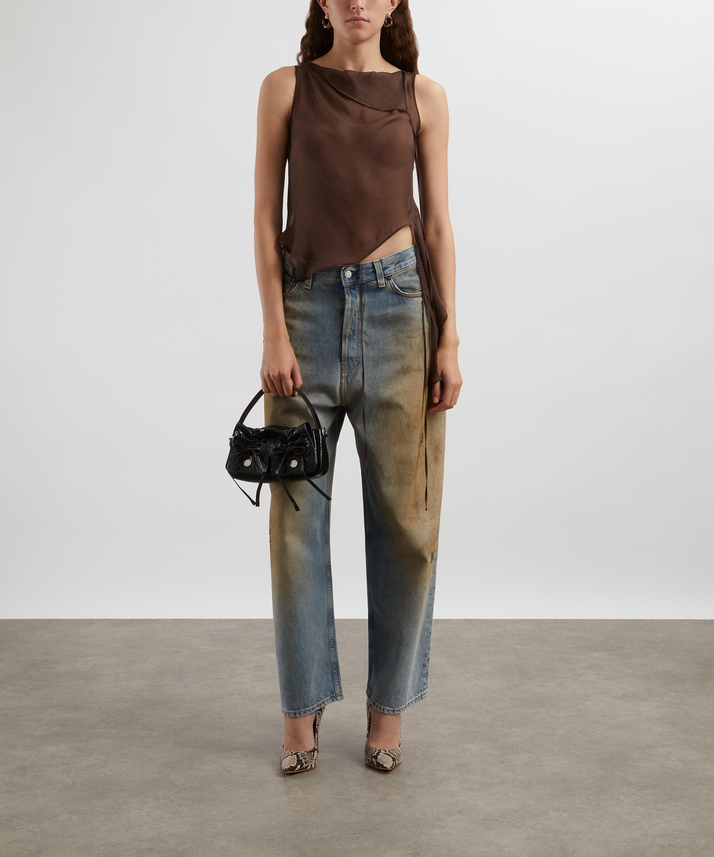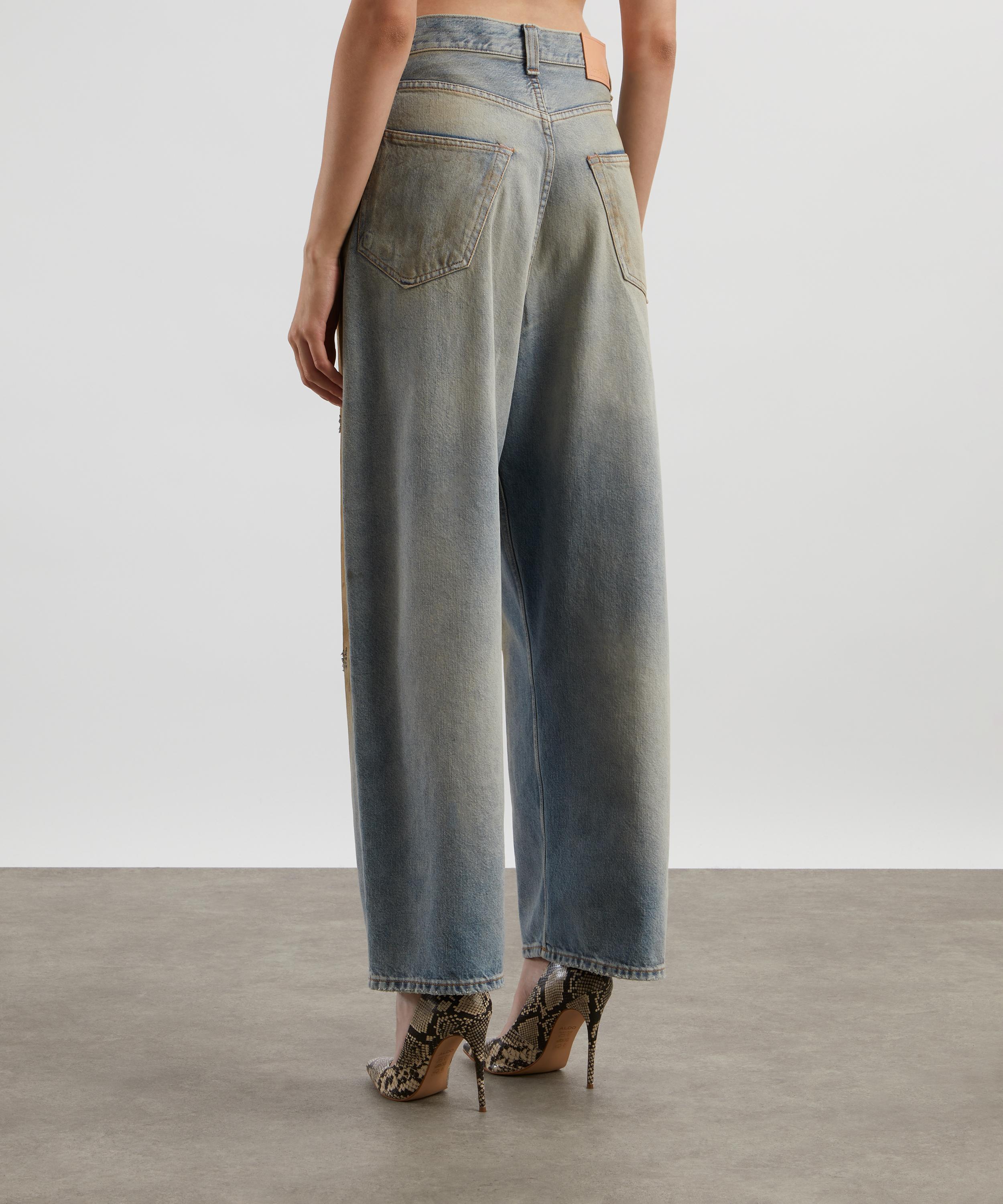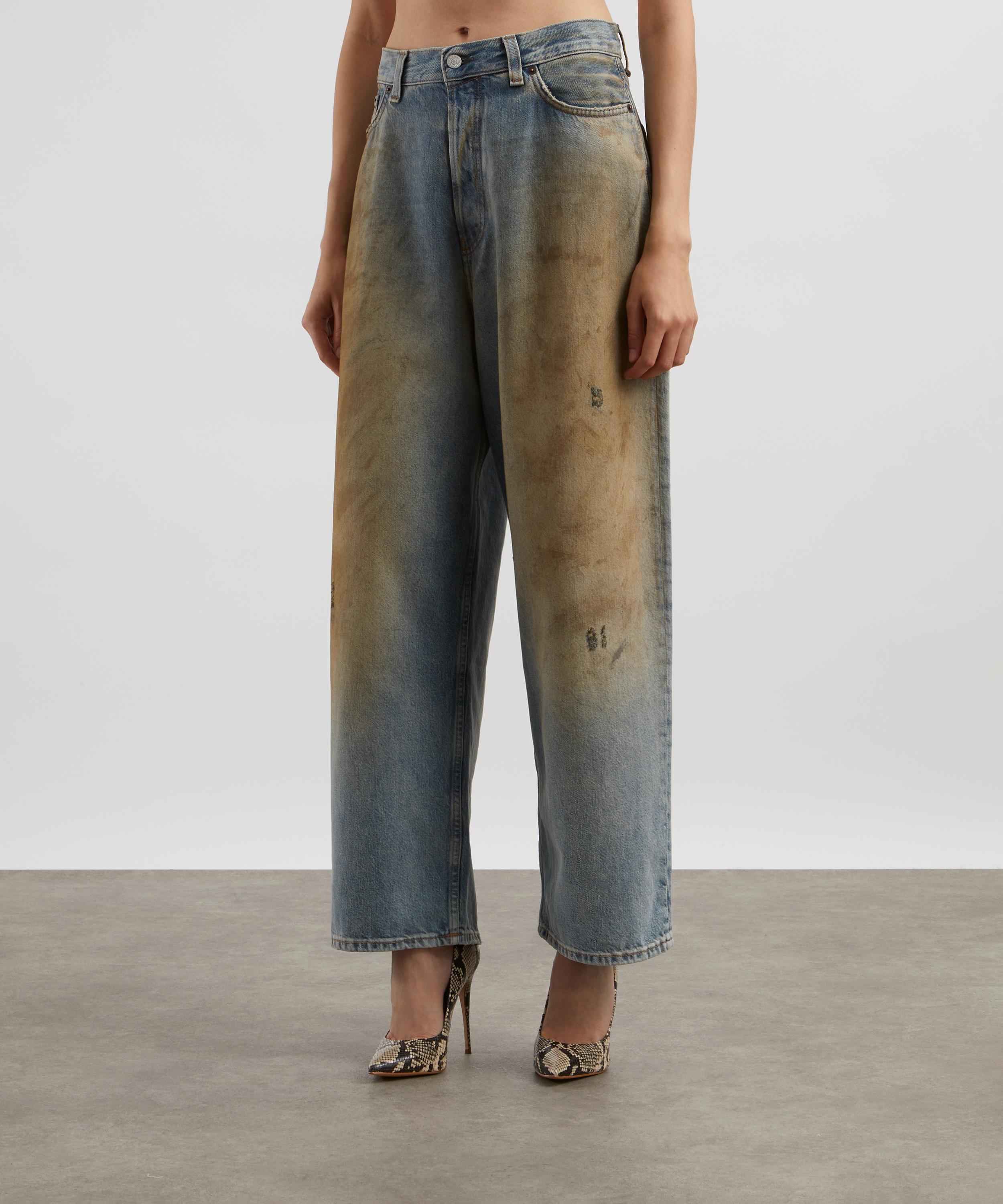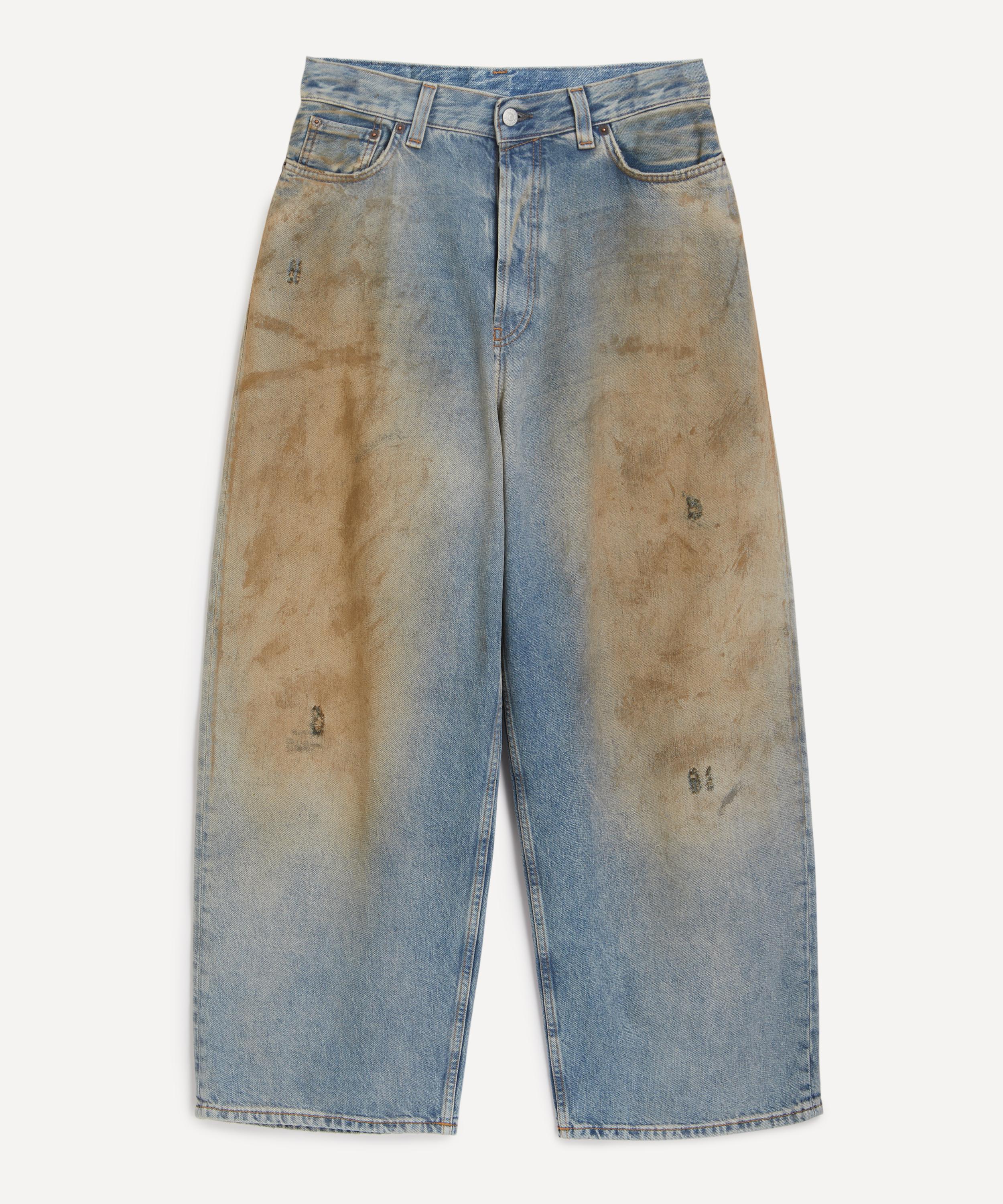 A contemporary take on a classic design, this pair is crafted from pure cotton with smudging and distressed details for a bold look. Cut to a baggy, wide leg fit, they’re finished with a button fly fastening and multiple pockets.