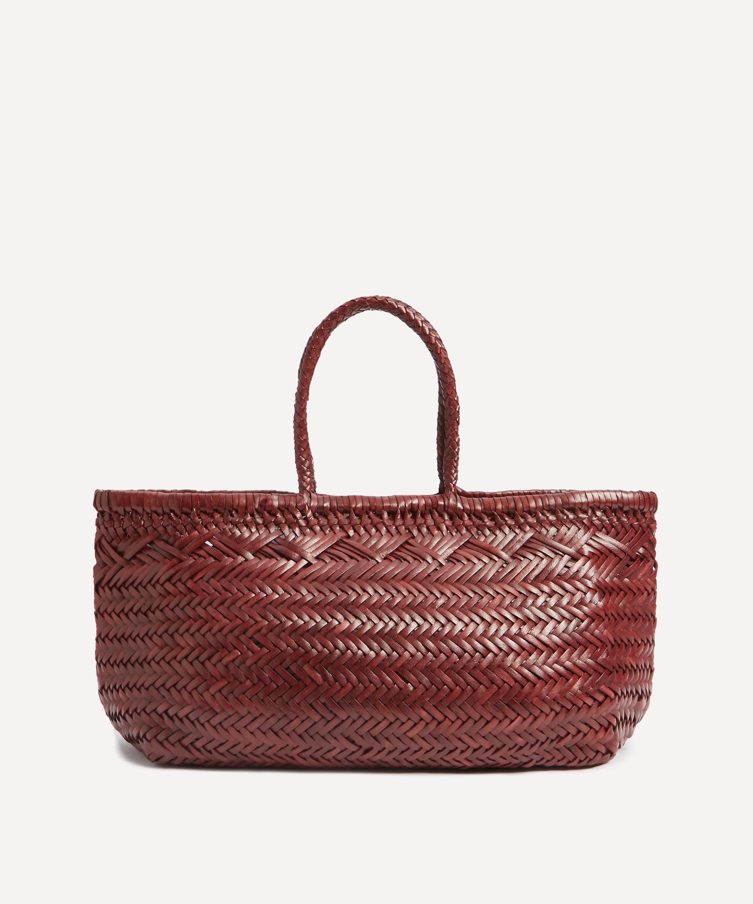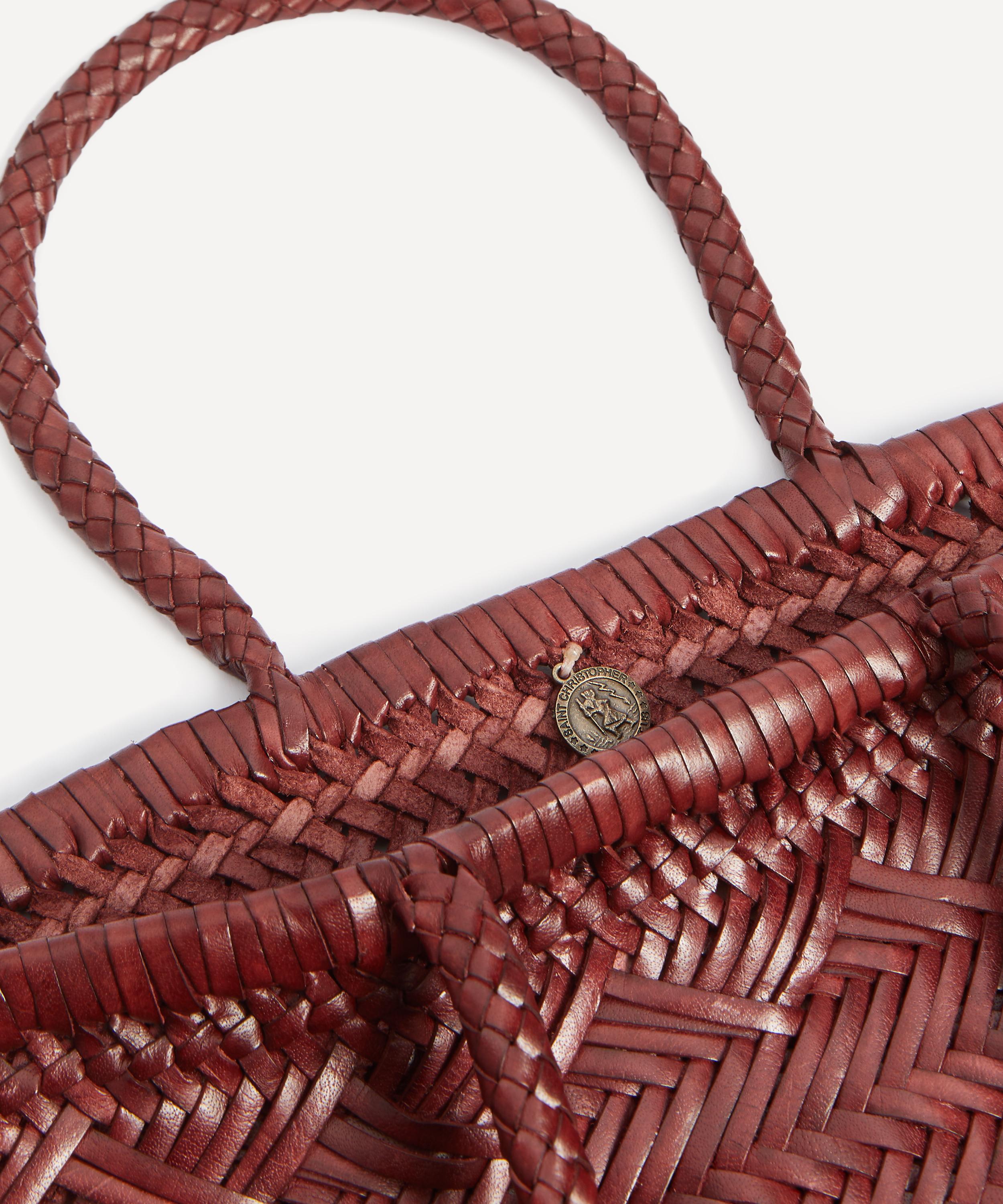 Reimagining Dragon Diffusion's iconic Triple Jump basket bag in a big, roomy silhouette, this piece perfectly showcases the brand’s heritage-inspired, hand-woven leather work. This tactile piece is constructed from a diagonal chevron weave and features a spacious main compartment, an open top for effortless use and an antiqued St. Christopher medal charm hand-sewn inside – the brand’s seal of authenticity in homage to the patron saint of travellers.