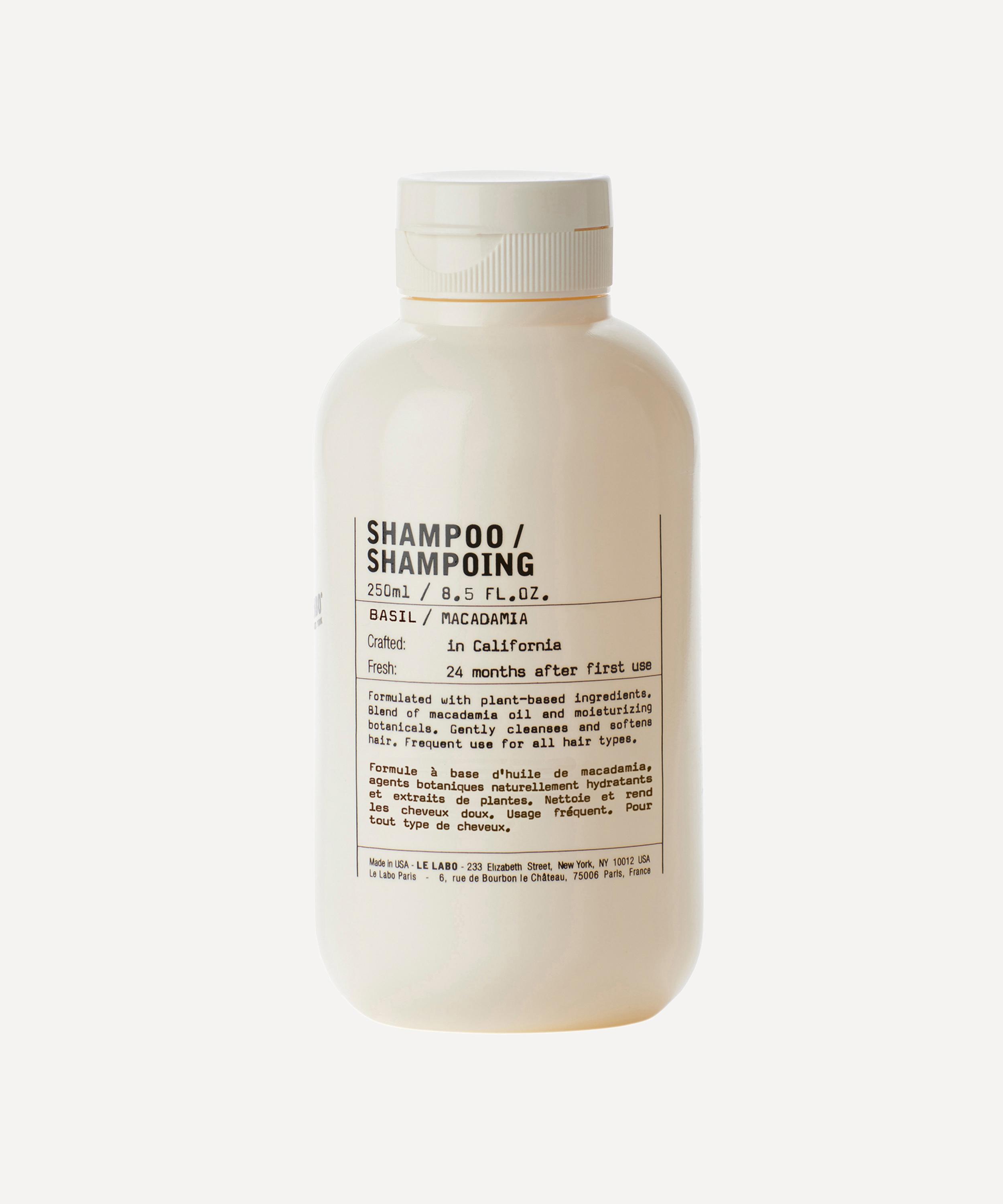 This awakening Basil shampoo from Le Labo celebrates simplicity with a harmonious blend of plant-based ingredients. Enriched with macadamia, rosemary leaf and rice extract, this thick, rich lathering formula boasts stimulating, repairing and strengthening powers, void of any harmful synthetics.