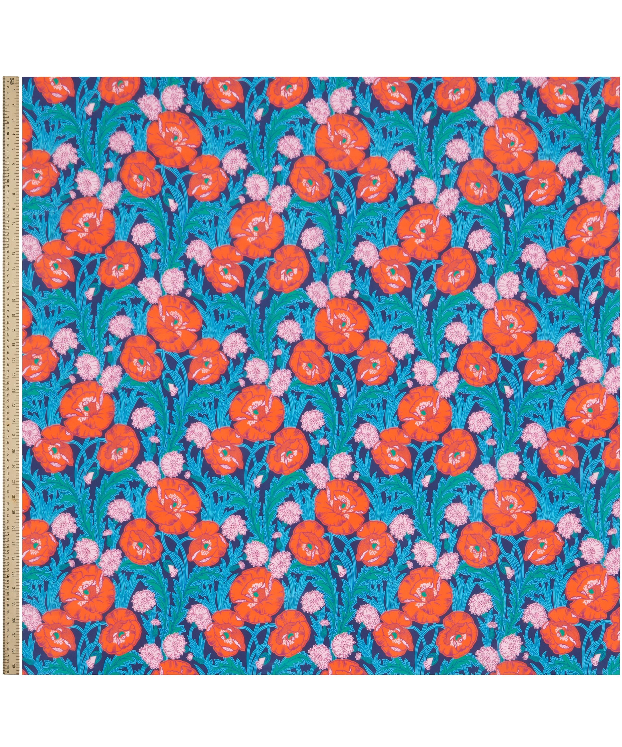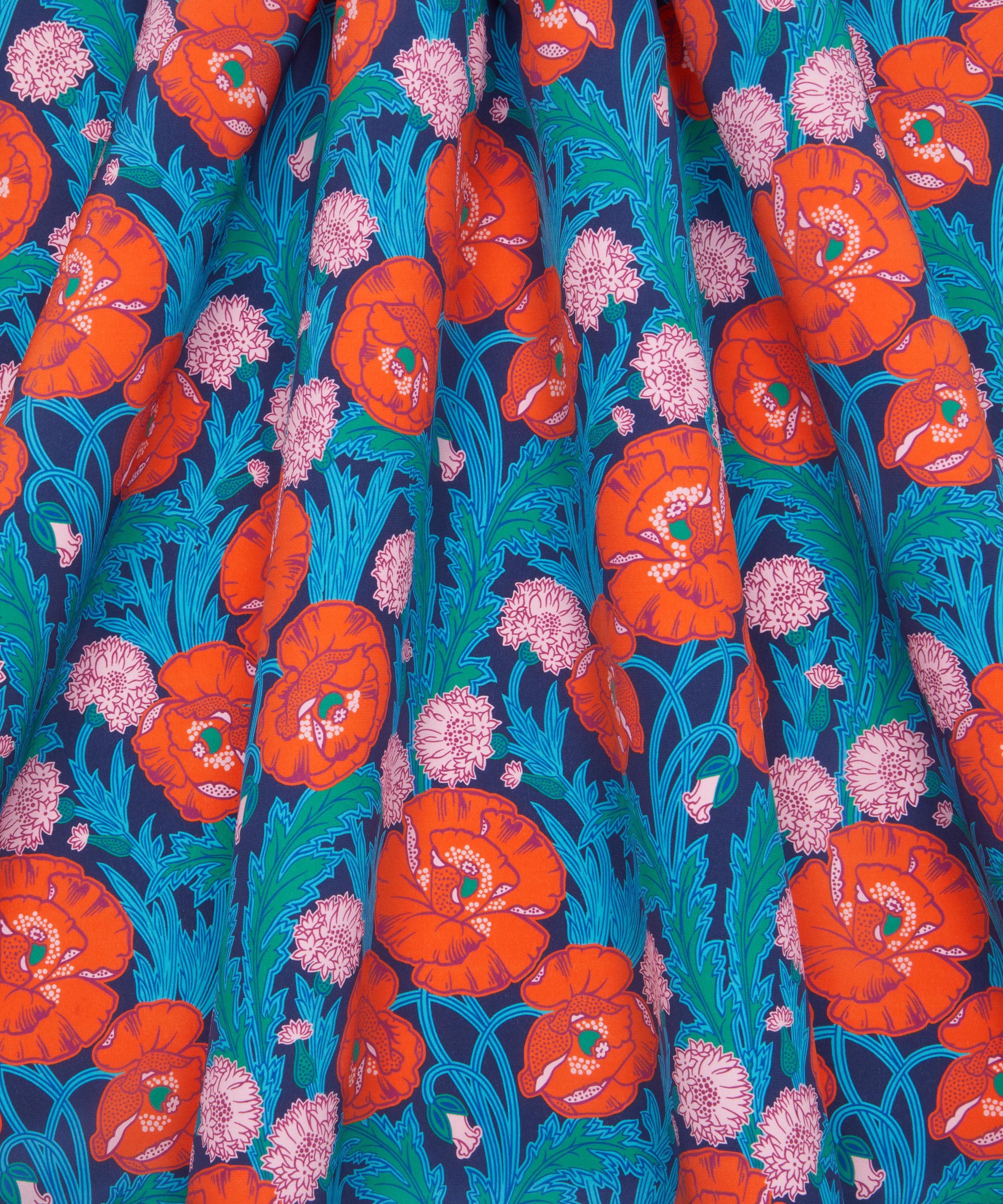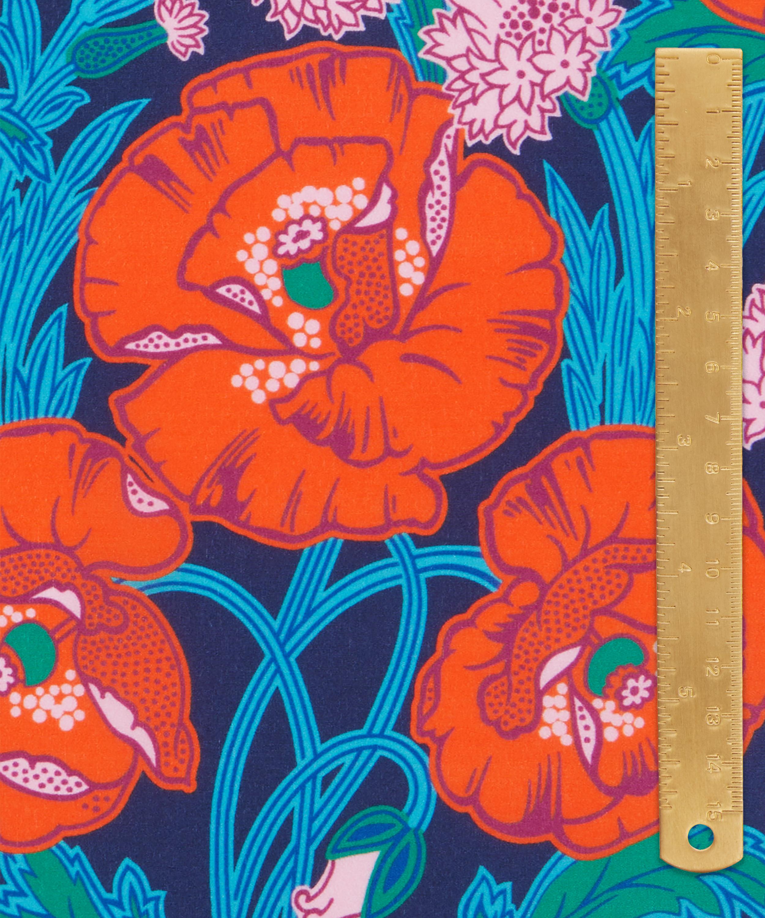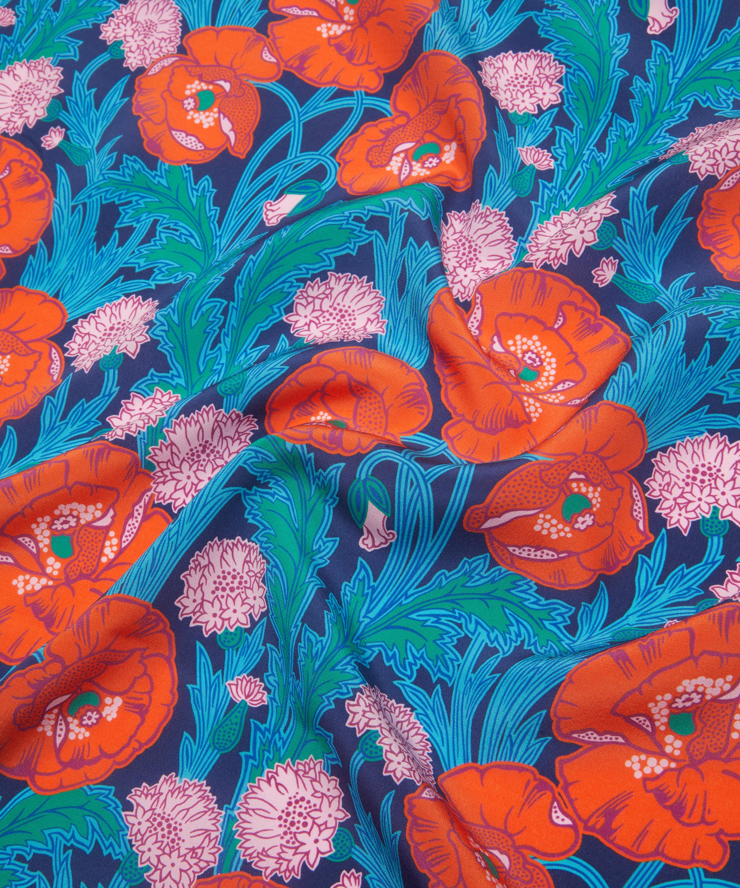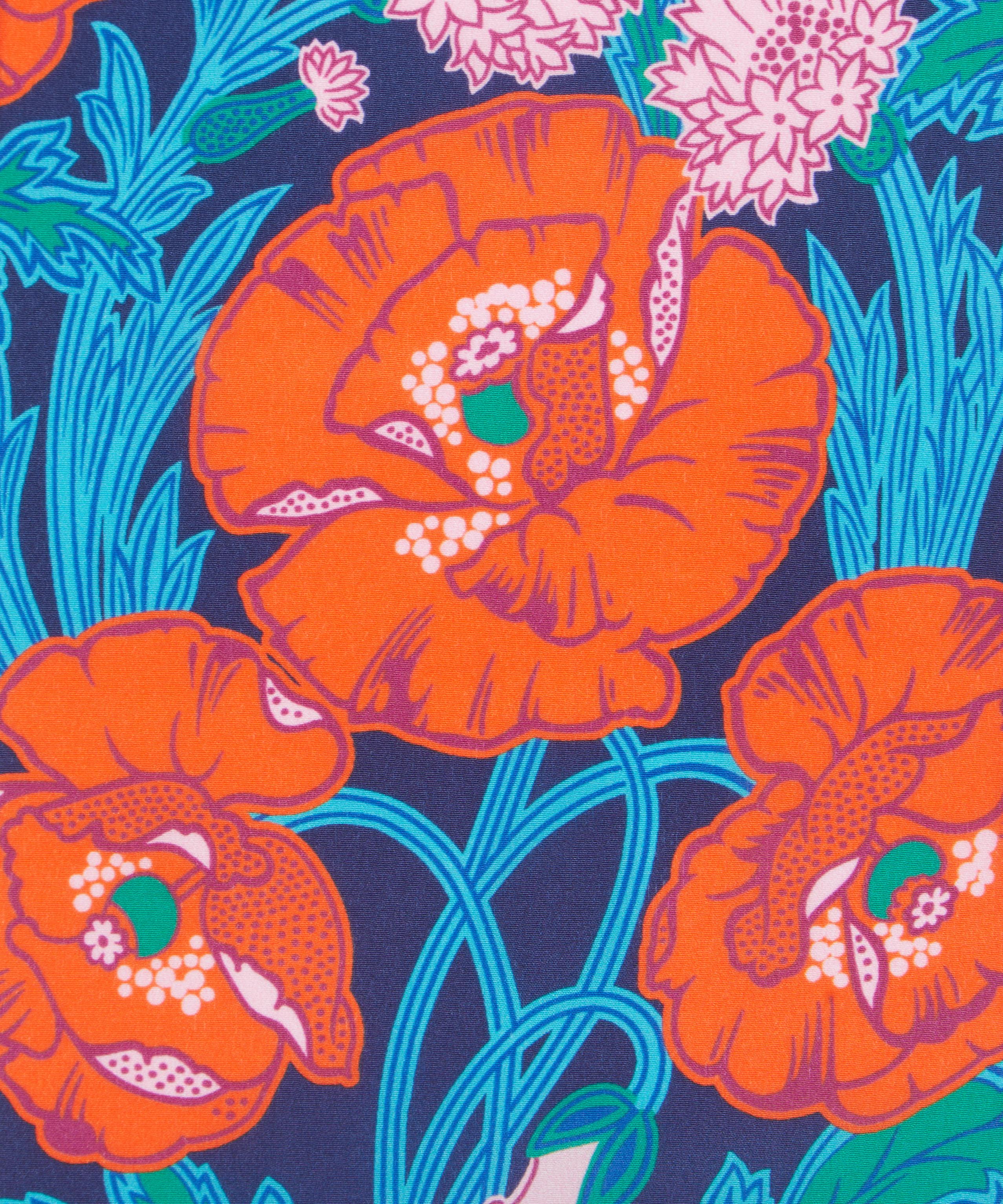 Beatrice Maud is a tribute to one of Liberty’s signature flowers- the iconic poppy. Hand-painted in the early 1980s, this sophisticated botanical is a contemporary rendition of a typical Art Nouveau design. Elegant trailing poppies, winding foliage and pops of stylised carnations are emphasised by richly coloured grounds and bold outlines. This print is part of the Floral Library narrative of the AW24 collection, which studies the subject through the Botanist’s eye, cataloguing and exploring an assortment of species as well as a being a celebration of key florals throughout Liberty’s history.