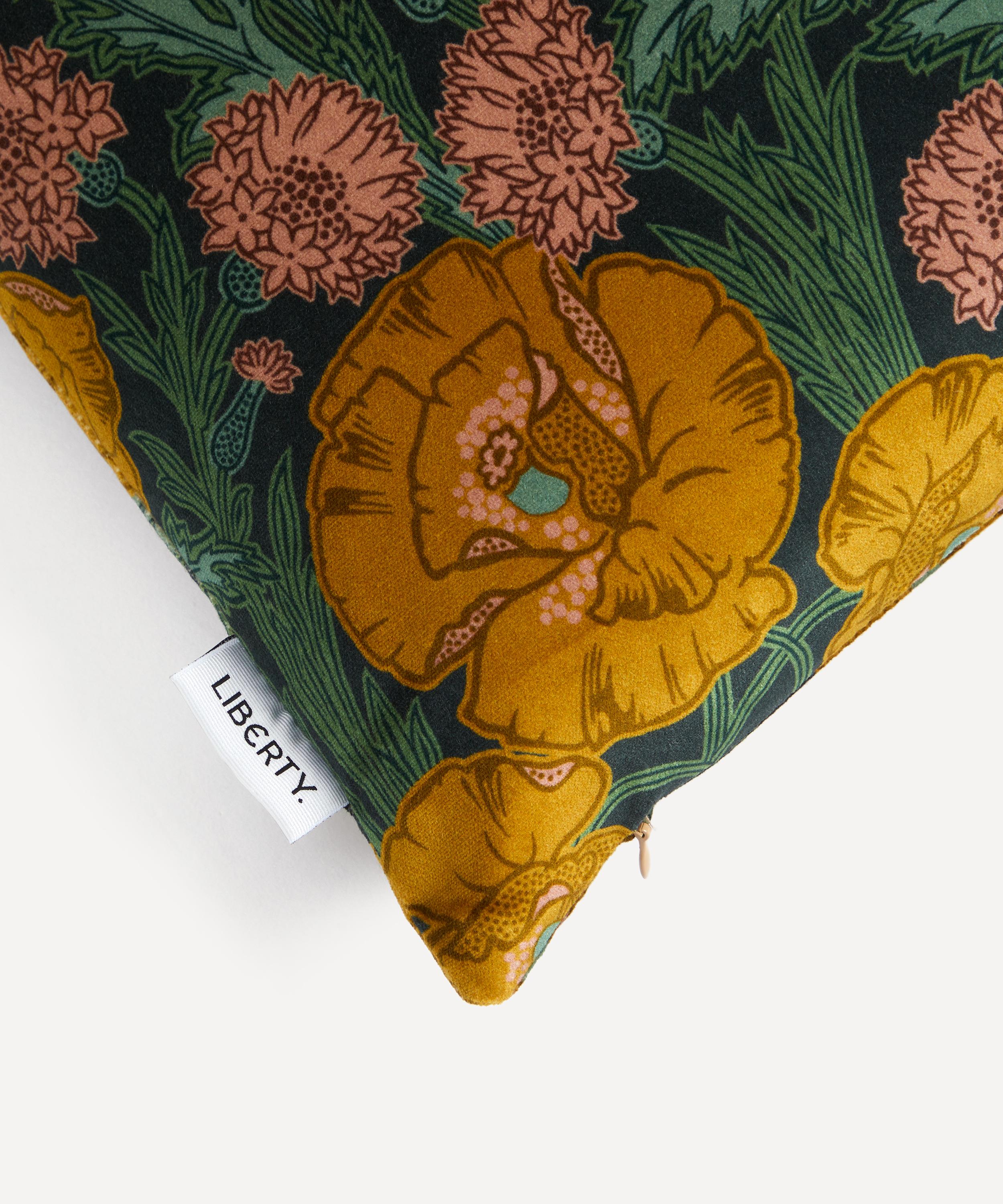 This Liberty square cushion features our Beatrice Maud print and is decadently soft with a plump recycled duck feather filling. Created in the Liberty design studio, Beatrice Maud – a contemporary rendition of a typical Art Nouveau design charmingly spotlighting poppies – appears here in a beautifully engineered iteration, complete with edge stitching for an immaculate finish. The cushion’s classic silhouette and richly hued palette add an elegant twist to modern interiors.