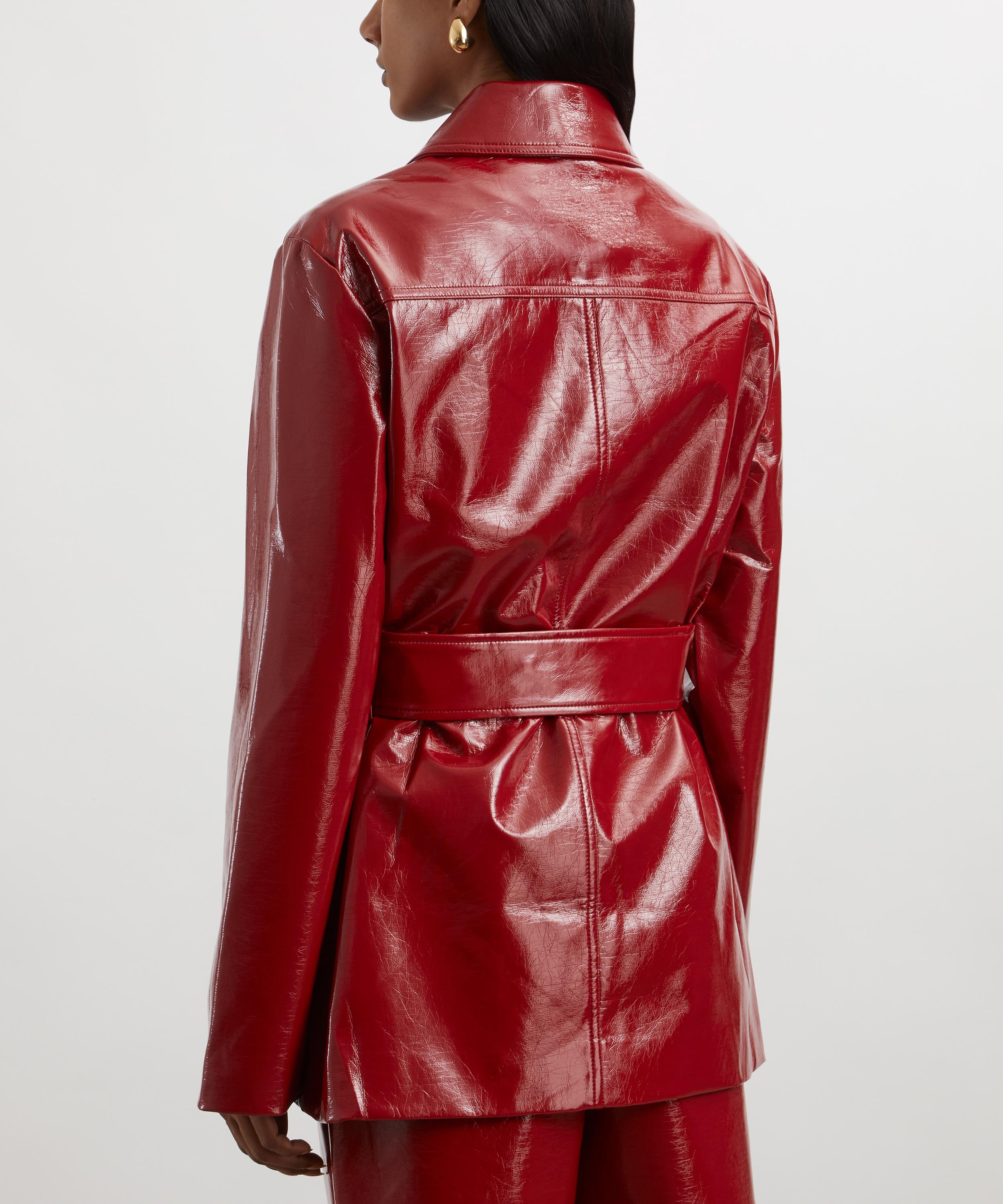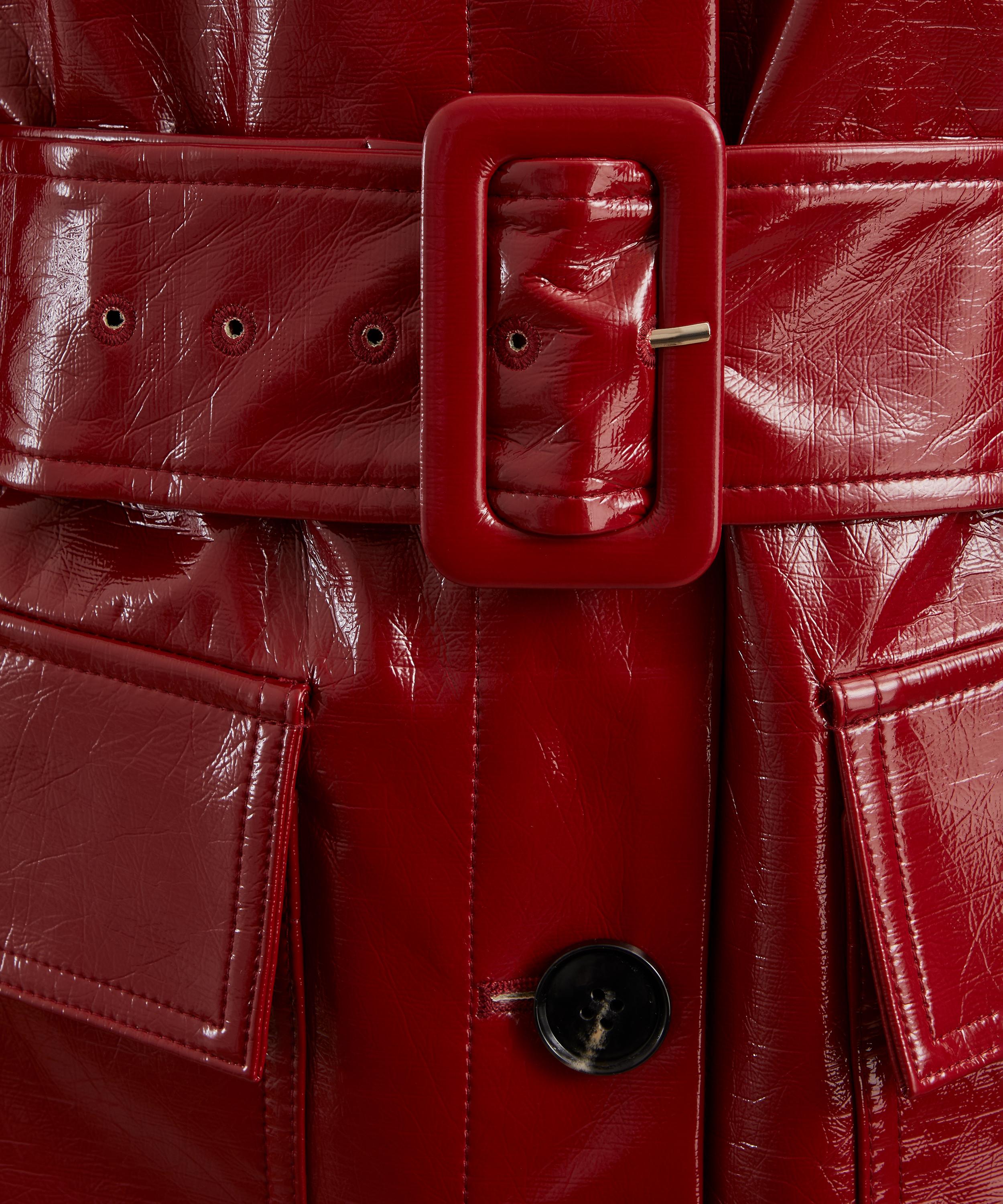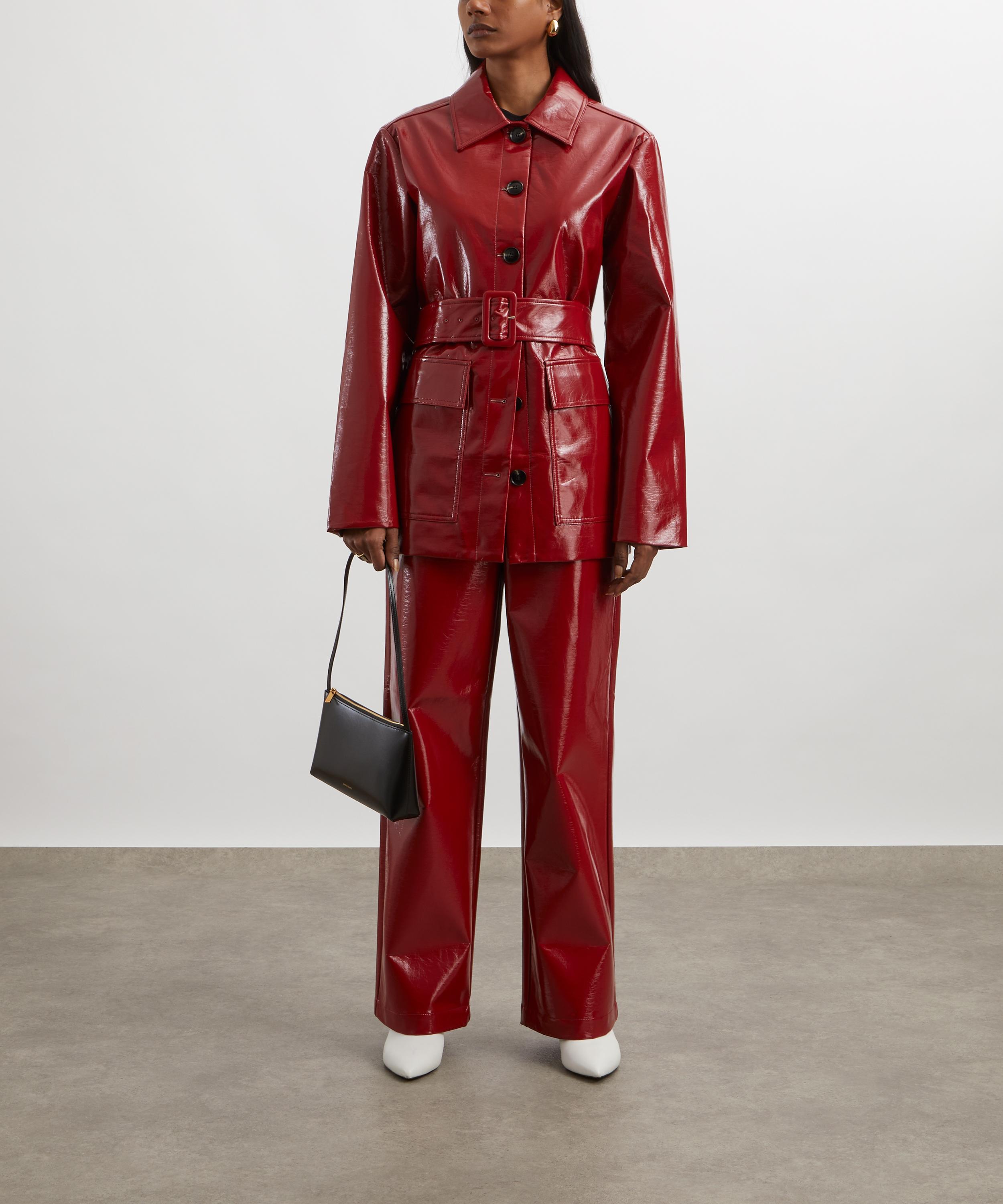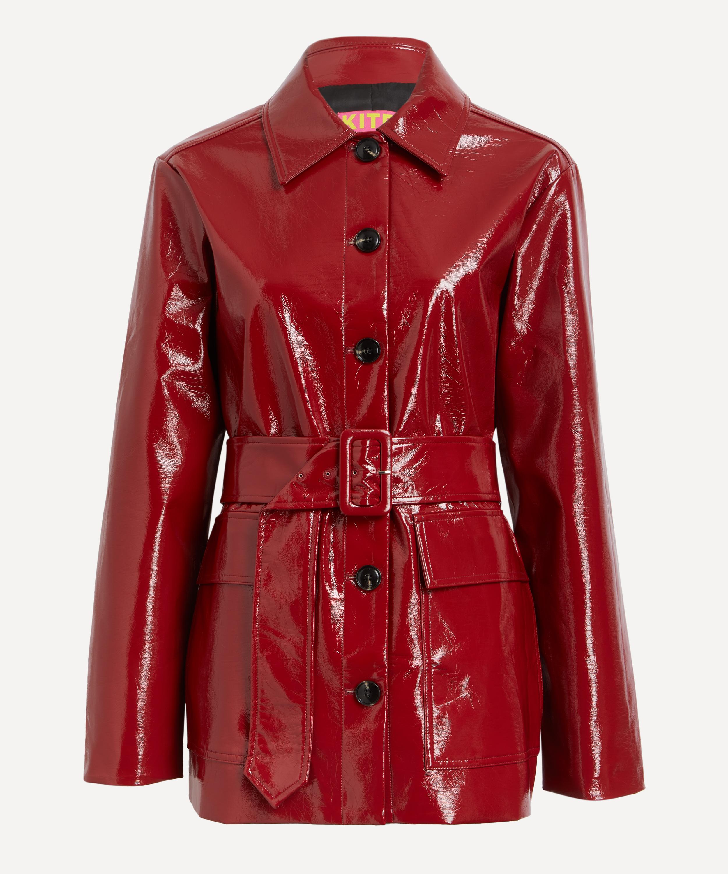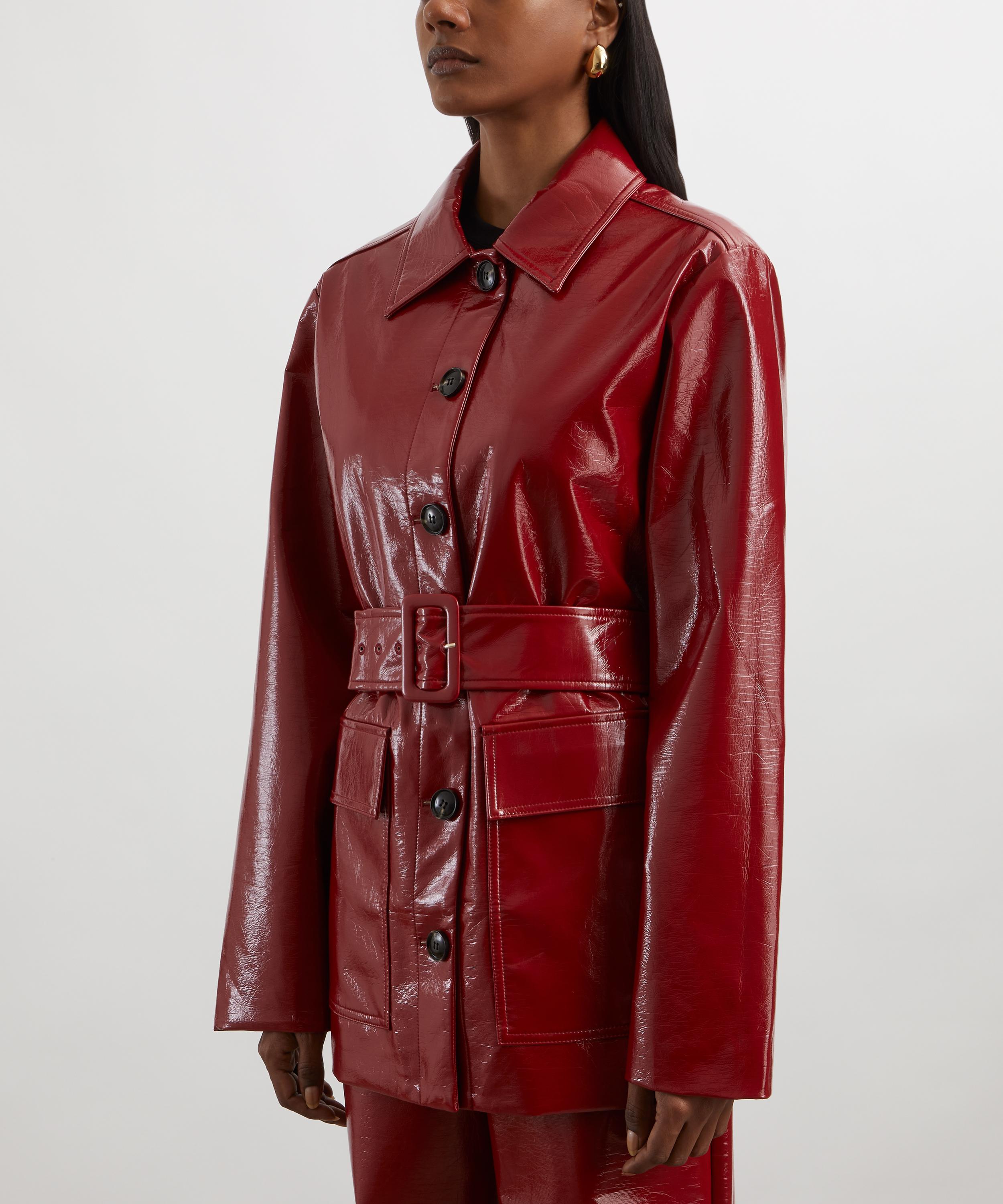 Timeless yet trendy, the Beatrix jacket is this season's must-have piece. Featuring a regular fit, this vintage-inspired long-line jacket is crafted from glossy red vinyl and includes a removable chunky belt for added versatility. It’s finished with a button closure and two patch pockets.