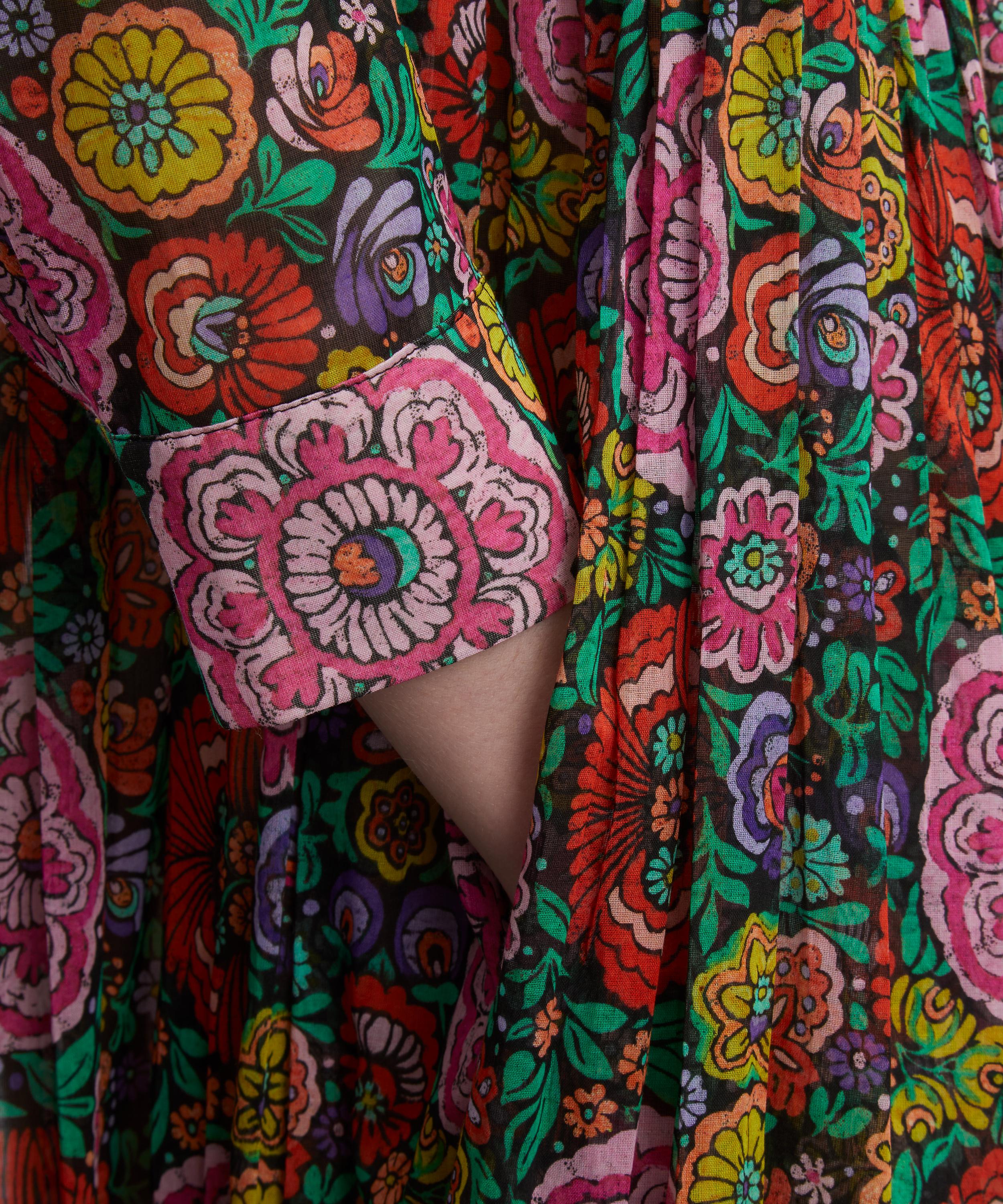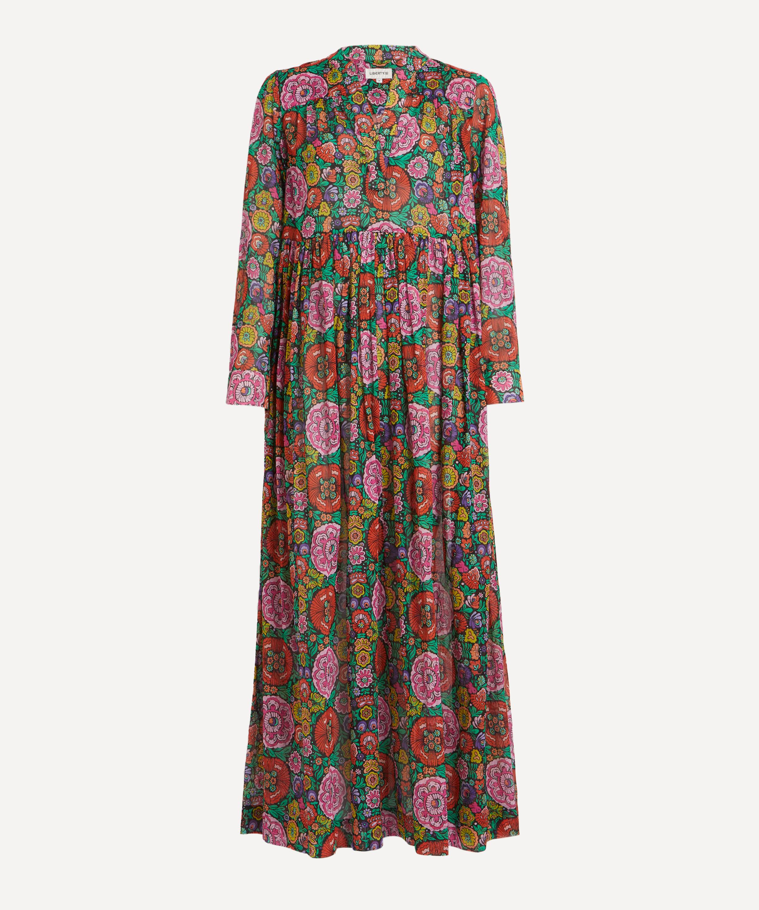 Printed in our very own cutting-edge Liberty fabric mill in northern Italy, this particular style of dress showcases the Begonia Garden print - bursting with the exuberant spirit of the Swinging Sixties, this design originally created by Liberty in 1965 features fantastical folk-style blooms on dark, textured backdrops.