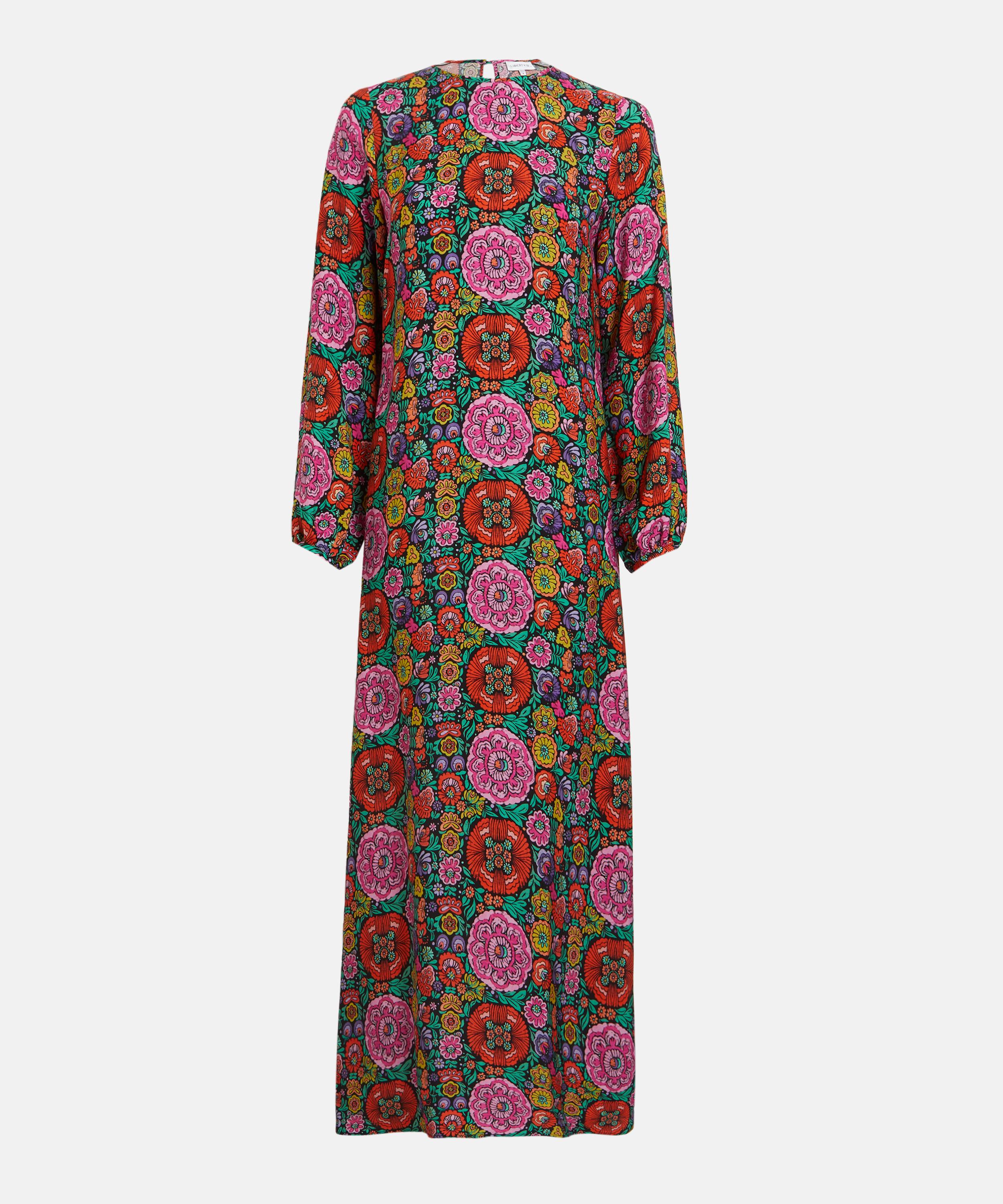 With its fluid column silhouette and long balloon sleeves, this cupro dress embodies easy sophistication, offering a relaxed fit and a flowy maxi length that drapes gracefully.