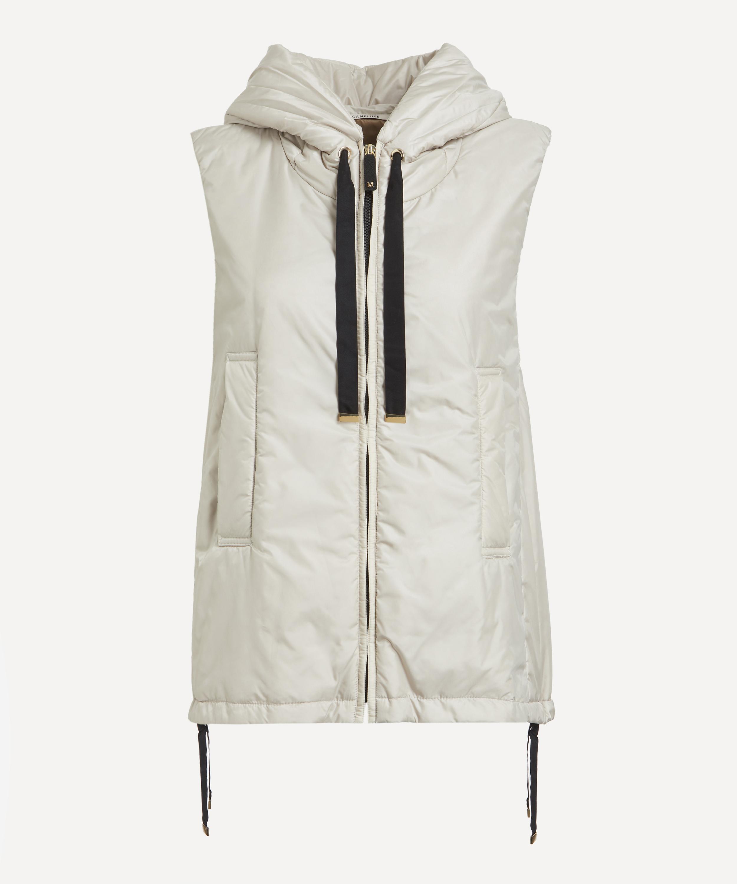 Crafted from water-repellent technical canvas, this gilet is insulated with CameLuxe padding for added warmth. It features a zip closure, drawstring hood and hem, and side seam pockets for practical, weather-ready style.