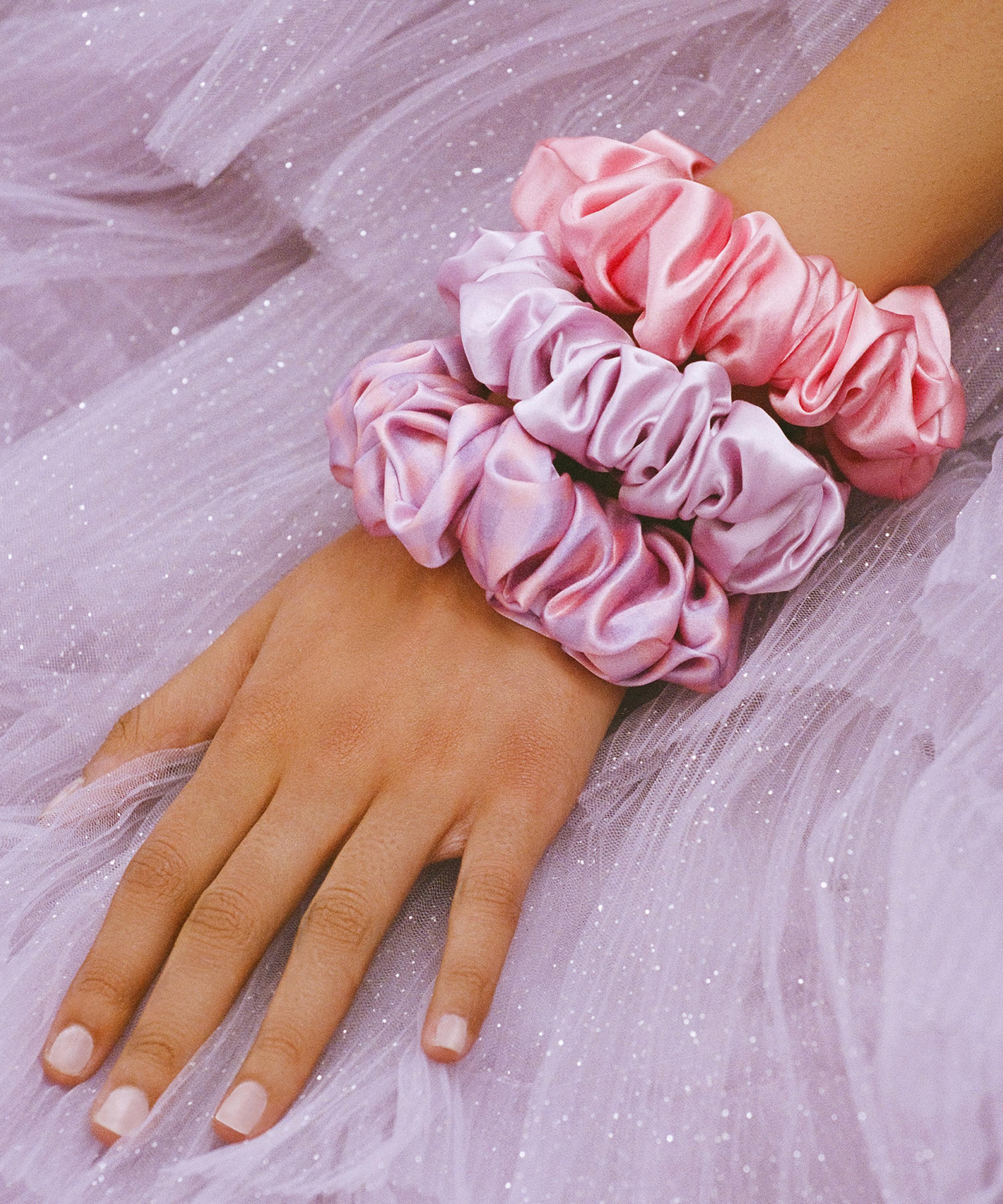 - Set includes: Large Silk Scrunchie in Iris, Wildflower and Rose