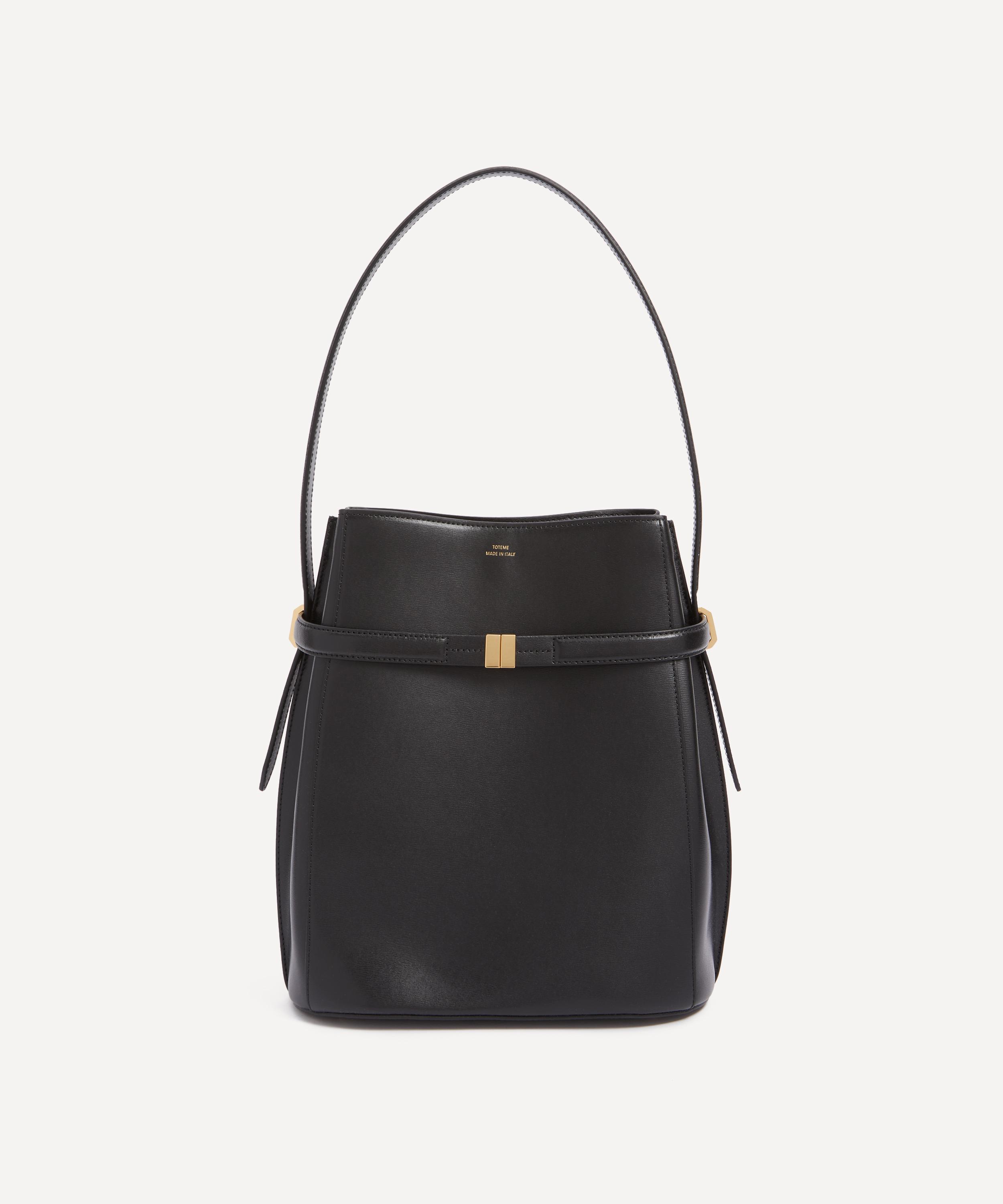 The versatile Belted bucket bag from Toteme delivers a touch of effortless, Scandi-cool, poised to elevate any ensemble. Crafted from smooth, durable leather with a microfiber lining, it features a belted front with an internal lobster clasp, two internal pockets, a top handle and a shoulder strap. Boasting a signature style that effortlessly reflects the brand’s elegant, minimalist aesthetic – style it across the body, over the shoulder or carry by hand.