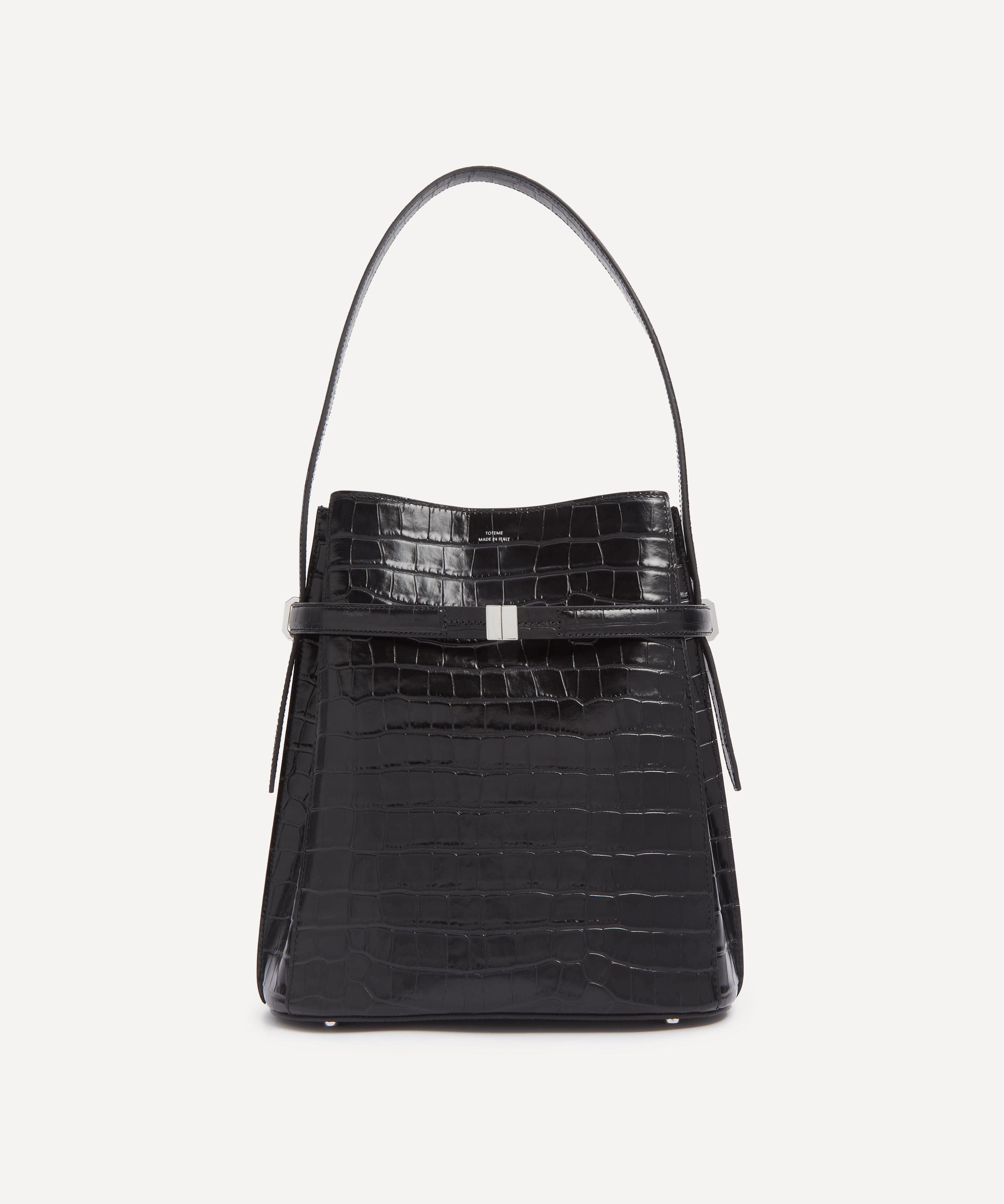 Toteme’s signature mix of Scandi-cool design and quality craftsmanship underpins this bucket bag. It’s shaped from croc-embossed leather and defined by an adjustable belt that can be used to cinch the shape or left open to create more space. Finished with polished gold-tone hardware, an internal lobster clasp and two internal slip pockets, it can be worn over your shoulder or carried by hand.