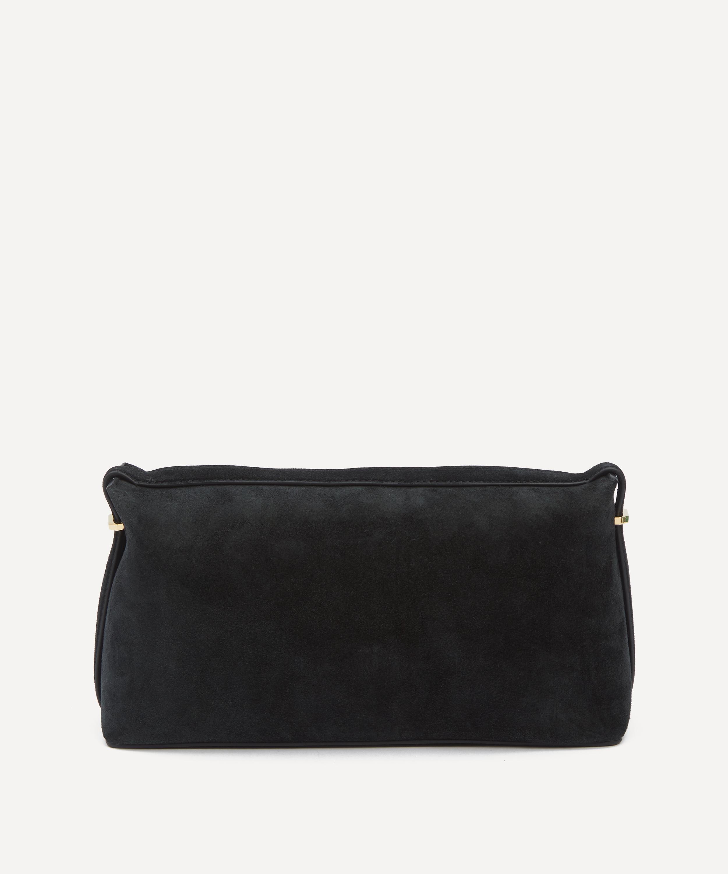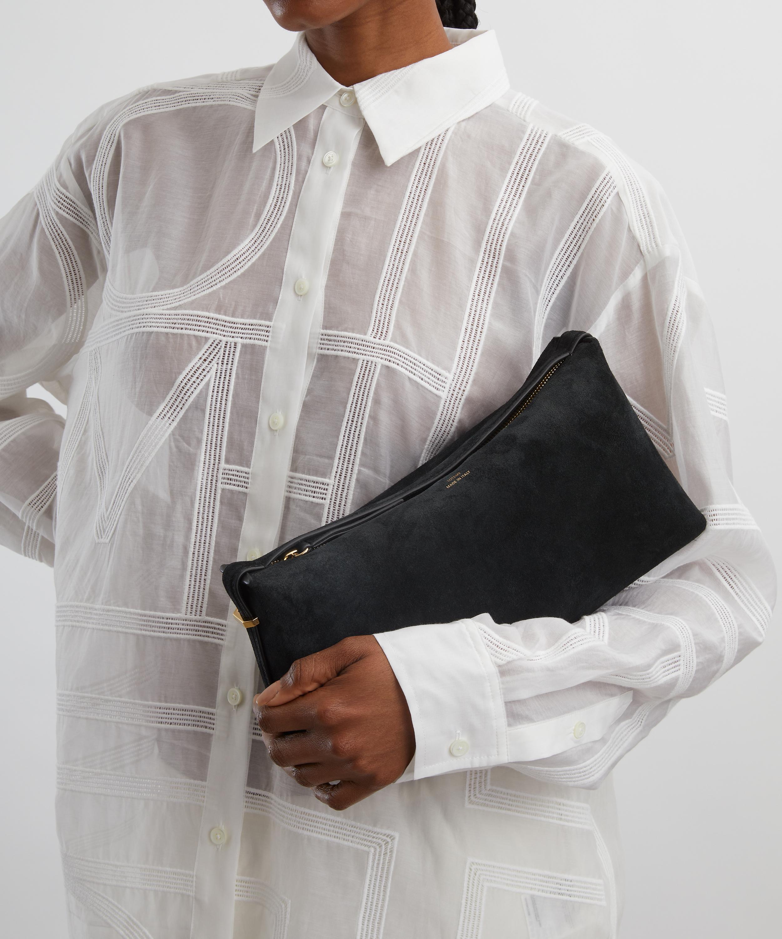 Crafted in Italy from supple suede with gold-tone metal accents, this sleek clutch bag features a zip closure at the top to keep essentials secure, a short belt strap for effortless wear, and is complete with stamped branding at the front for added polish – scoop it from the underside to keep it close to the body.