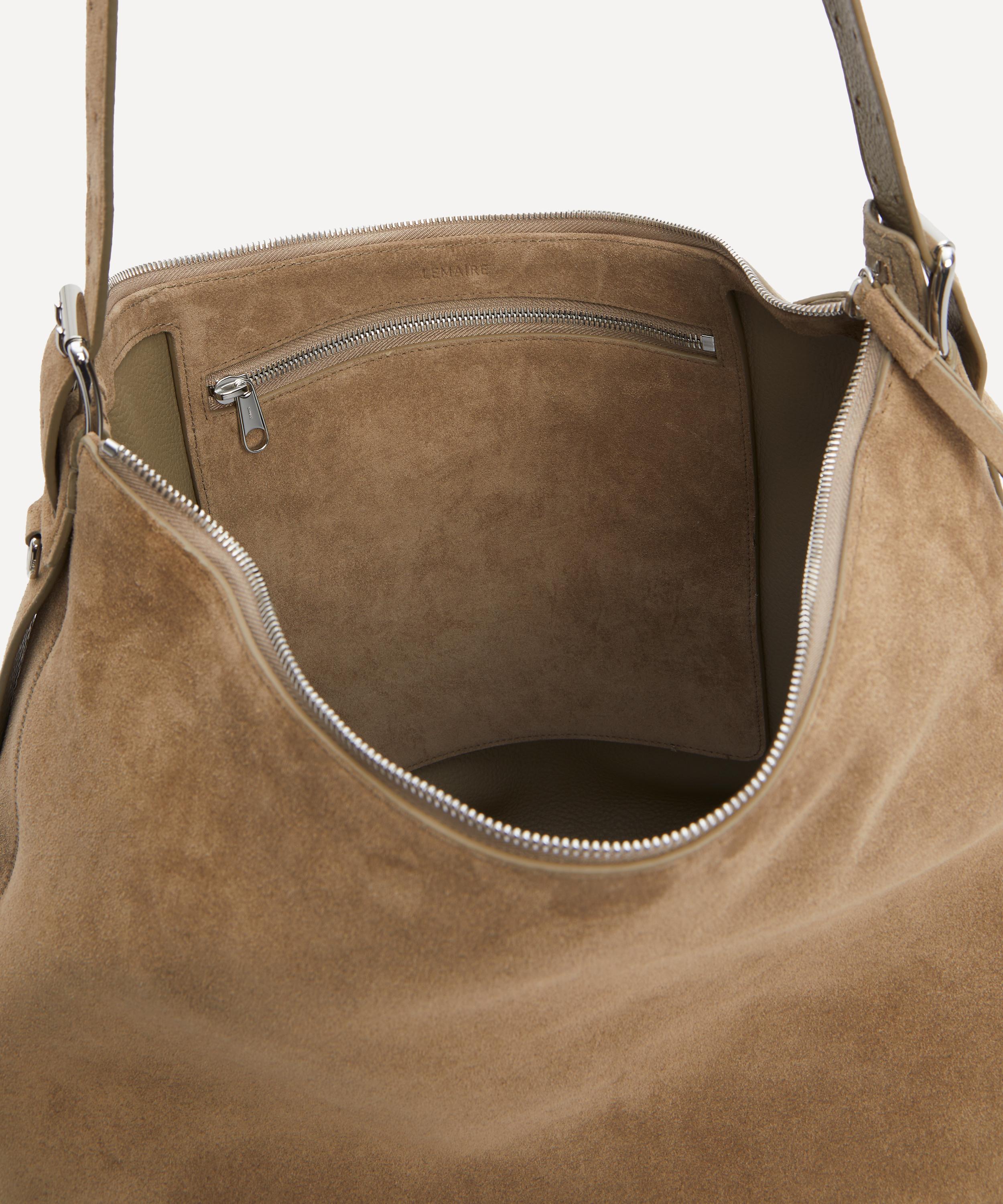 Lemaire’s minimalist design aesthetic is evident in this belted hobo bag, offering a fresh take on a classic utilitarian silhouette.