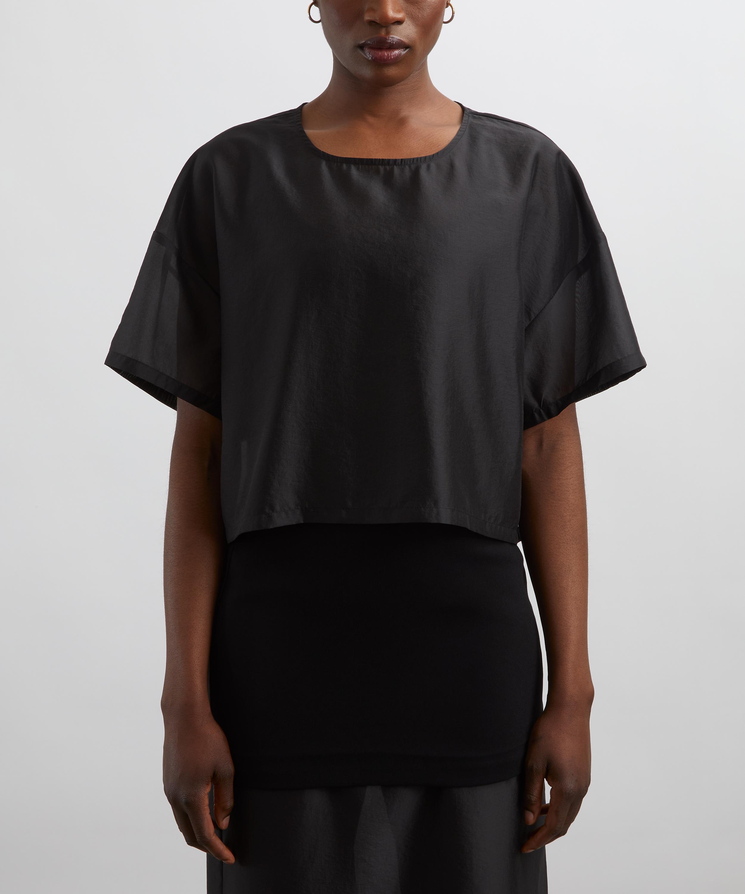 Cut to a loose-fitting, boxy silhouette, this diaphanous top features a rounded neckline and short, wide sleeves. Pair with the corresponding Bardi skirt for an elegantly sculptural co-ord.Composition & Care