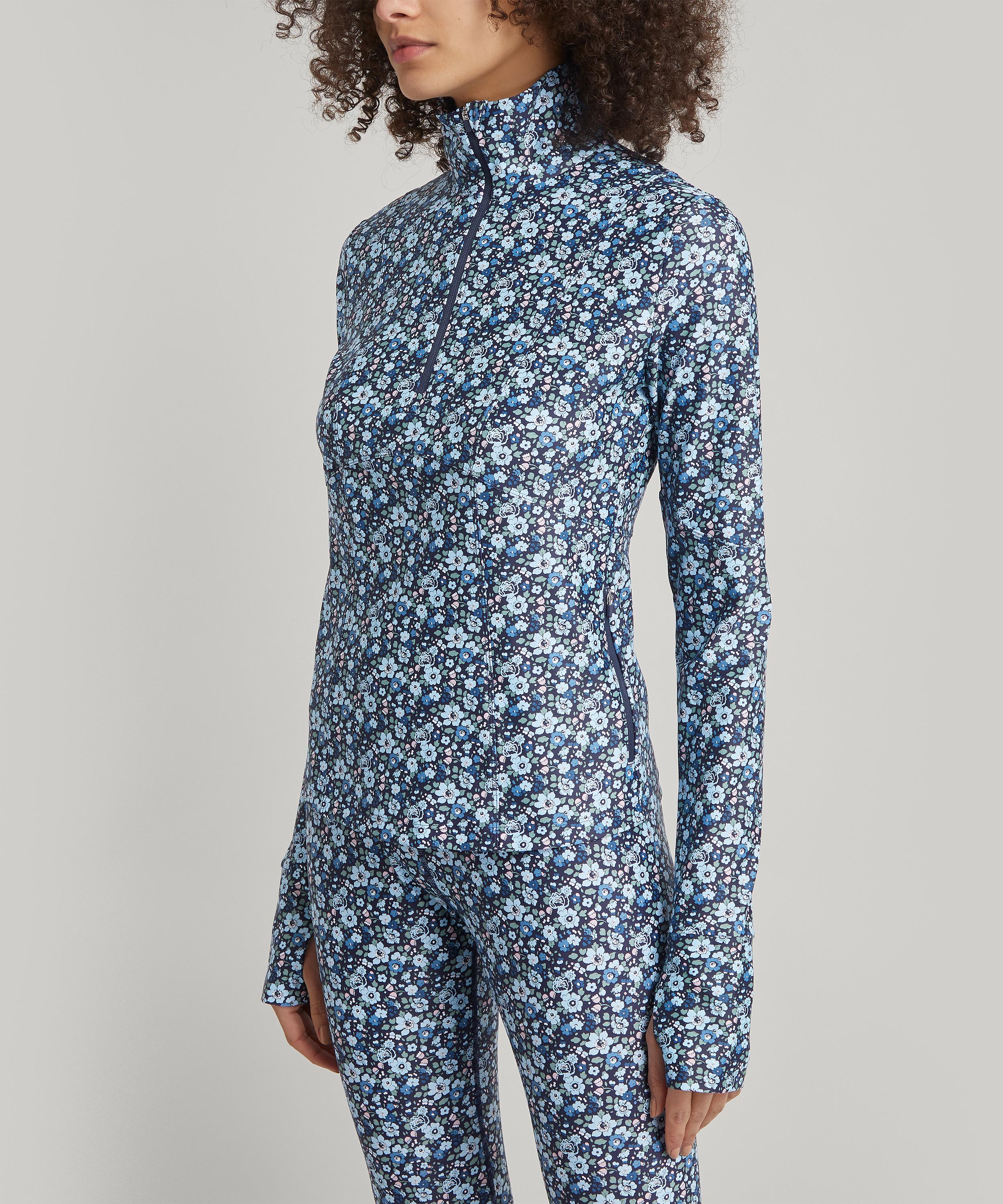 Smooth, compact and silhouette-shaping with a matte touch finish, this breathable high-performance top is printed in Italy with our classic ditsy all-over Betsy design. Developed for athletic wear, its form-fitting, long-sleeves are complete with thump holes for ultimate grip. Tailored to a regular fit with a funnel-collar and an adjustable half-zip, its front is finished with two practical side-pockets. This functional and lightweight top provides double the wearability – as a uniform for high-impact classes and sports when teamed with the matching Betsy leggings, or layered under chunky knits paired with jeans while running errands or relaxing at home.