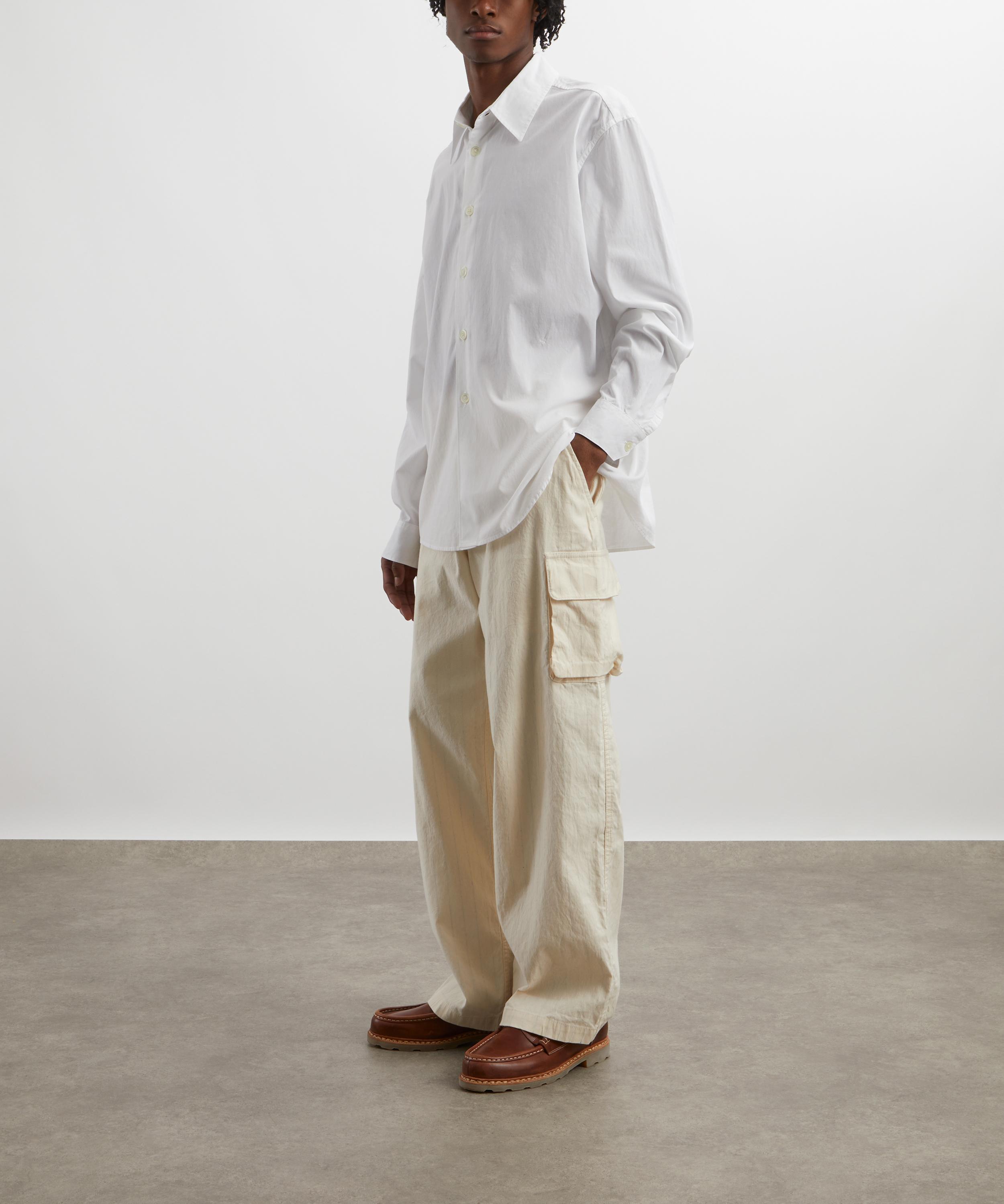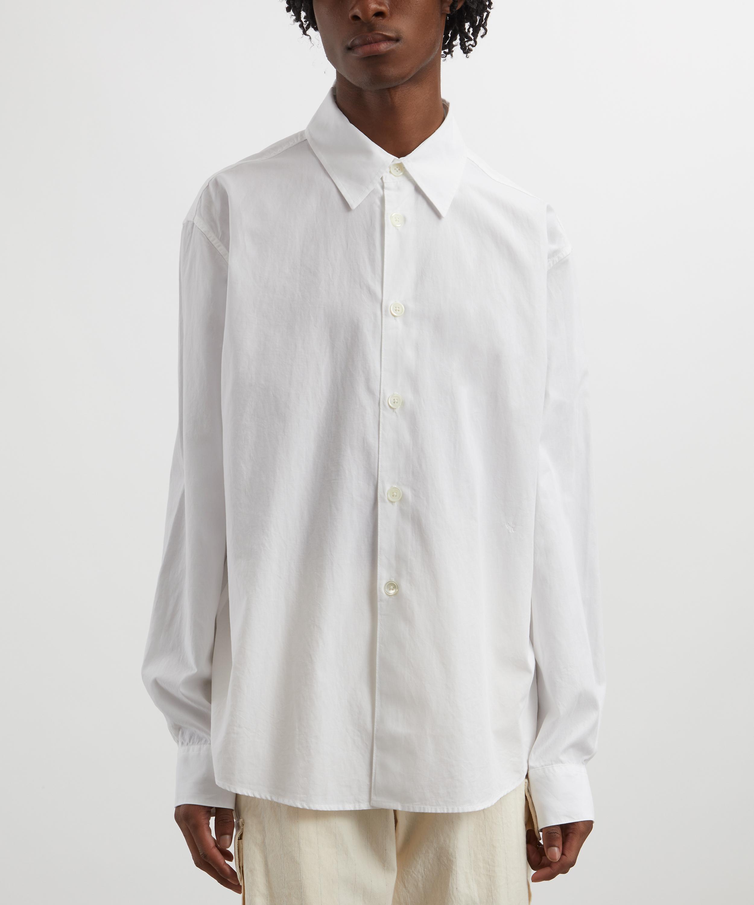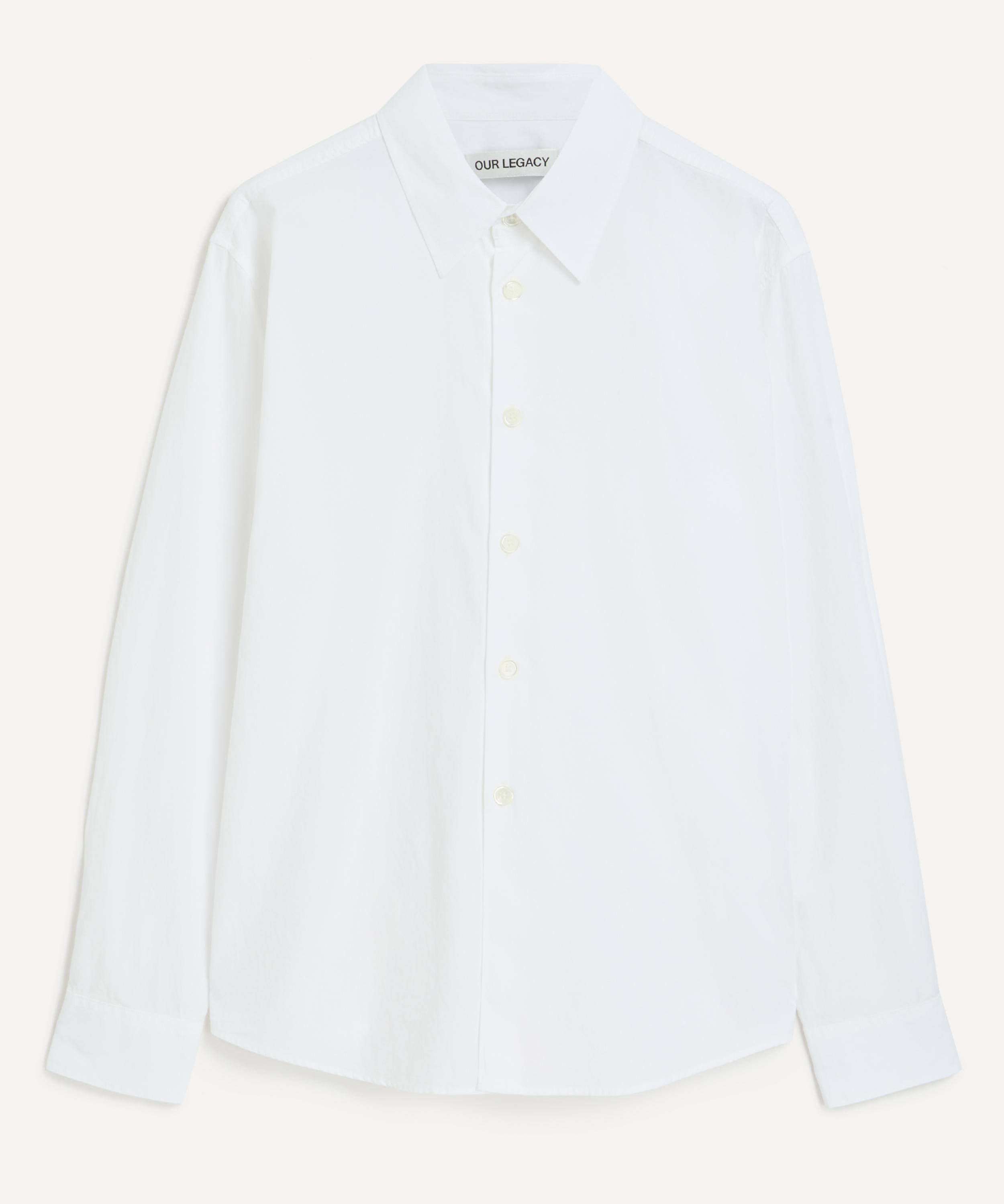 A streamlined take on classic shirting, Our Legacy’s Beyond shirt showcases the label’s effortless blend of form and function. The shirt is cut from a lightweight cotton-blend poplin and shaped to a regular, straight silhouette with a curved hem – further accentuating the contemporary mood. A versatile wardrobe staple you’ll trust all year round, it pairs easily with soft tailoring or crisp denim.