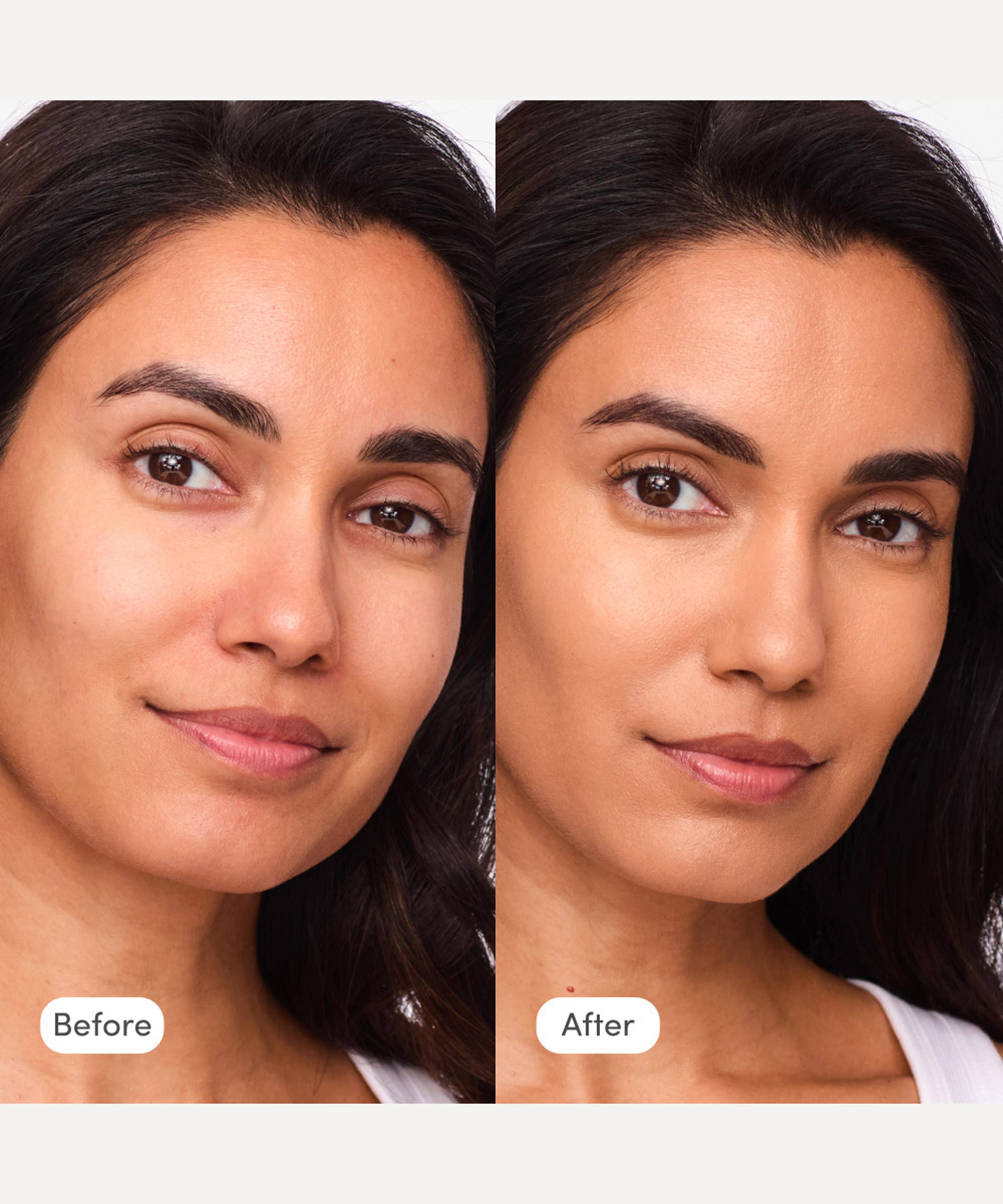 Take one or two pumps and blend into your skin using your fingers or the Complexion T-Brush.