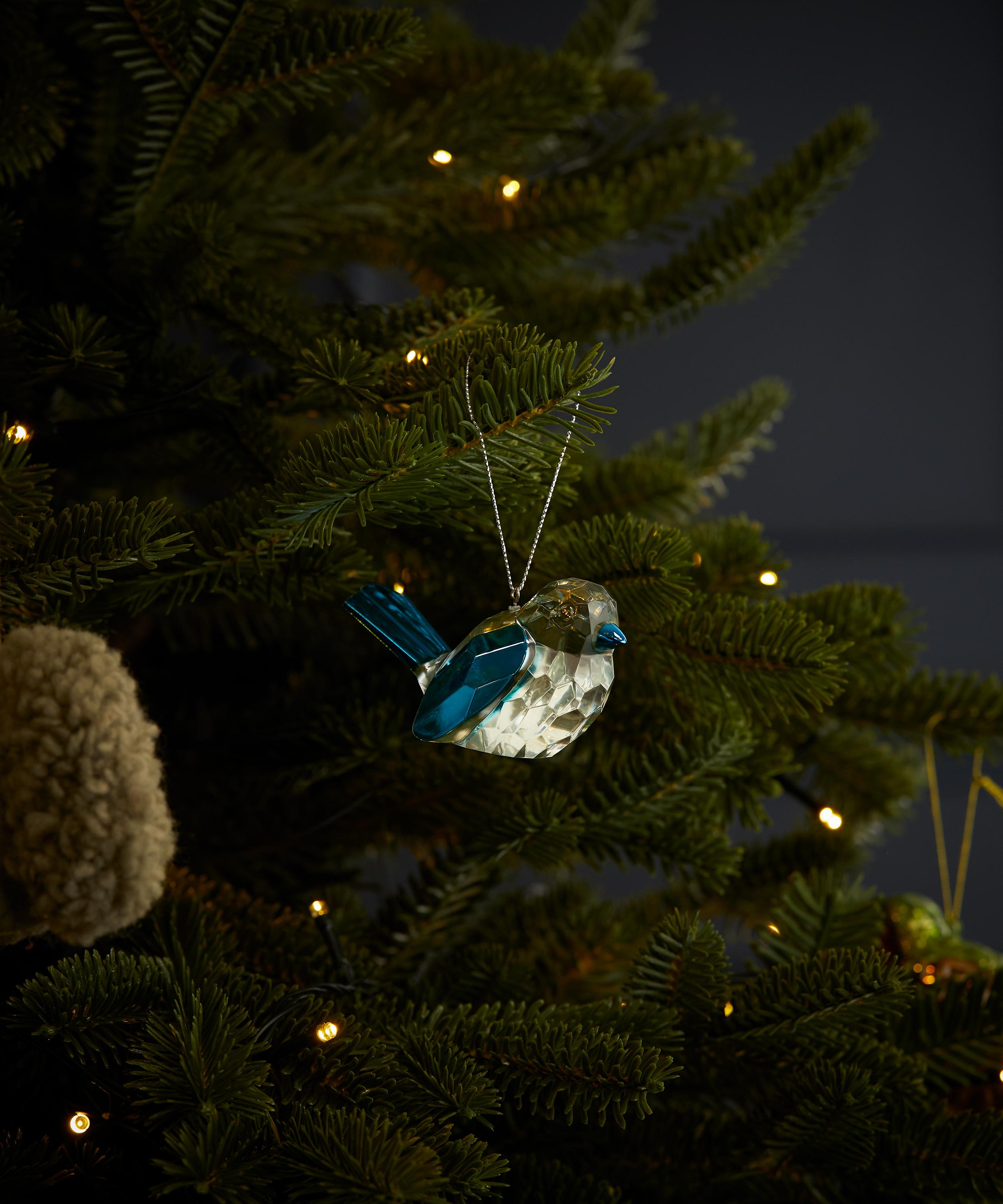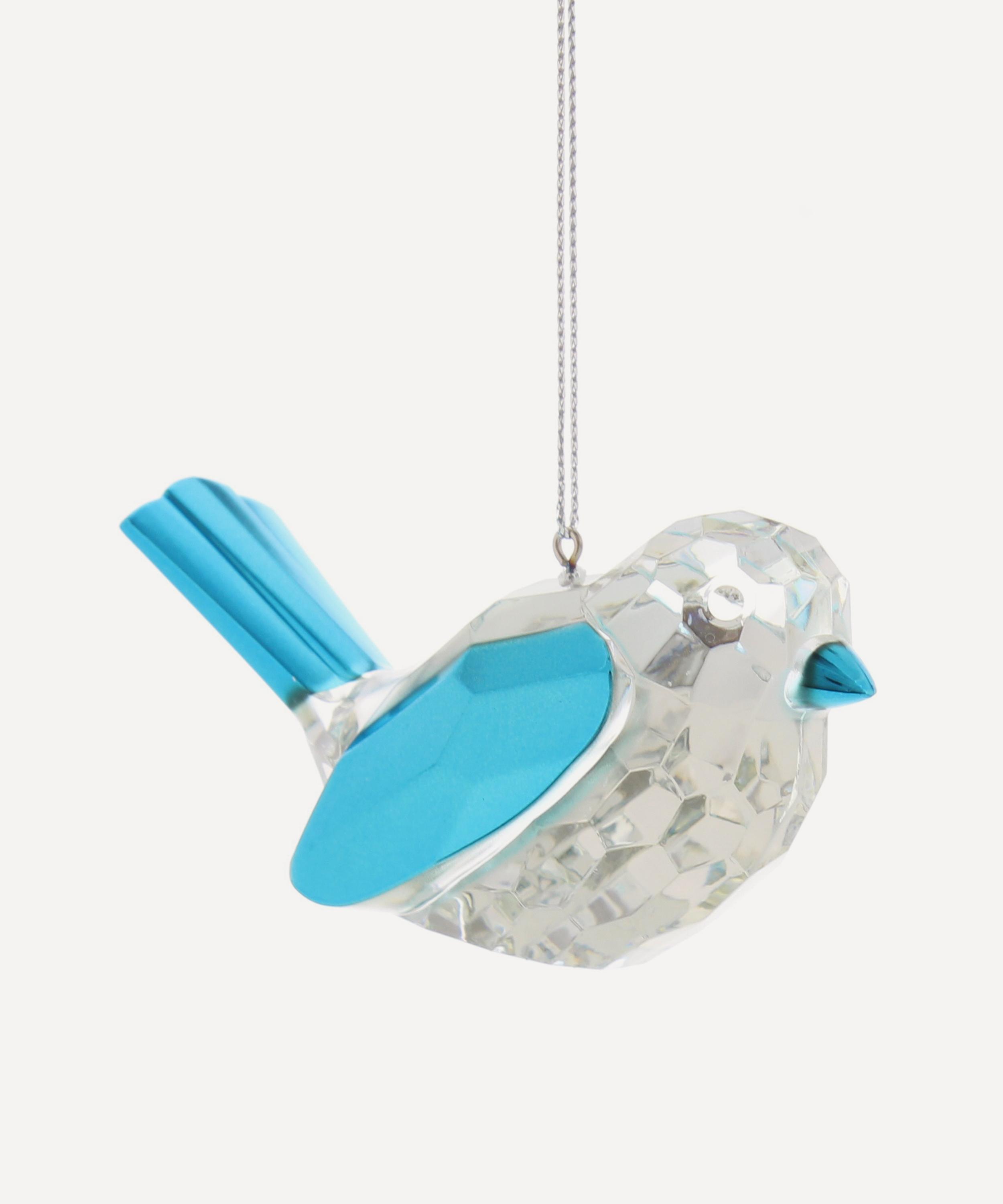 Deck out your tree with a touch of whimsy and bring the magic of the season to life with this ornament. An alternative to traditional decorations, it’s exquisitely crafted from painted acrylic, featuring a clear bird with blue wings – a playful option for those seeking a treasured heirloom piece, use to bring a pop of colour to your festive display.