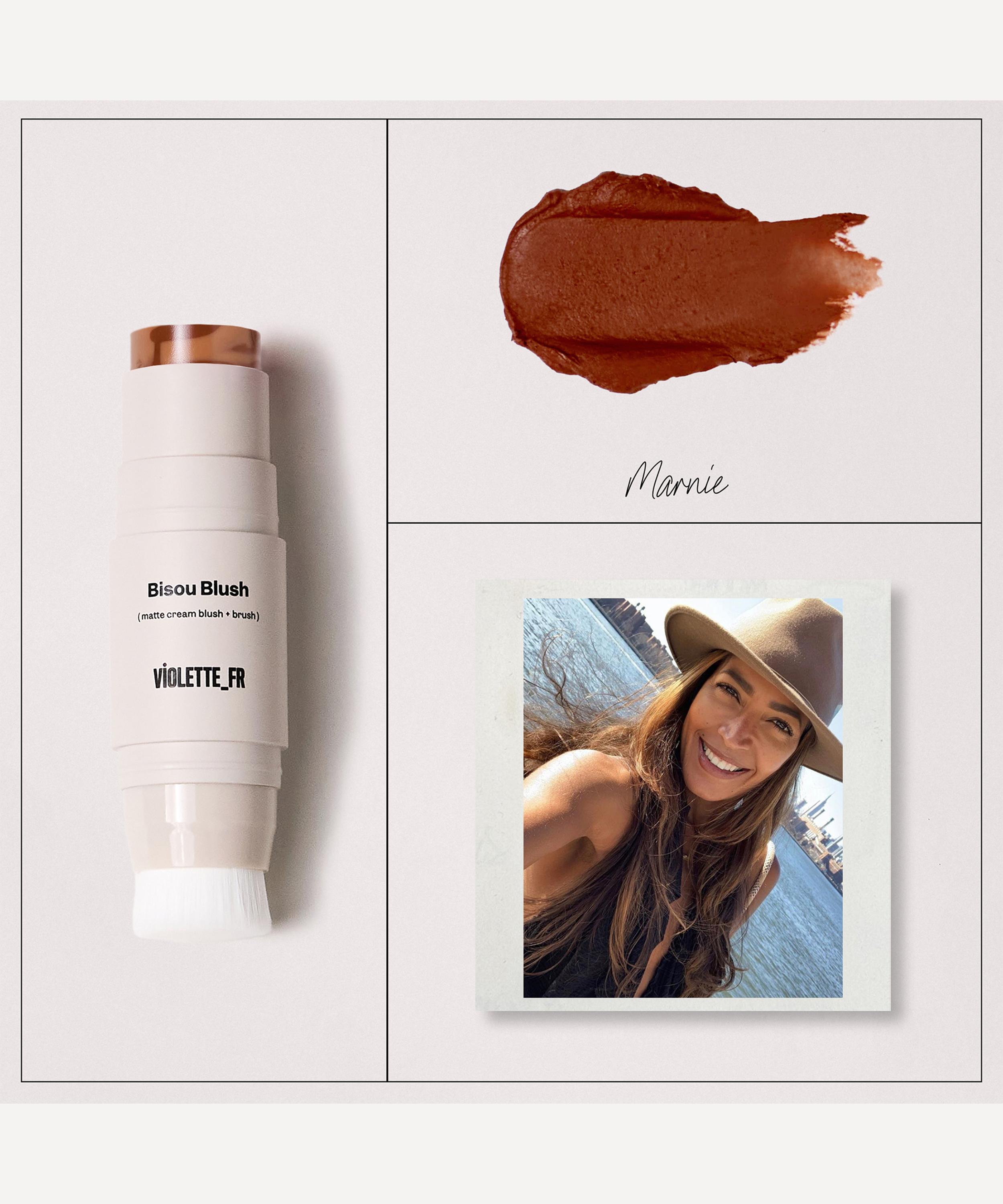 Create a naturally flushed, radiant look in an instant with VIOLETTE_FR's Bisou Blush, a uniquely marbled cream blusher that glides comfortably over skin and blends effortlessly with the attached brush.