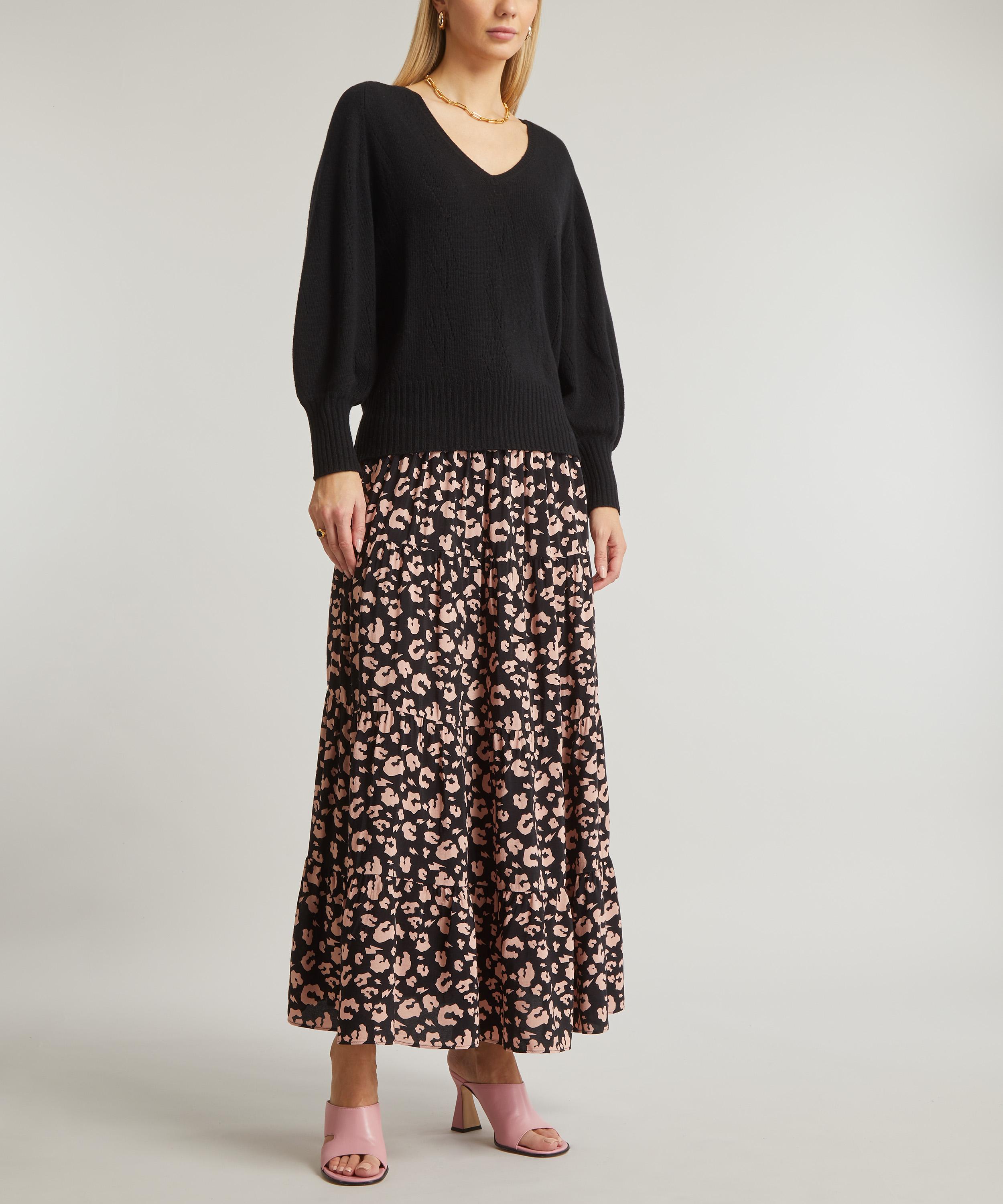 Black and Pale Pink Leopard Print Maxi-Skirt