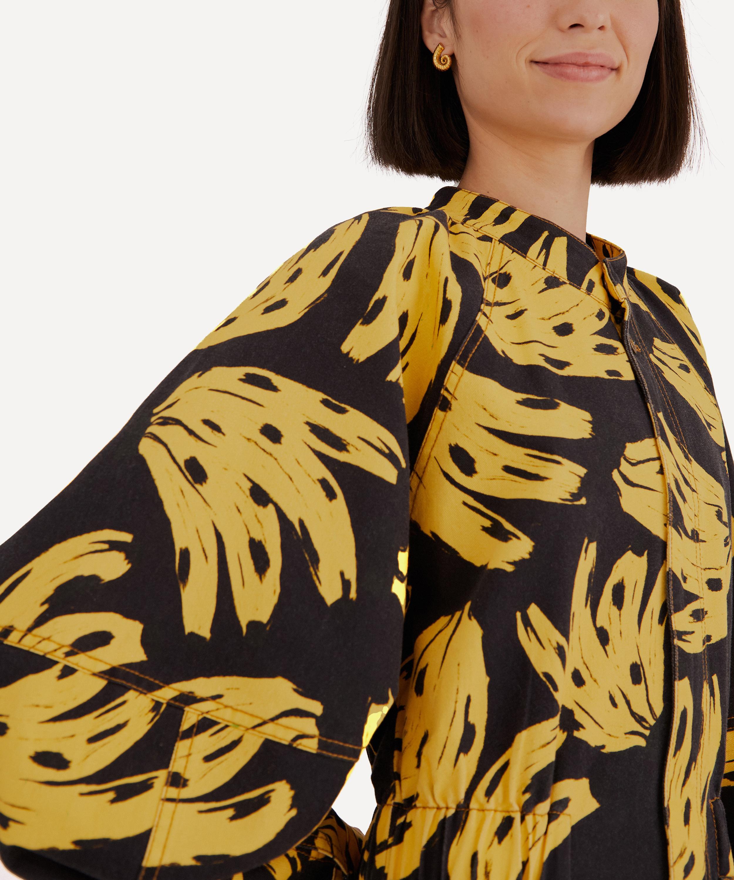 Bold and brimming with bananas, this cotton all-in-one jumpsuit features a round neckline, voluminous dolman sleeves and a hidden button closure. Effortlessly practical and easy to wear, it’s fitted with an elasticated waist, and multiple patch pockets to the front and back.
