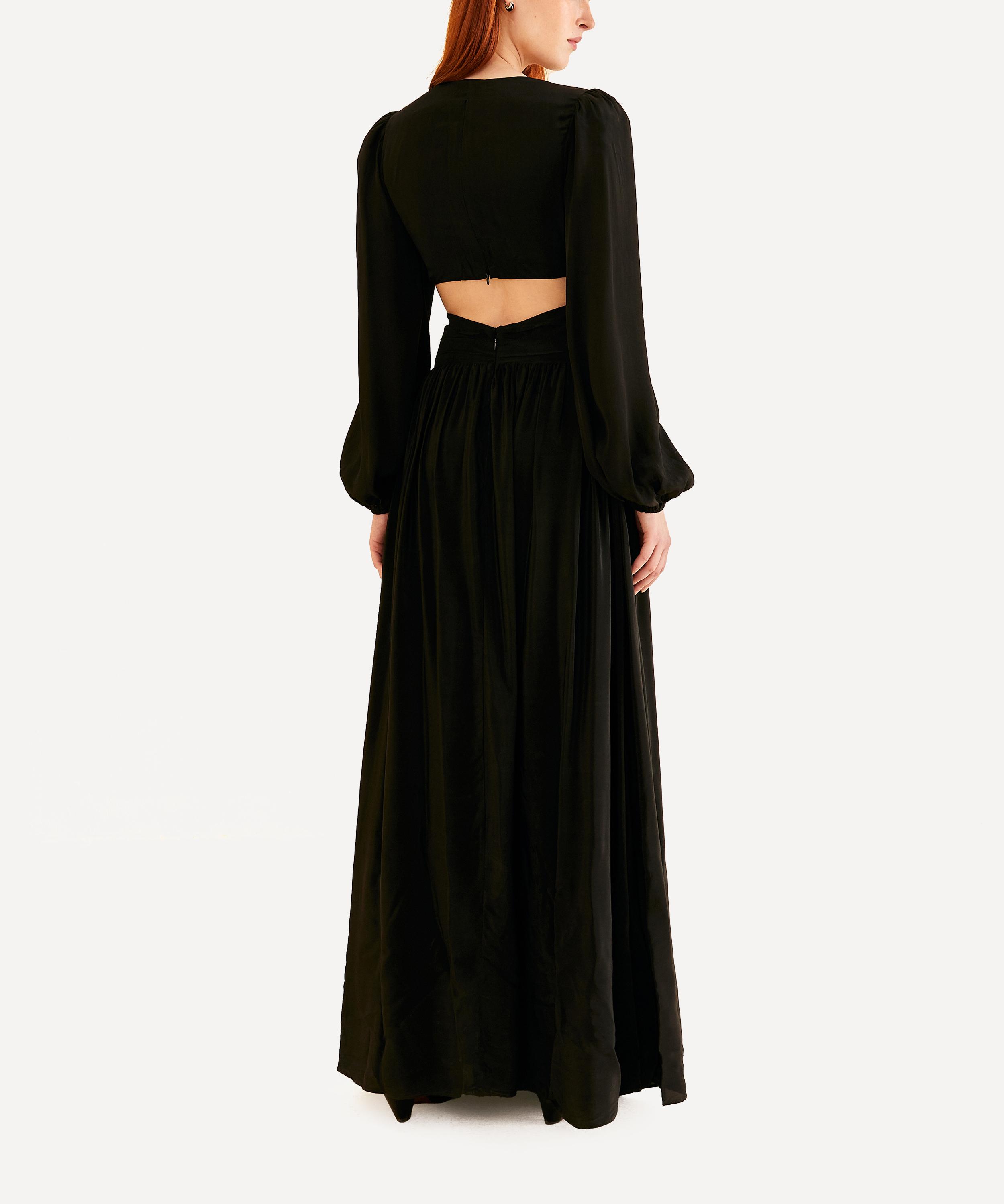 Black Cut-Out Long-Sleeve Maxi-Dress