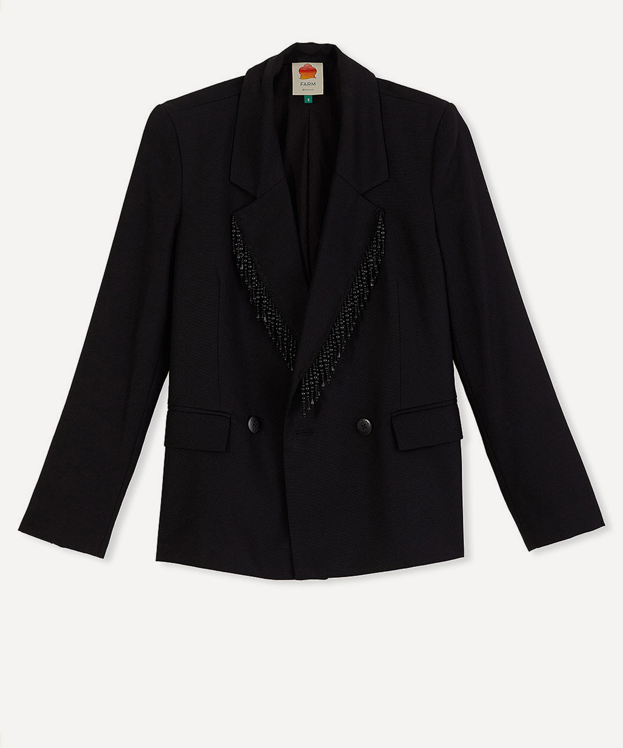 The Black Fringe Blazer from Rio de Janeiro-based label FARM Rio brings some Brazilian vivacity to your new-season edit.
