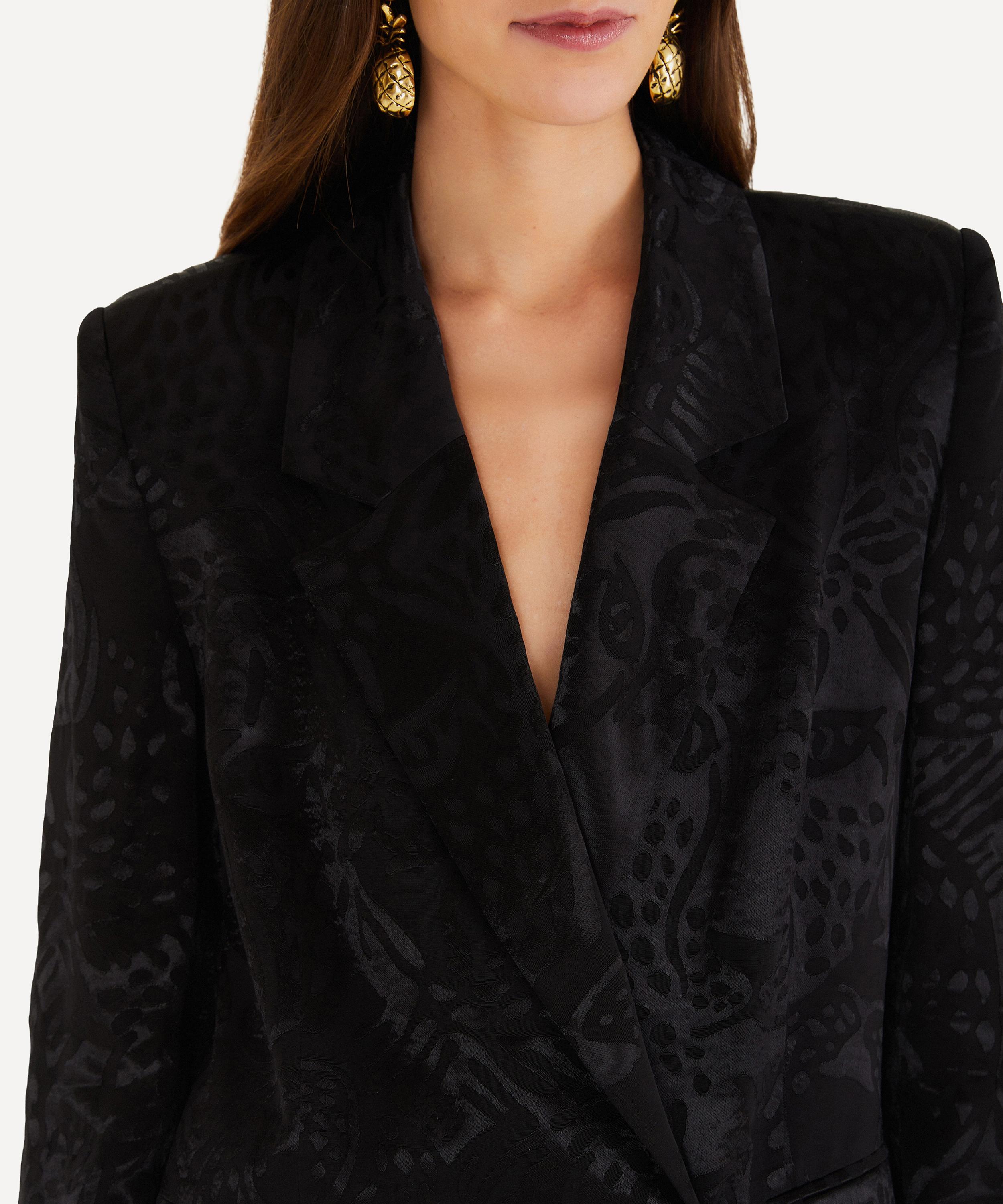 The Black Leopard Jacquard Blazer from Rio de Janeiro-based label FARM Rio brings some Brazilian vivacity to your new-season edit.