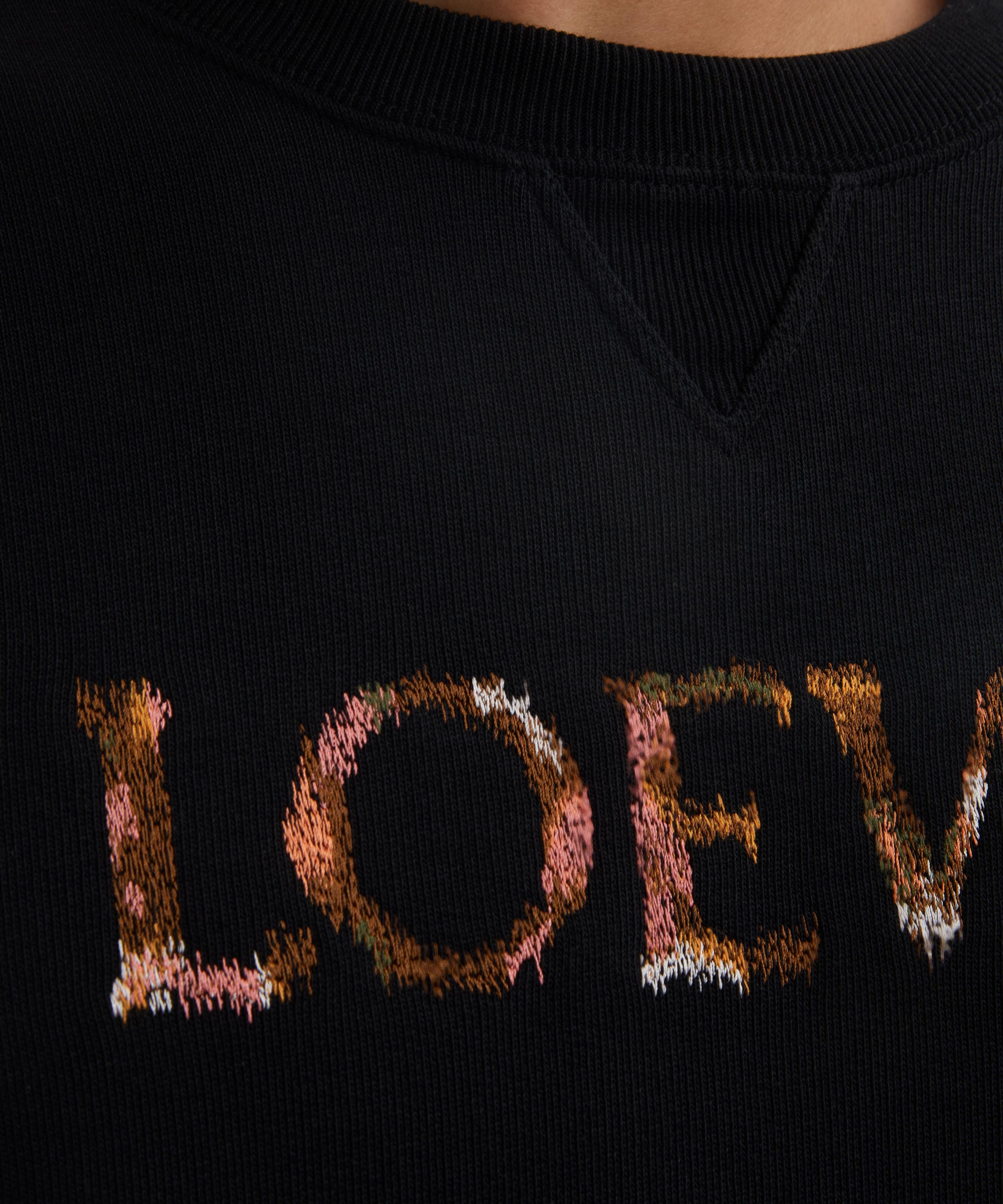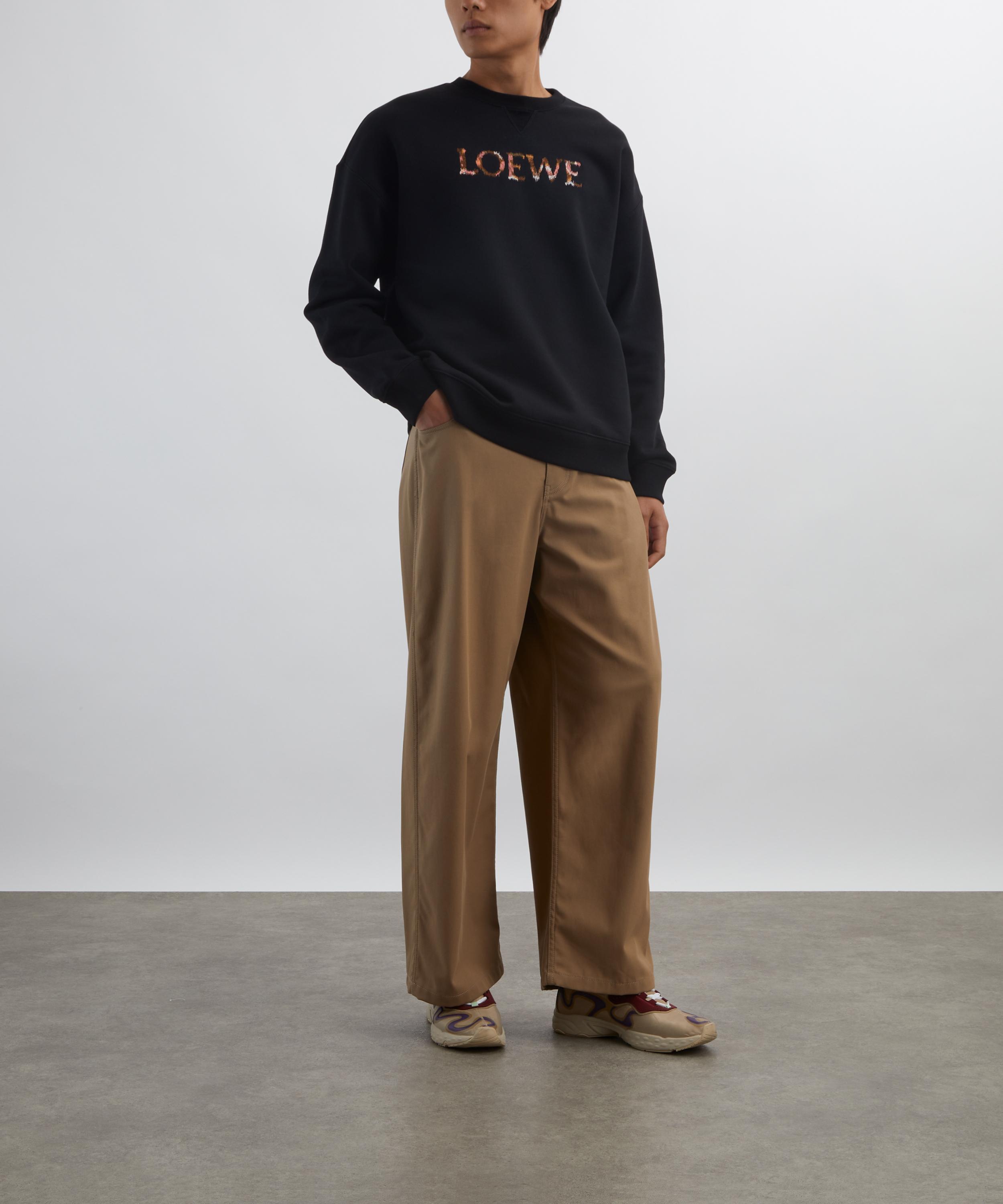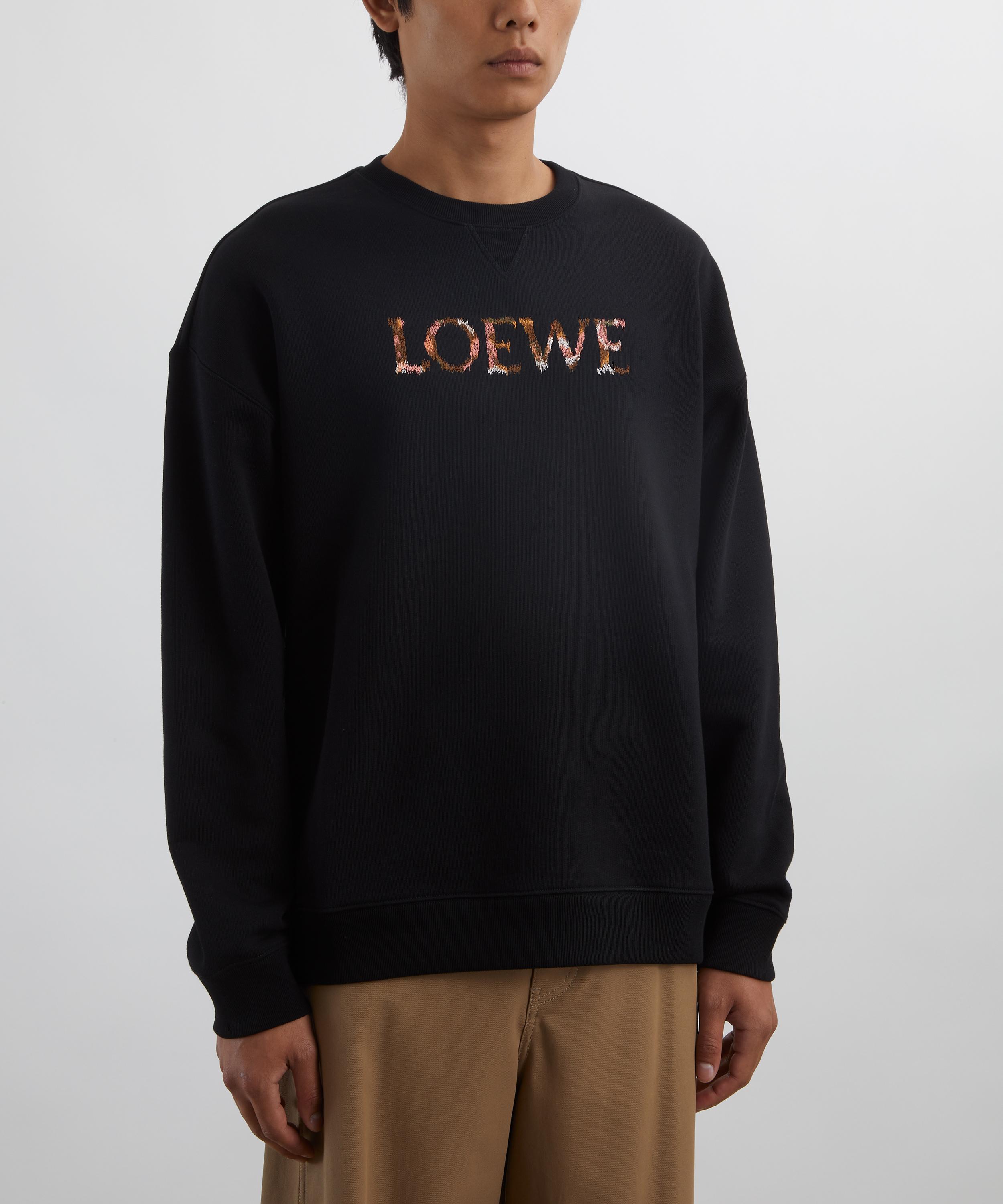 Crafted from loop-back cotton, this black sweatshirt offers a classic regular fit complete with a crew neckline, ribbed trims, and mixed yarn LOEWE embroidery emblazoned across the front for a distinctive finish.