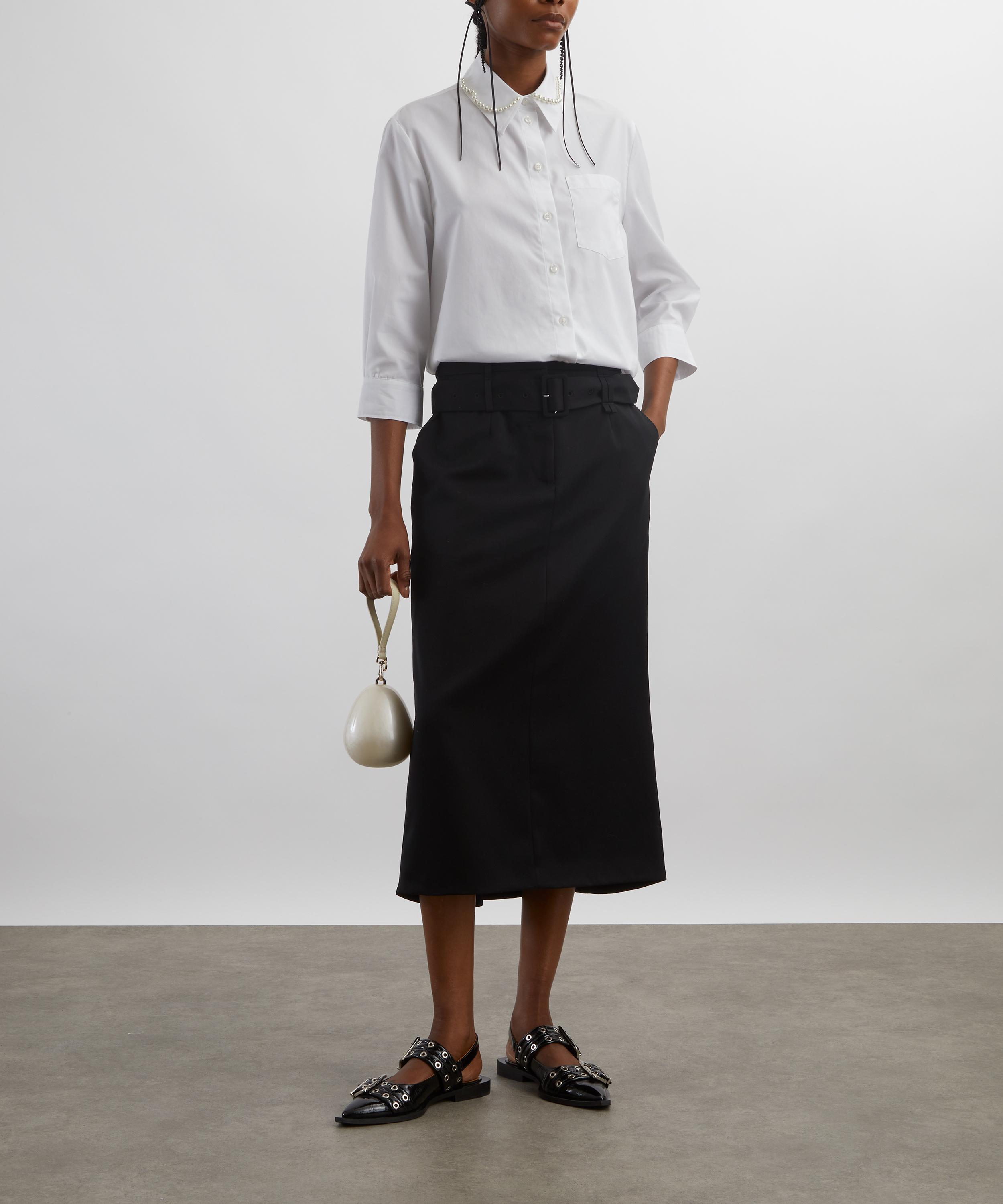 With its sharp tailoring and delicate details, the Multi Belt Loop Kick Back Skirt channels Simone Rocha’s rebellious yet romantic aesthetic.