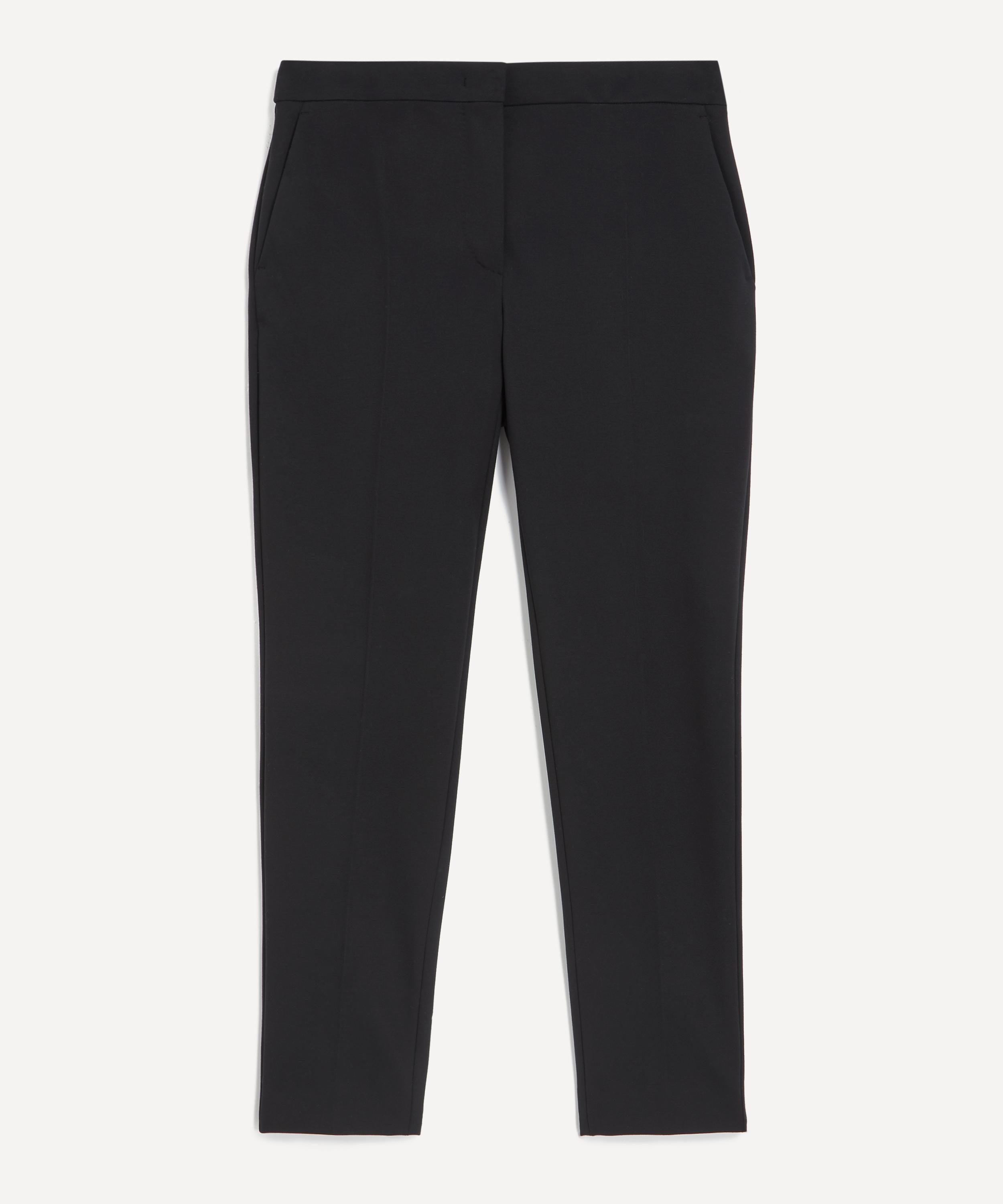 Crafted from compact viscose jersey, these slim-fit trousers feature a cropped, tapered leg, a high-cut waistband, and sharp front pleats - offering a sleek, tailored finish with effortless stretch.