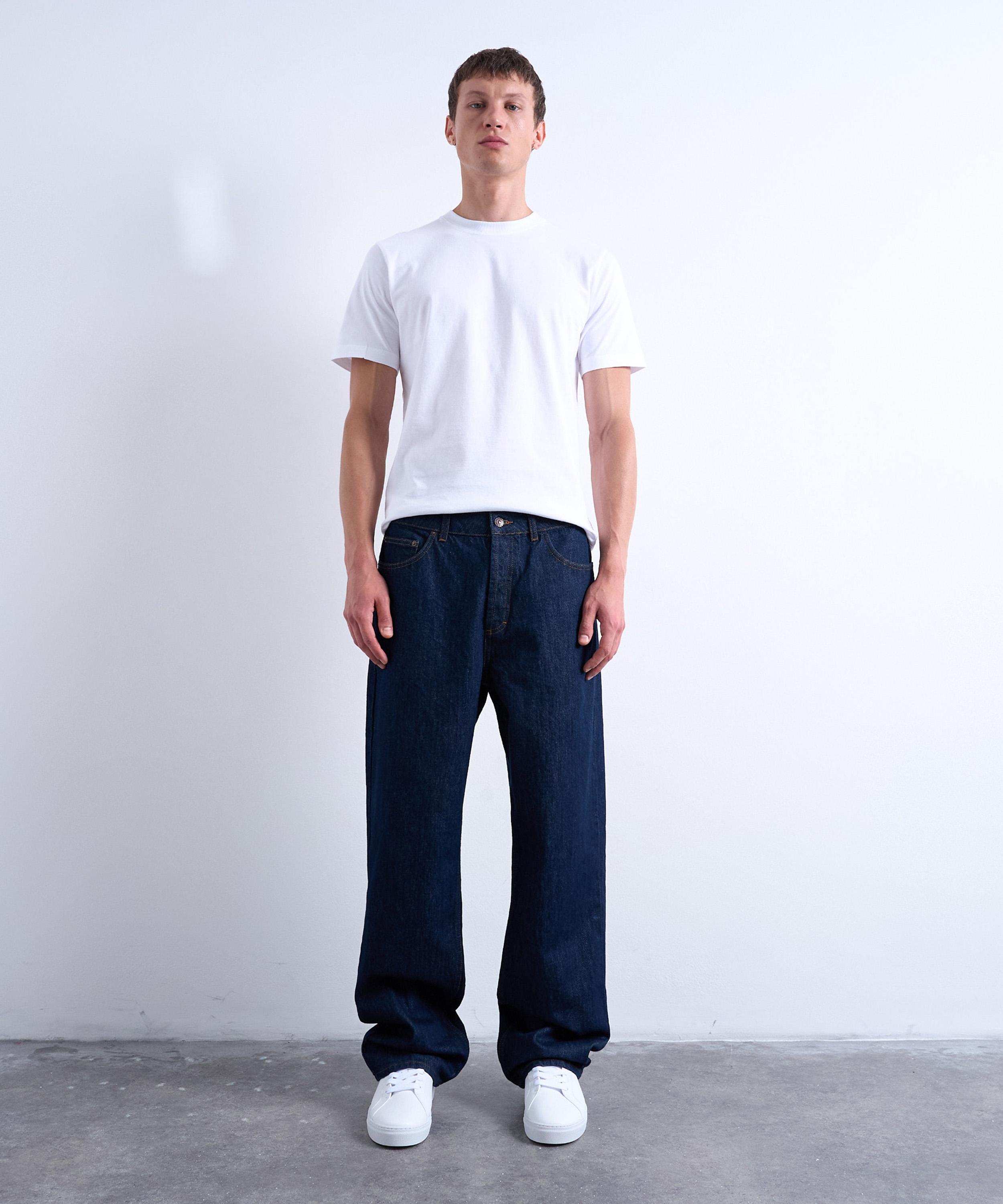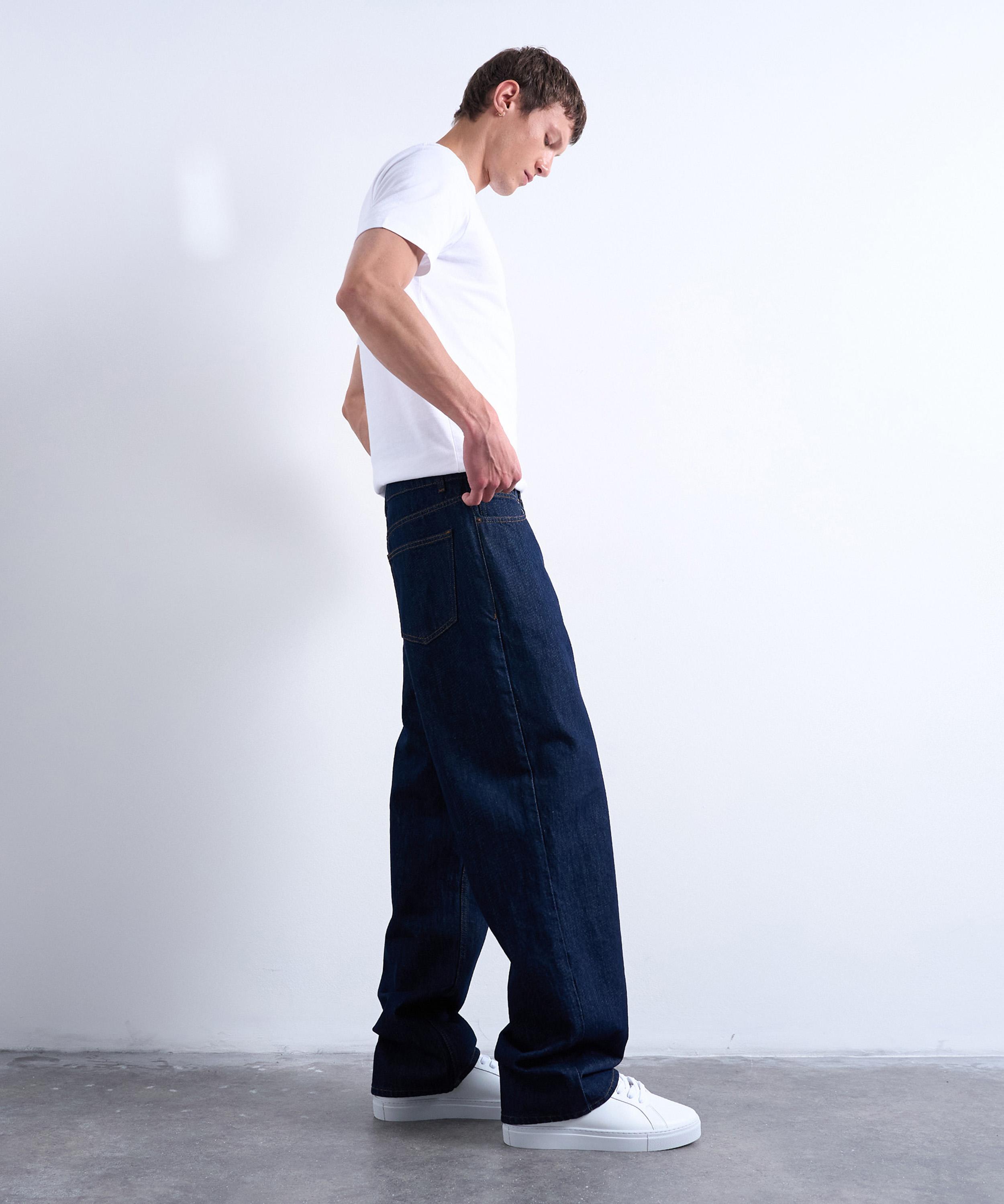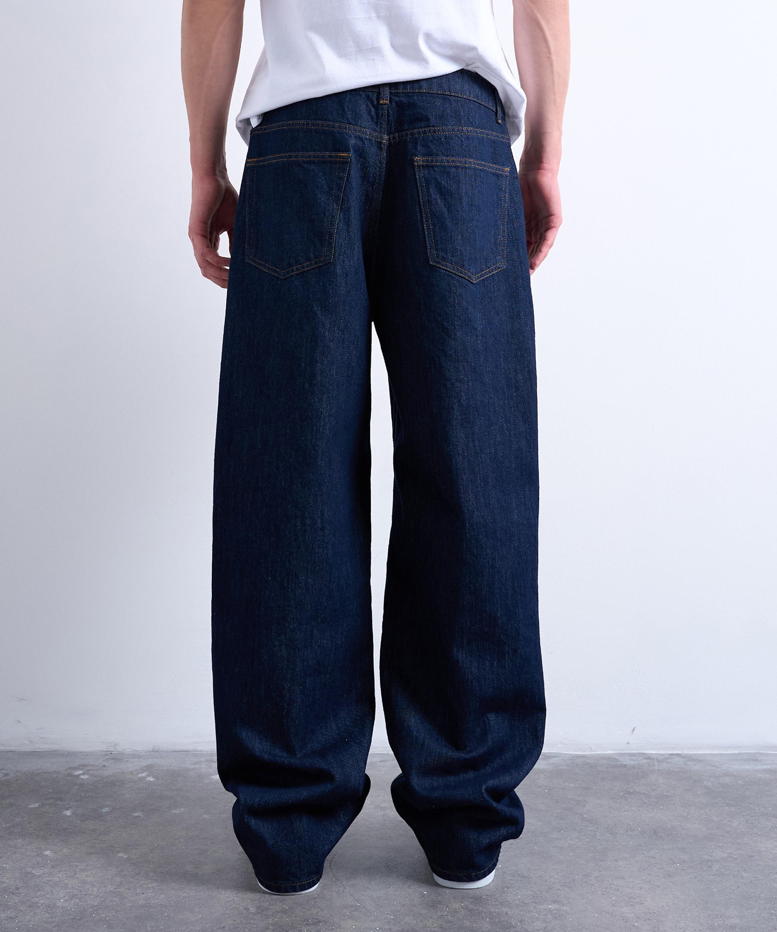 Crafted from non-stretch denim in a deep indigo wash, these jeans are cut to a baggy fit for a laid-back look. Staying true to a classic silhouette, they feature five pockets, belt loops, and a zip fly.