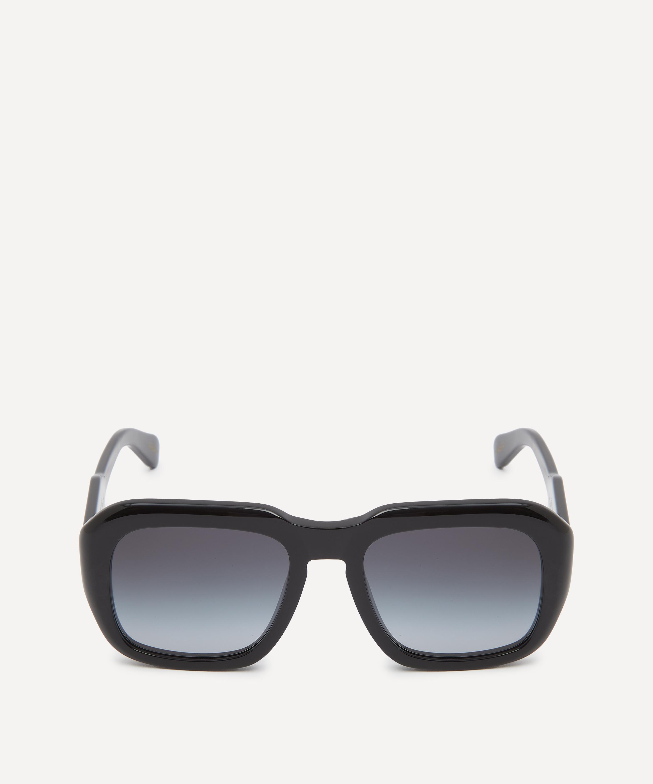 Crafted from glossy acetate in a timeless black colourway, these chunky square frames feature soft curved edges, and are finished with grey-tinted gradient lenses that further accentuate the style's glamorous, retro flair.