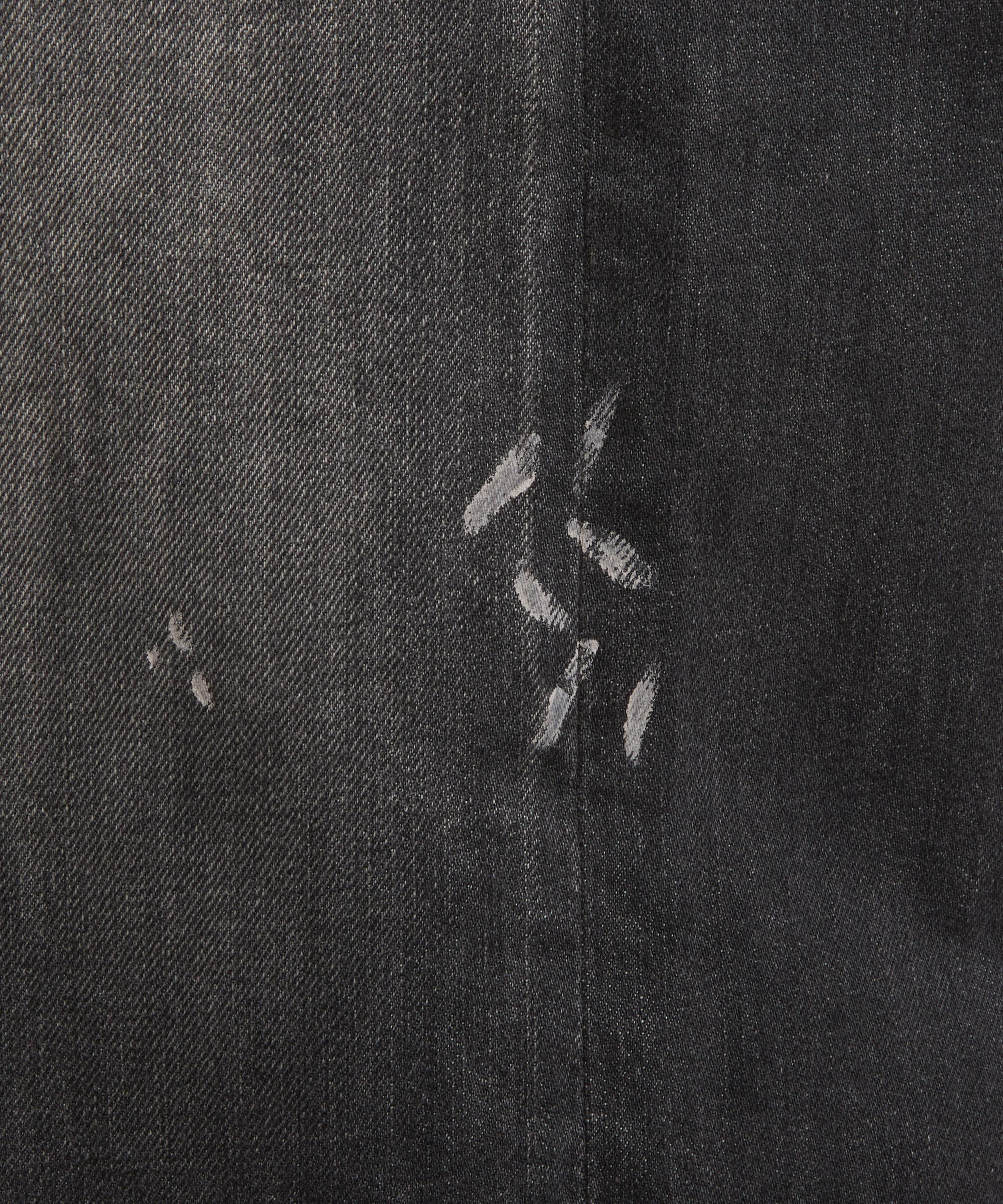 Crafted from rigid cotton denim in a dark black wash, these jeans have a mid-waist, and a wide-leg silhouette with 5-pocket construction and a logo-embossed leather jacron patch, as well as manual dirt and paint marks throughout for a lived-in finish.