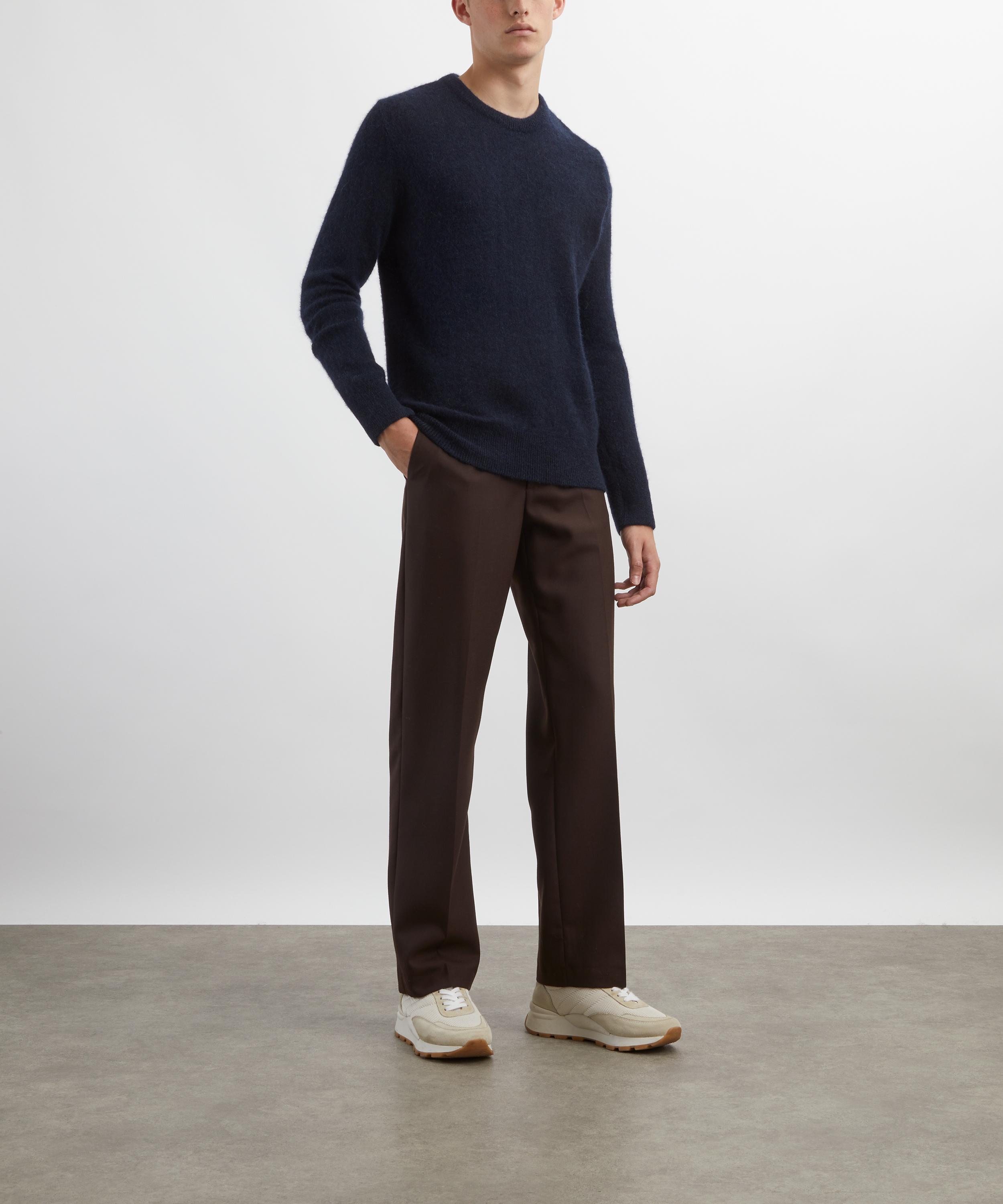 Crafted from a luxurious blend of baby alpaca and Merino wool, this knitted jumper adds a touch of polished preppiness to your seasonal wardrobe. With its relaxed fit, crew neck, long sleeves, and ribbed trims, this piece is a go-to winter staple that balances comfort and style.