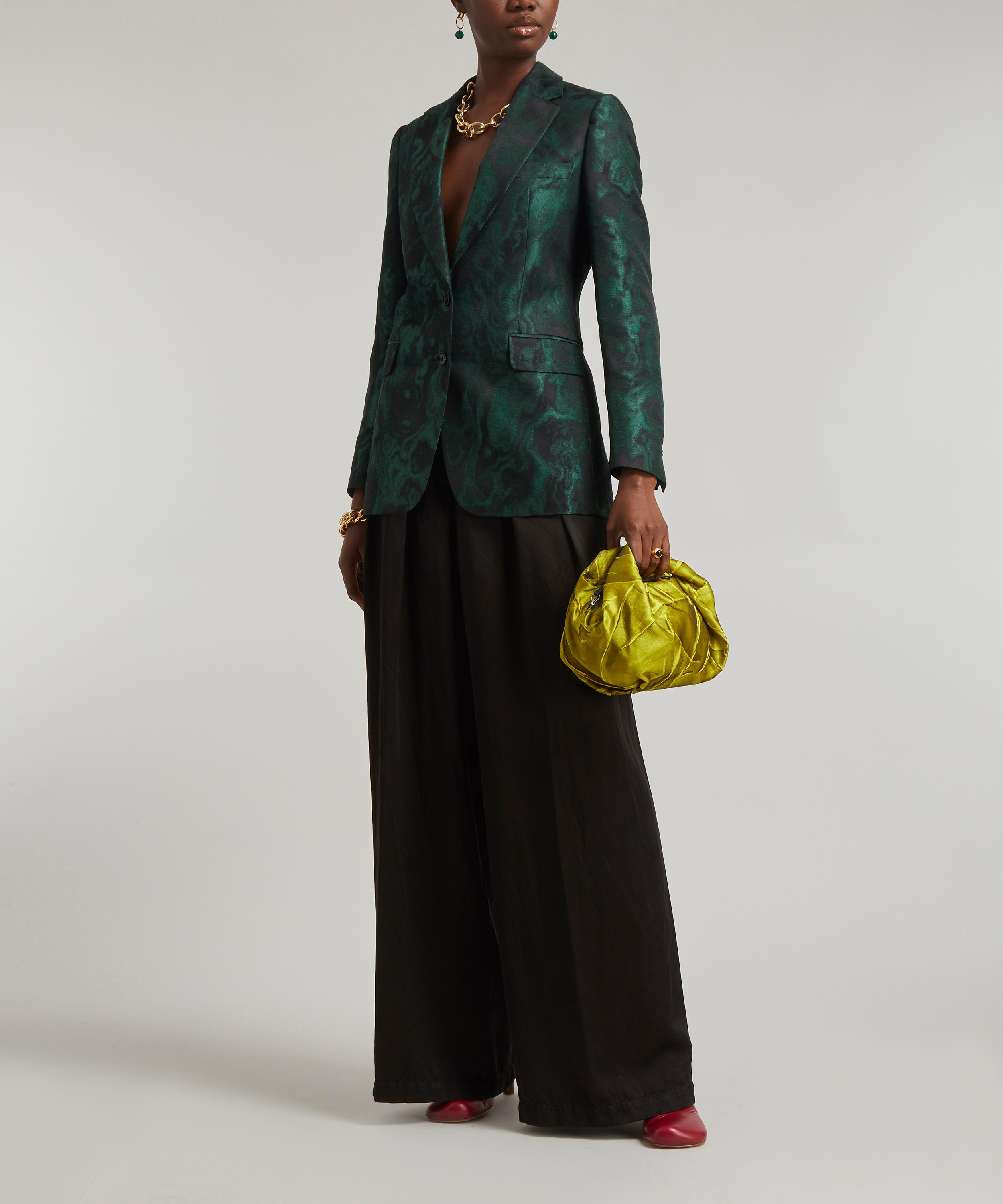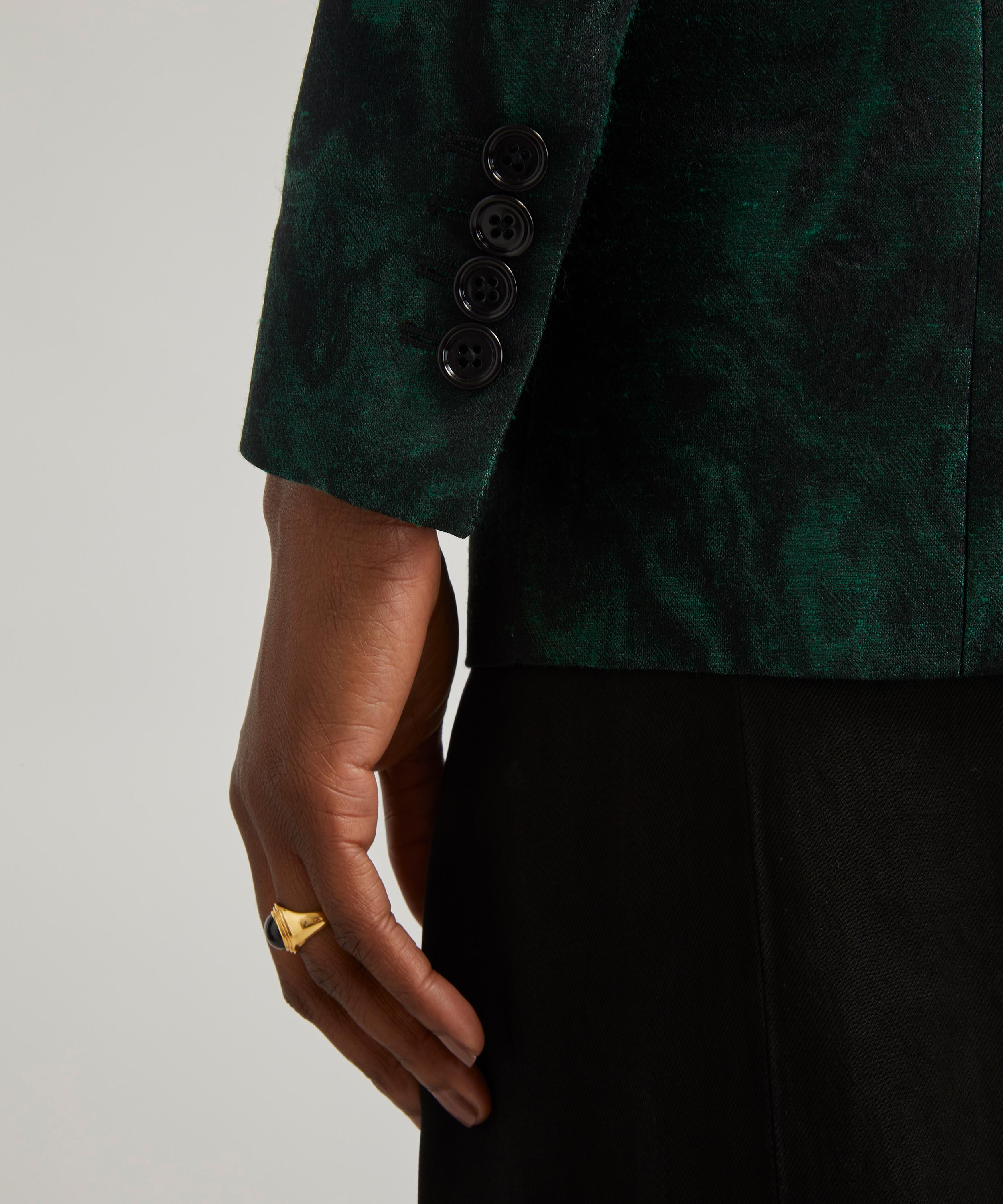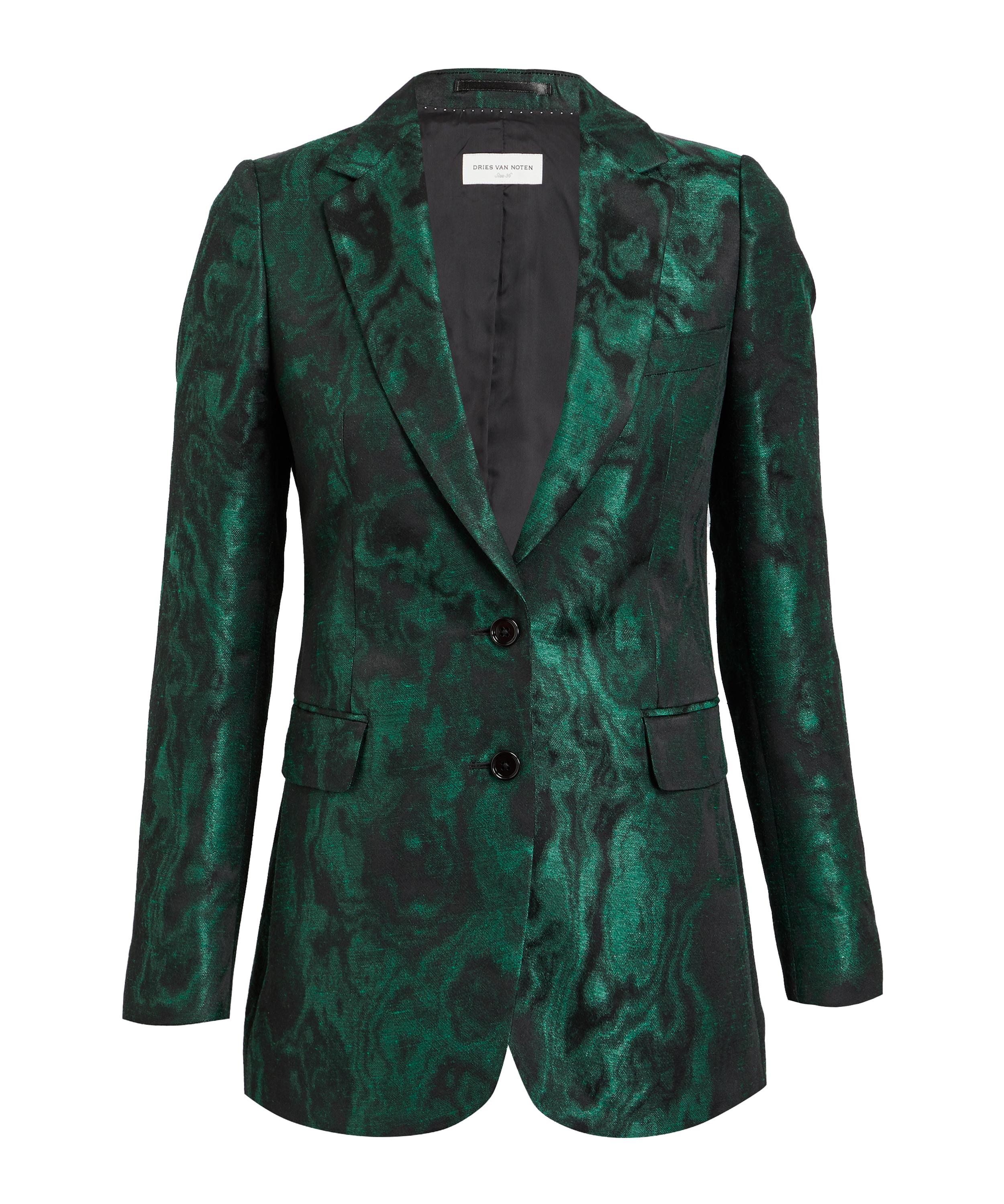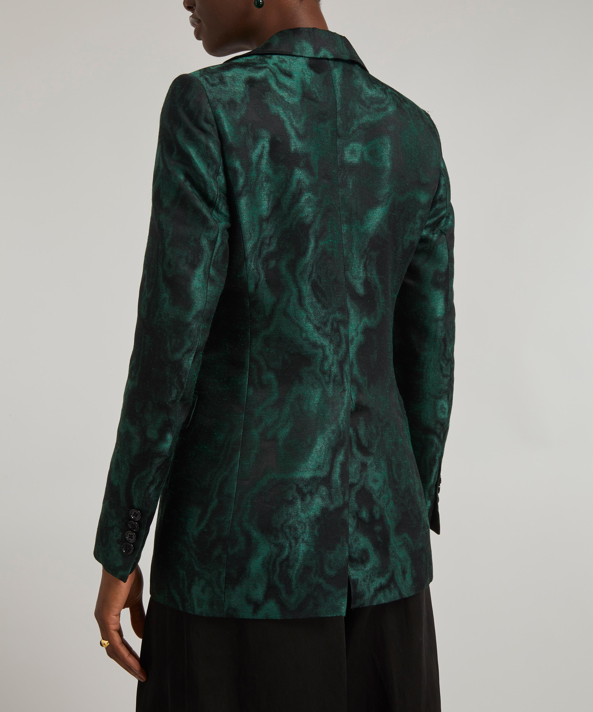 This meticulously crafted, marble-effect blazer flaunts Belgian designer Dries Van Noten’s faultless tailoring talents. Showcasing the brand's sought-after craftsmanship, this single-breasted jacket from Dries Van Noten is the chicest way to do formalwear. Crafted from an opulent silk-blend with an emerald-green, agate-like pattern, we love this highly luxurious piece paired with the brand's forward-thinking separates.