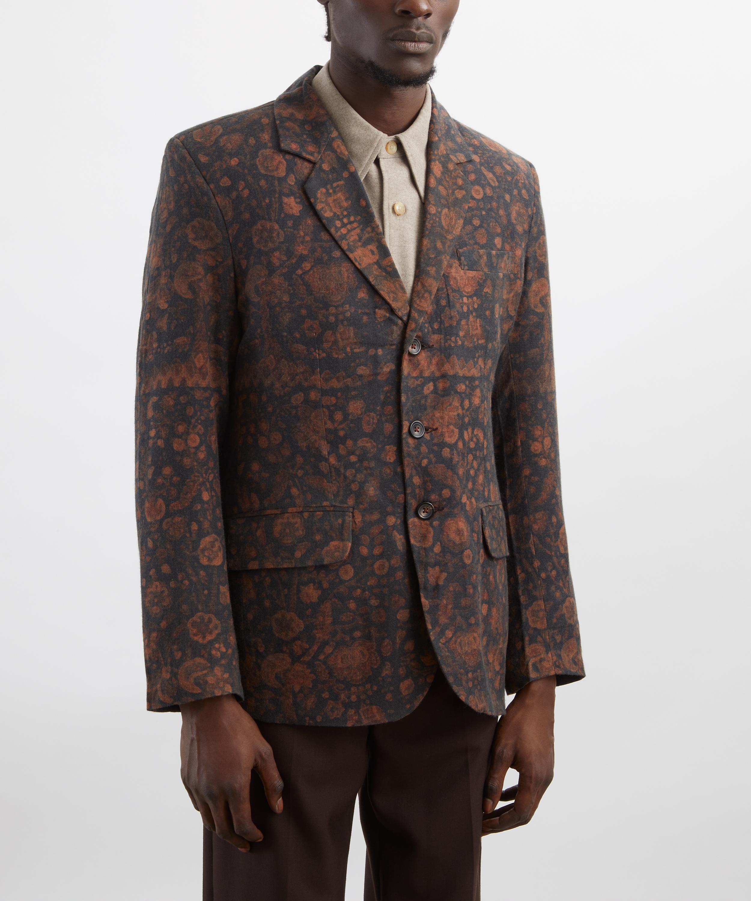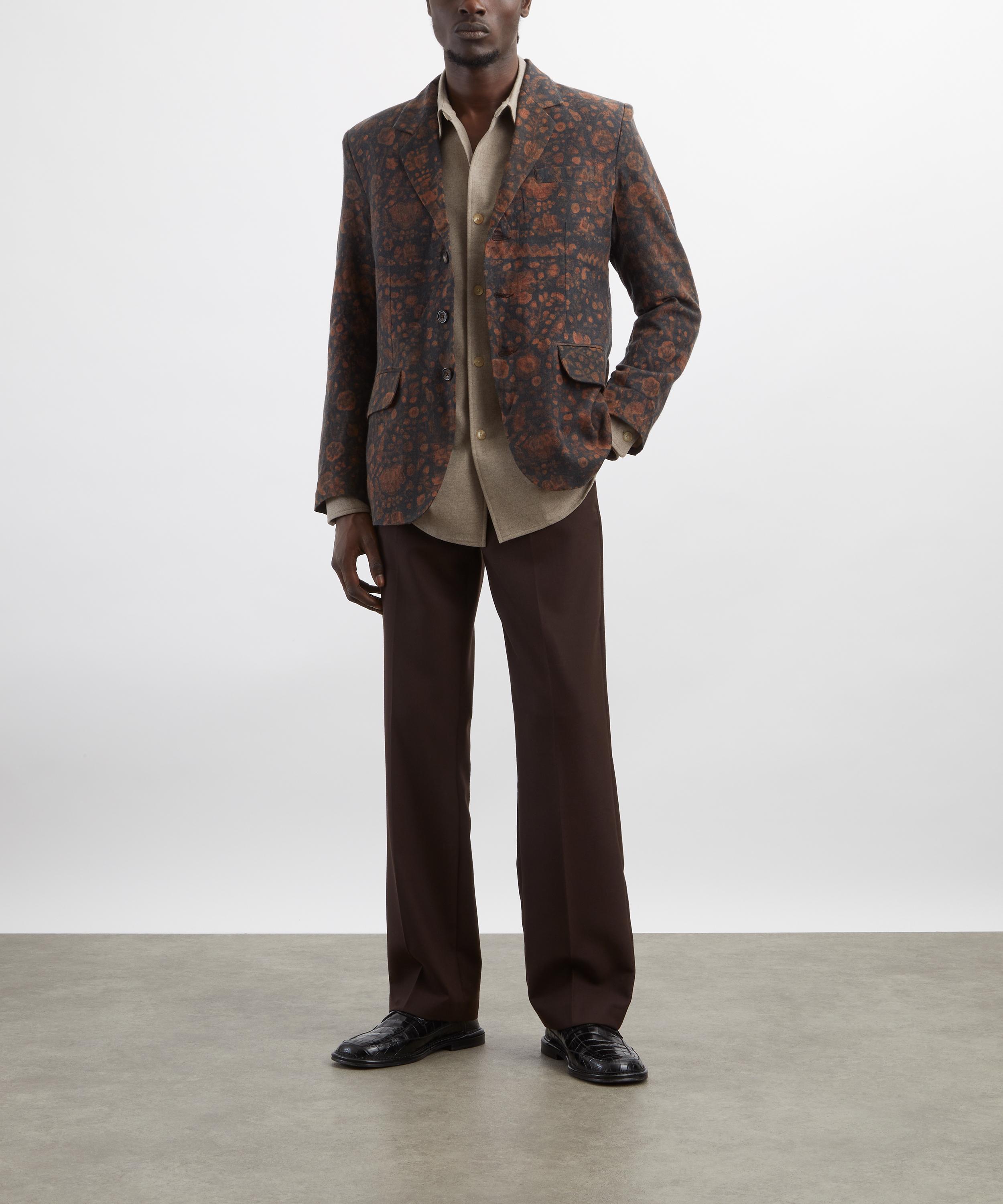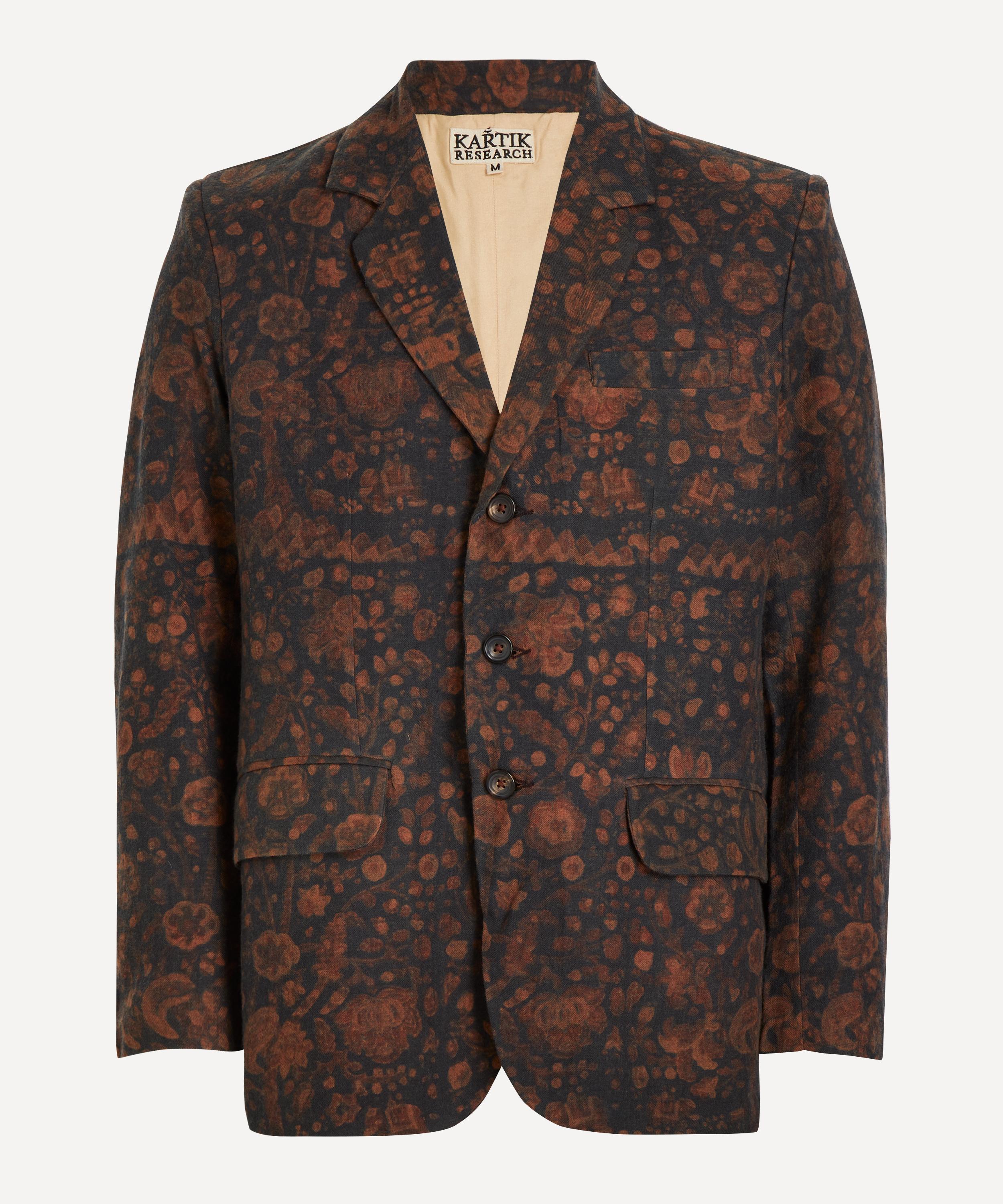 Cut from thick, handcrafted wool, it features notched lapels, long sleeves, a silk-gold lining and a two-button front. Finished with hand-applied block printing, each piece carries its own story - a timeless piece to be treasured for years to come.