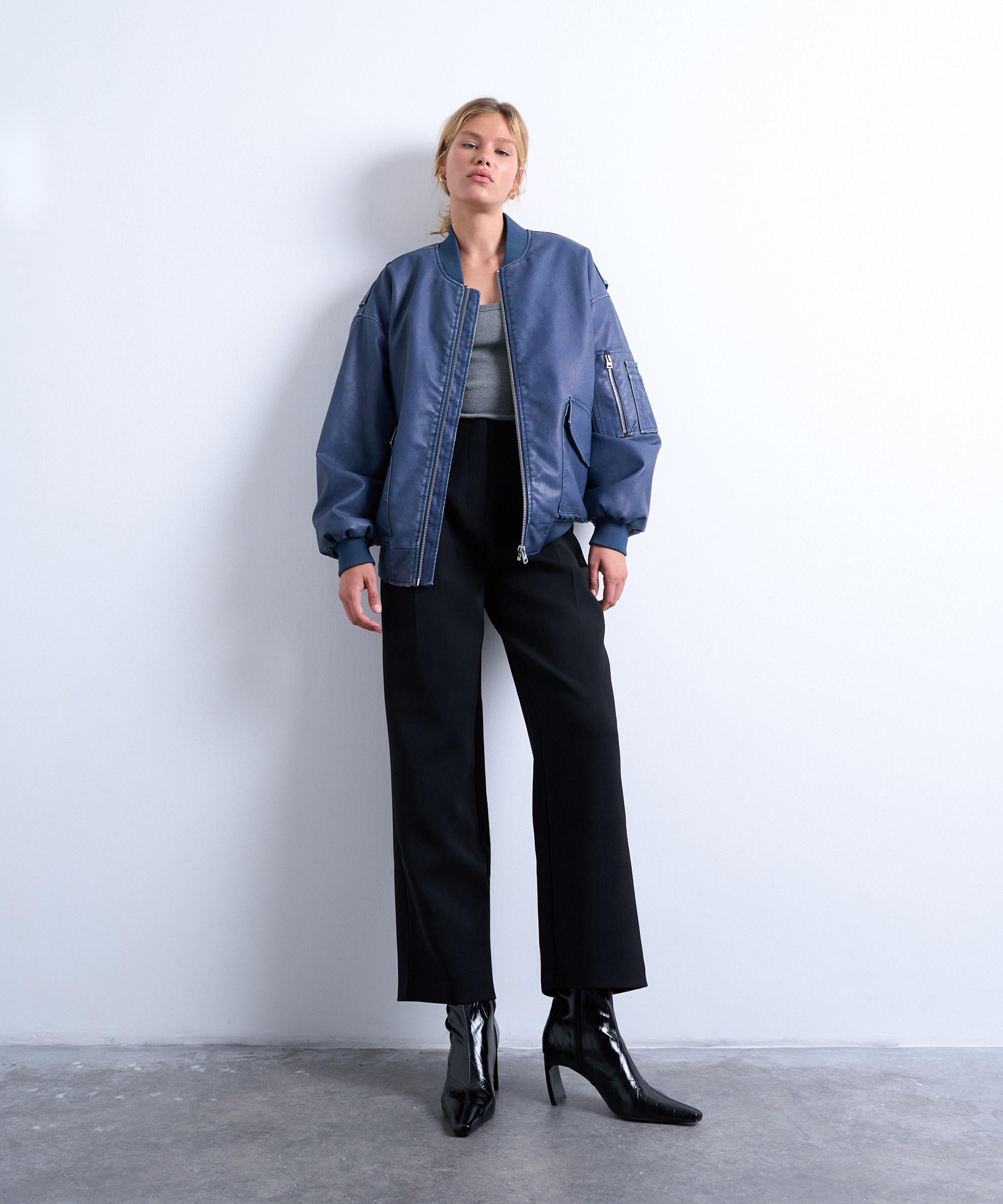 The Blue Faux Leather MA1 Bomber Jacket is part of the exclusive Liberty x TOPSHOP residency, marking TOPSHOP’s highly anticipated relaunch at Liberty.