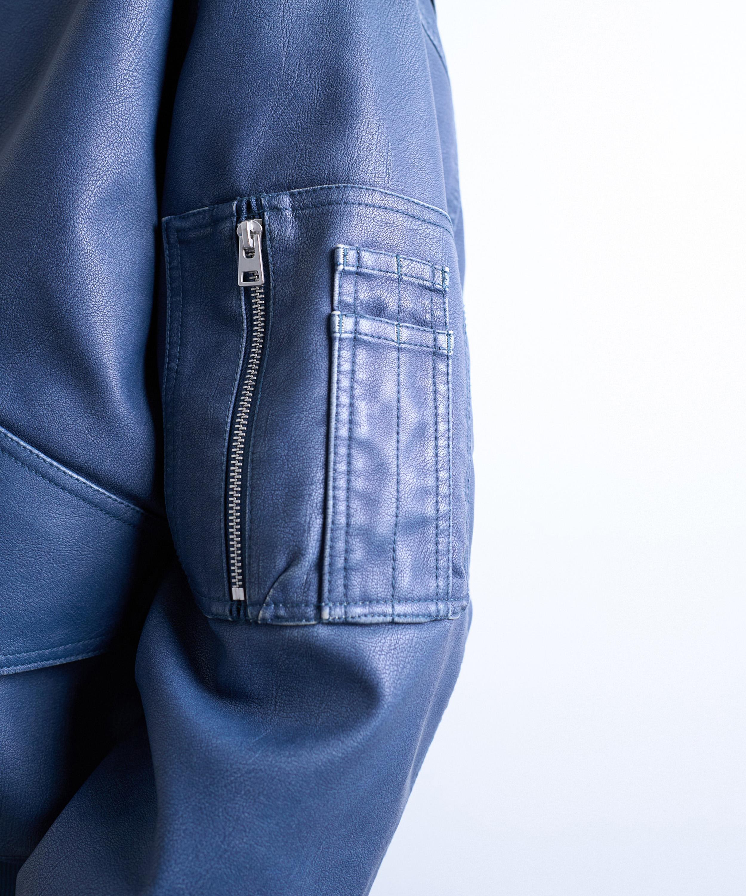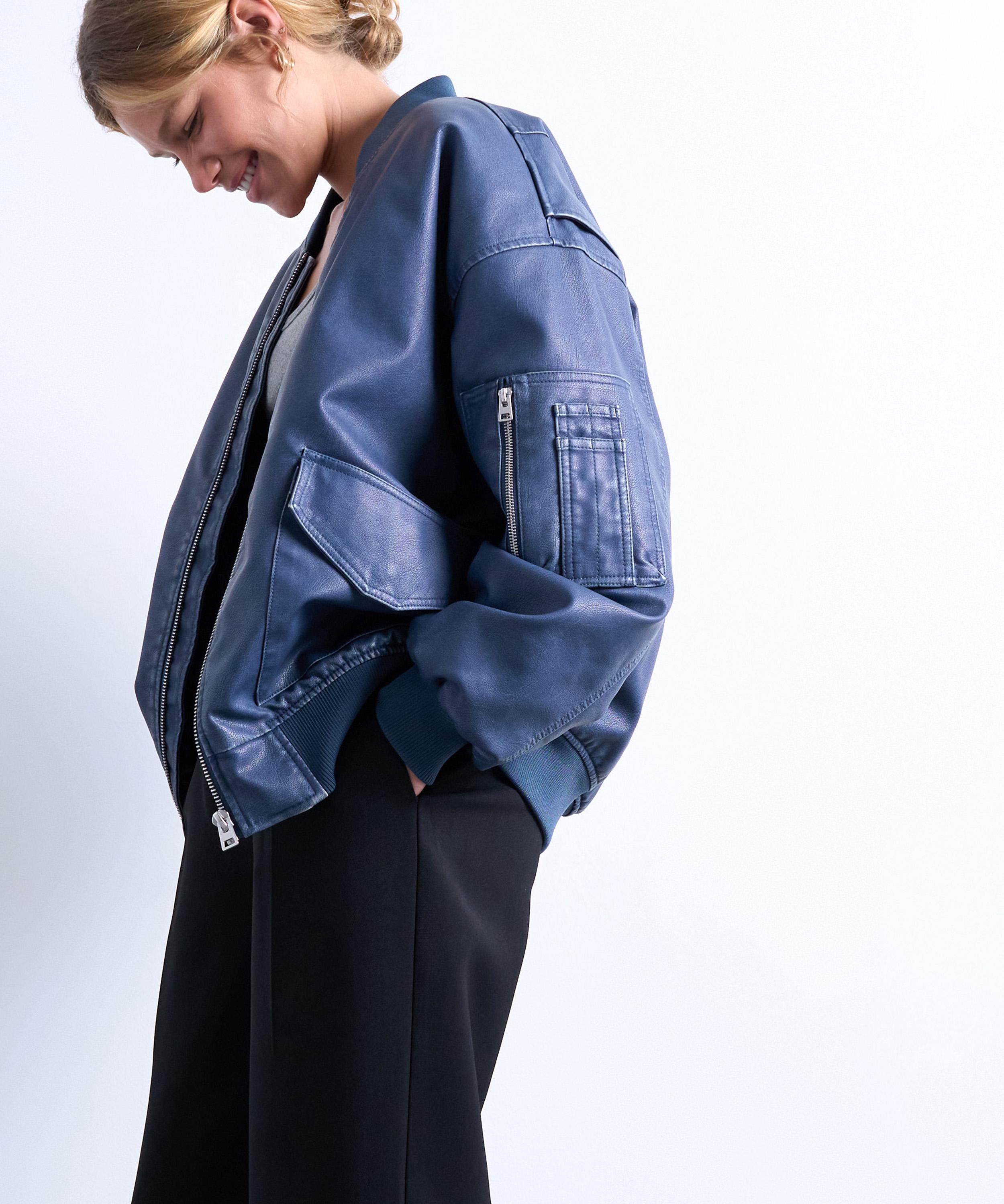 Crafted from smooth, matte faux leather with a washed finish, this jacket is cut for a relaxed fit and features classic MA-1 styling - complete with a baseball collar, zip fastening, ribbed trims, and a sleeve zip pocket for an authentic utilitarian touch.