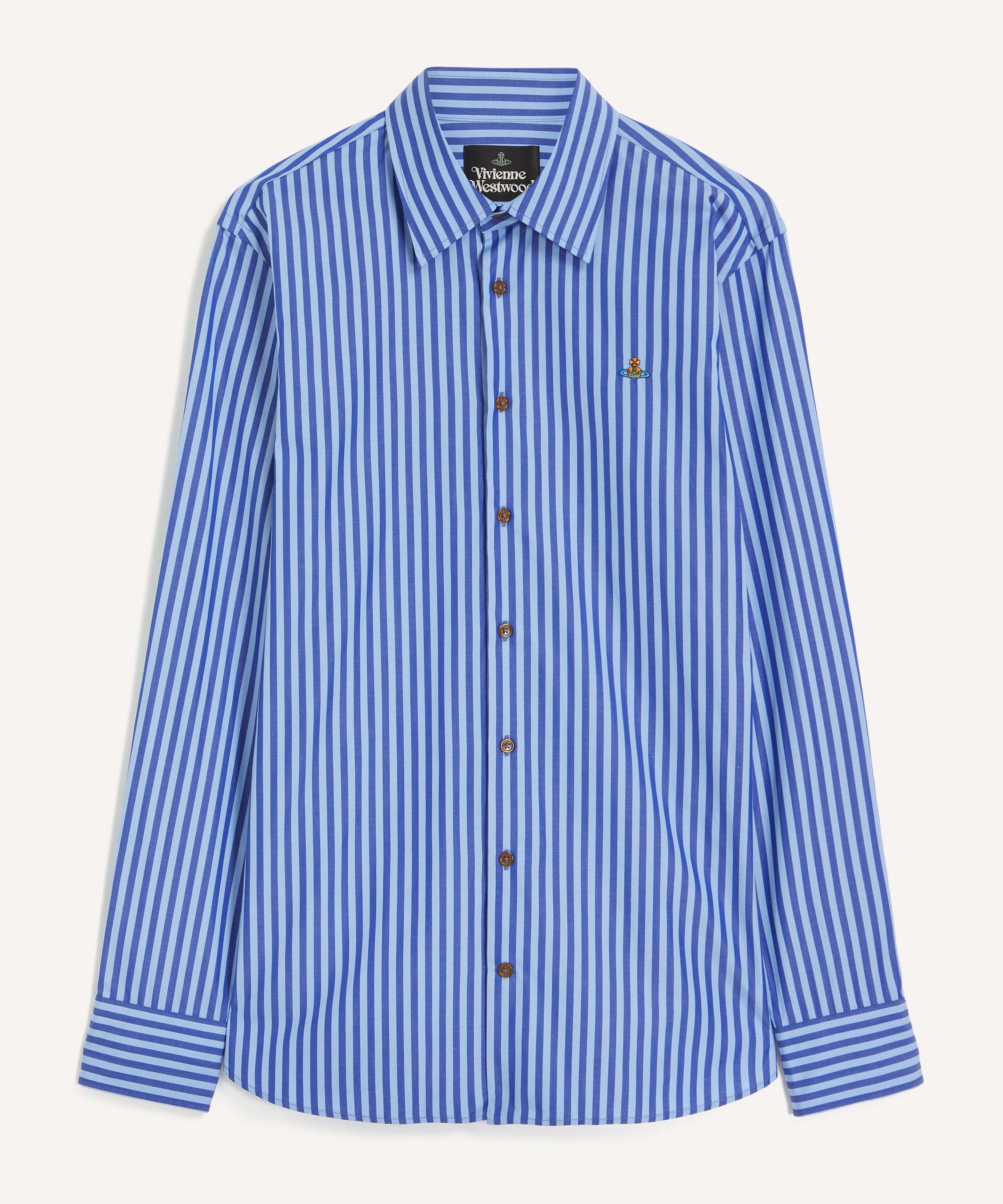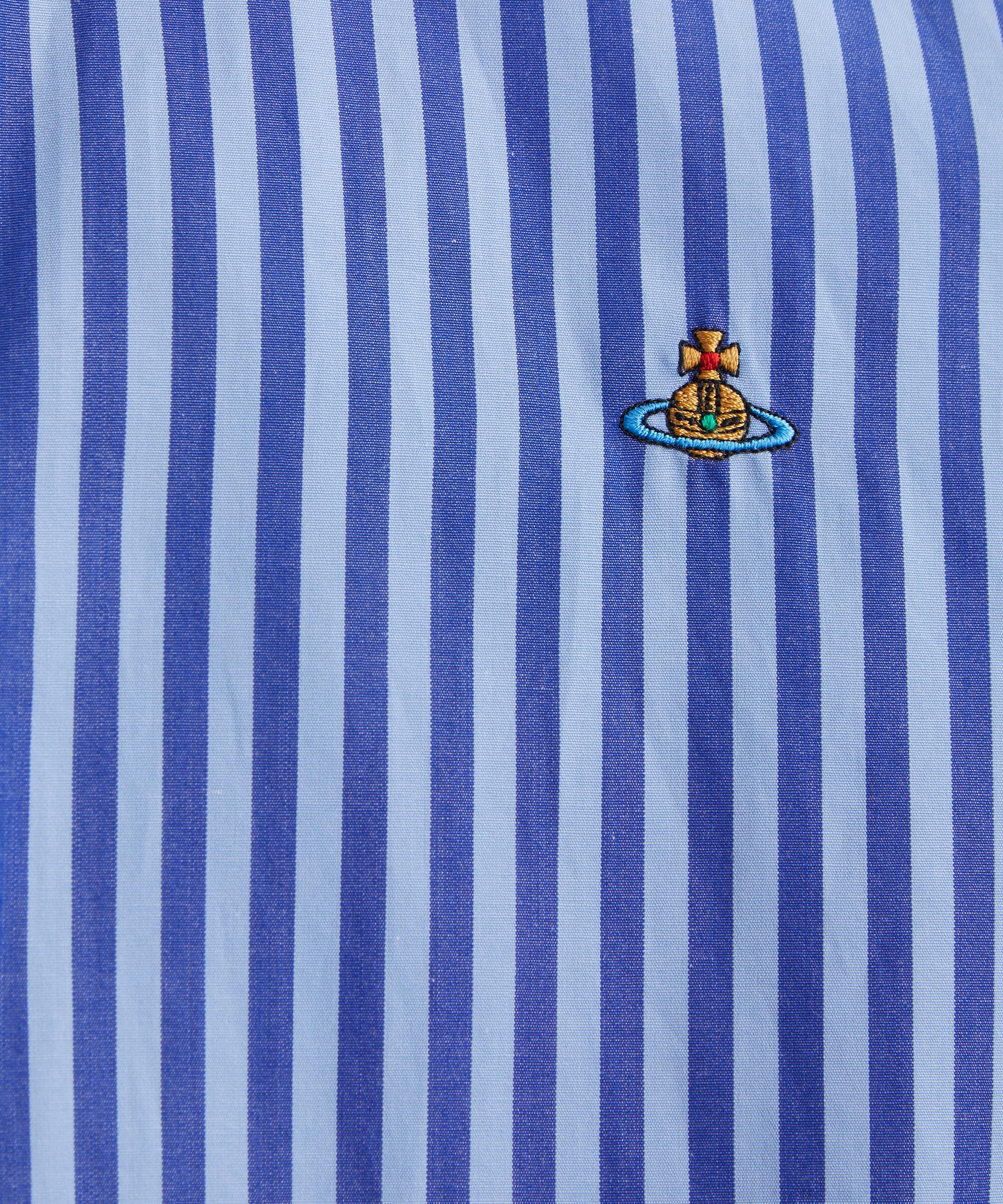 Crafted from soft cotton with vertical blue stripes, the Ghost shirt is cut to a classic regular fit and detailed with a point collar, amber-coloured button fastening, and a multi-coloured orb embroidered at the chest for a refined signature finish.
