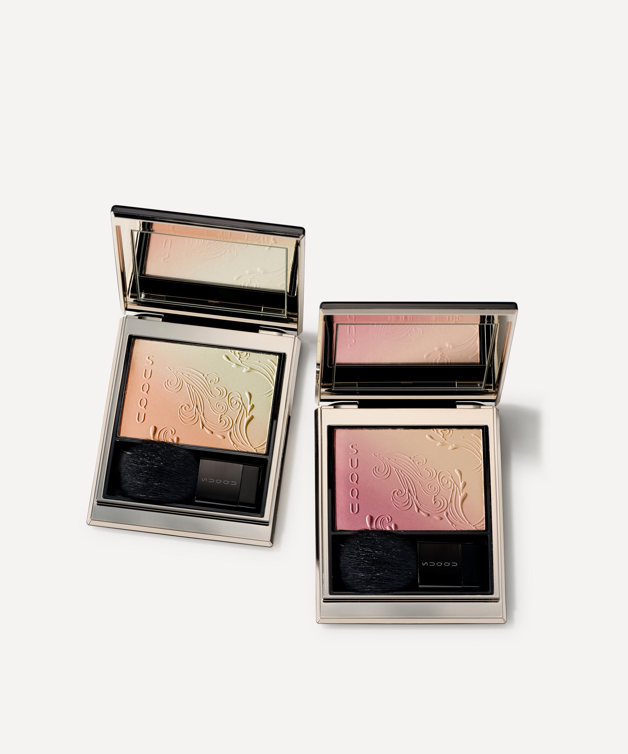Create a naturally flushed, blended look with Suqqu's Blurring Colour Blush, a unique graduating cheek colour and highlighter duo that evokes the delicate tones of traditional floral folding screen paintings.