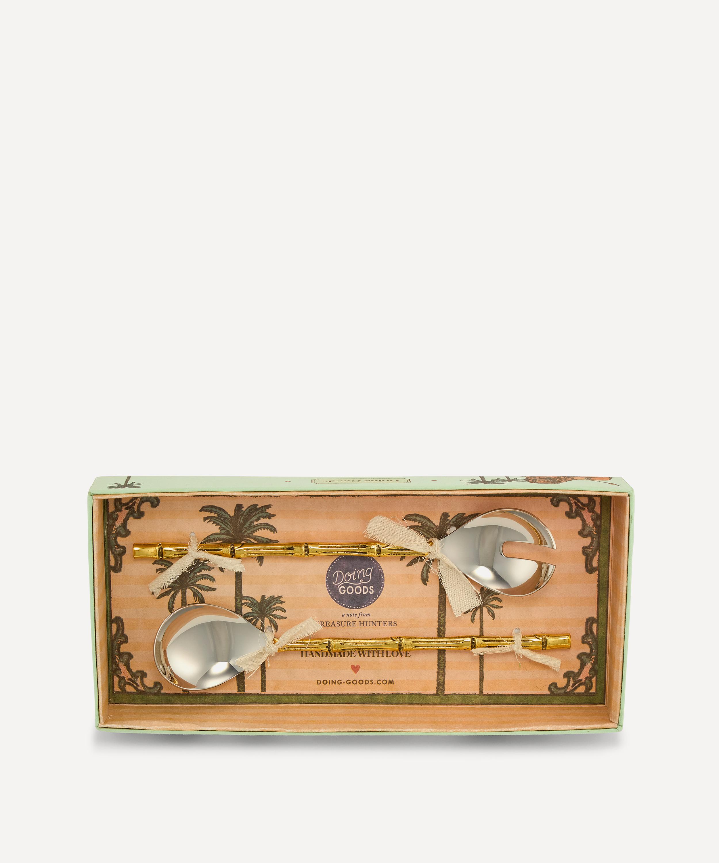 Add a touch of elegance when serving your guests with the Bodhi Bamboo Salad Serving Spoon Set from Doing Goods.