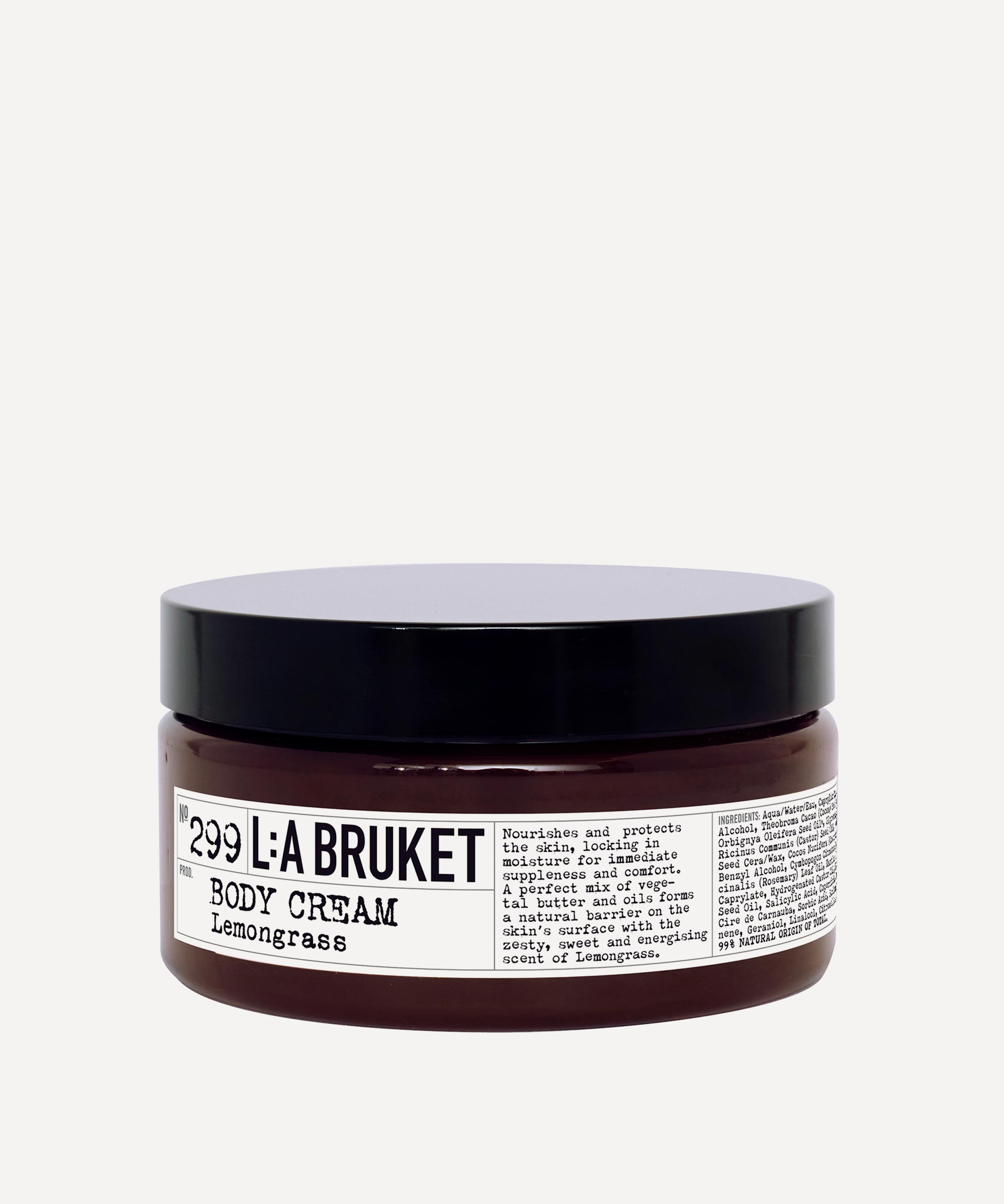 Optimise all-day skin hydration with L:A Bruket’s Body Cream in Lemongrass, a deeply nourishing silky blend of plant-based butters and oils to lock in long-lasting moisture.