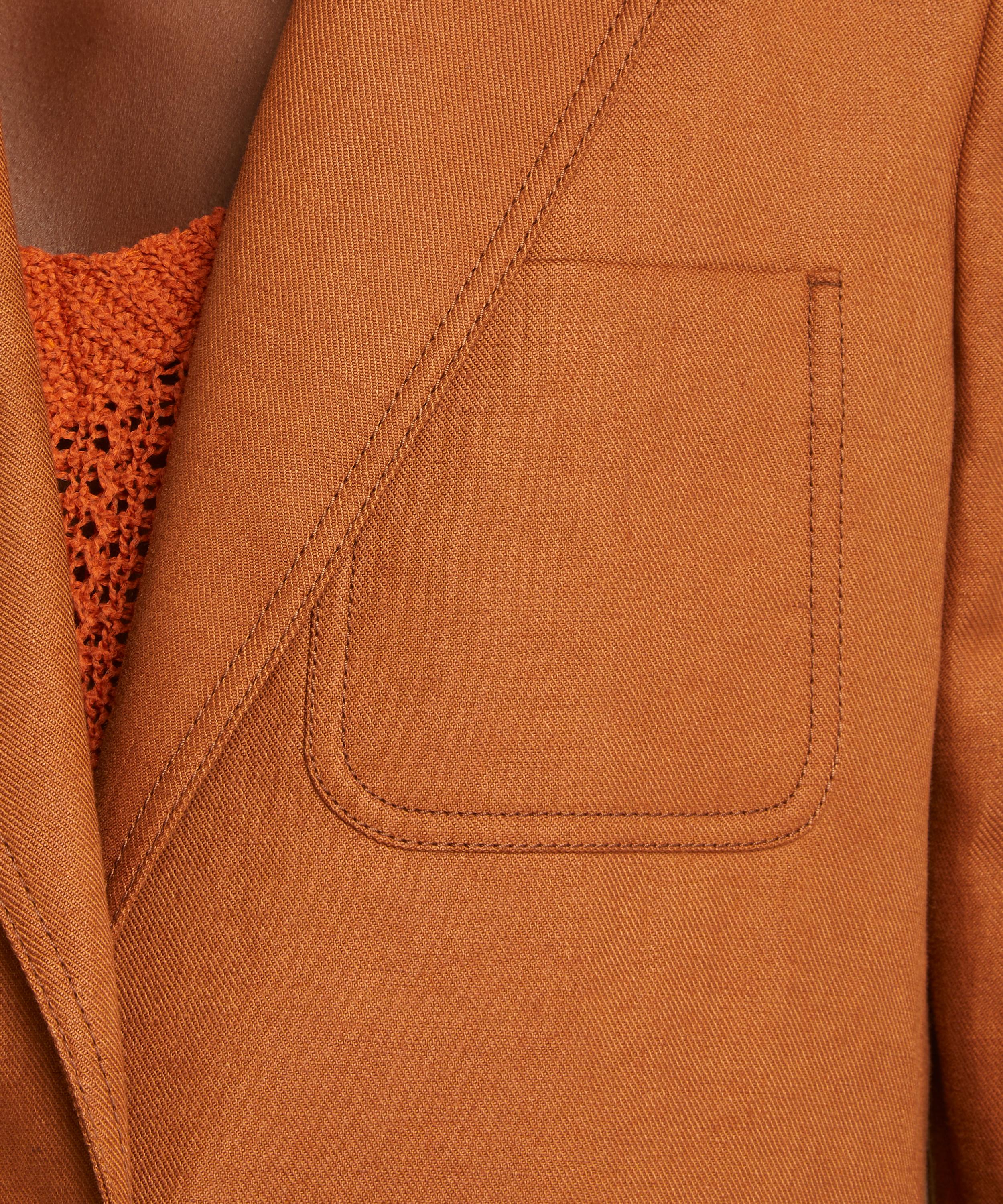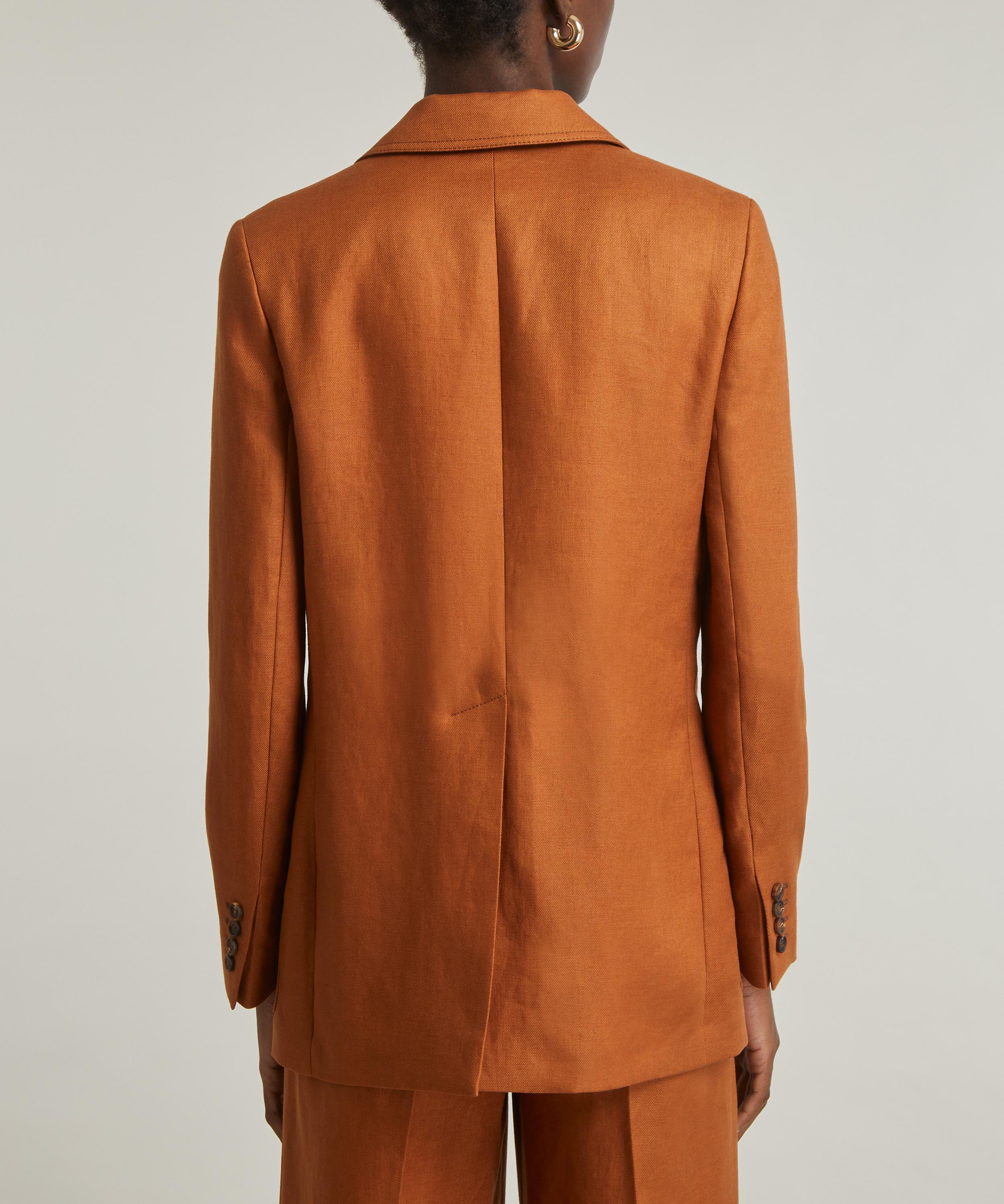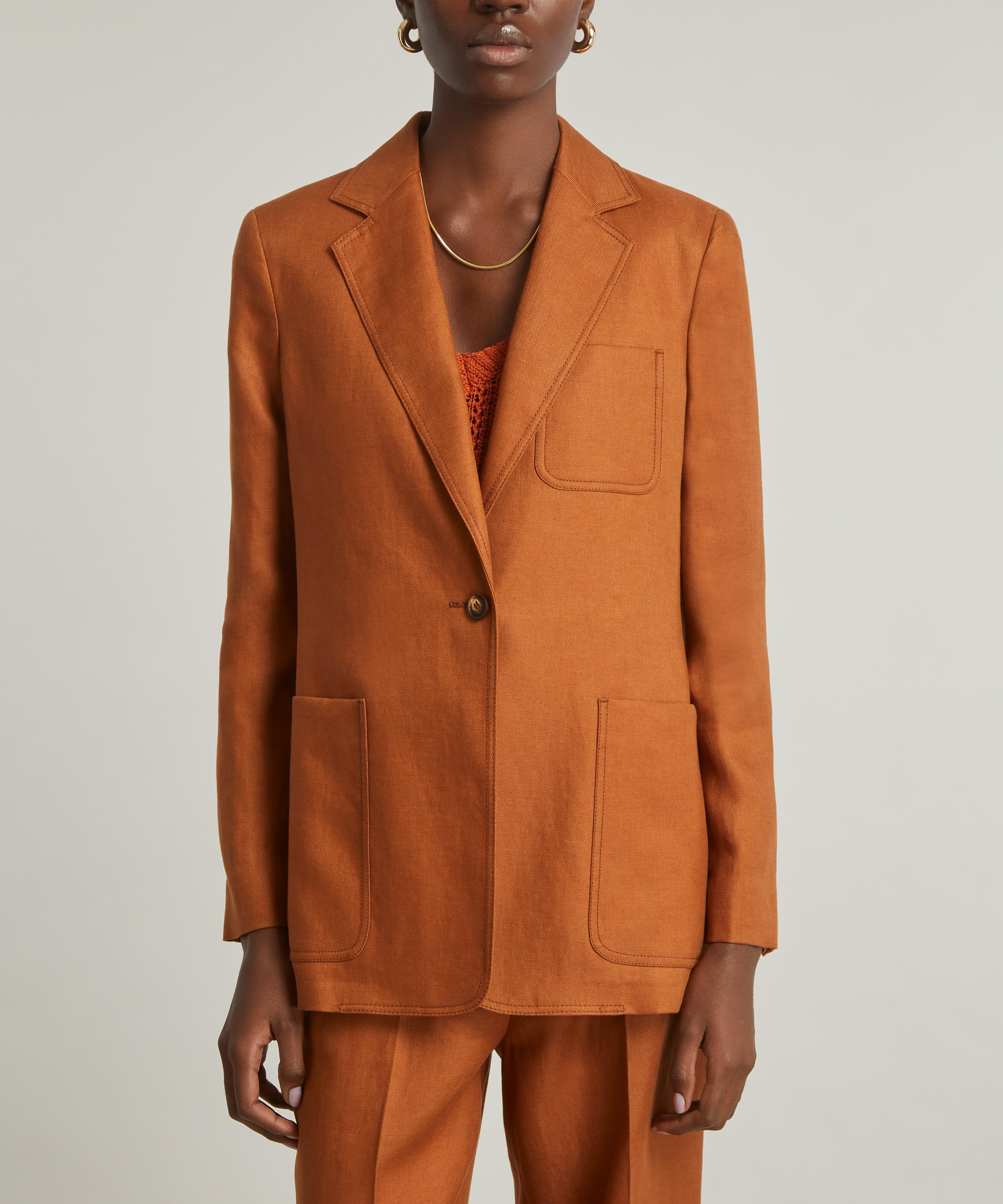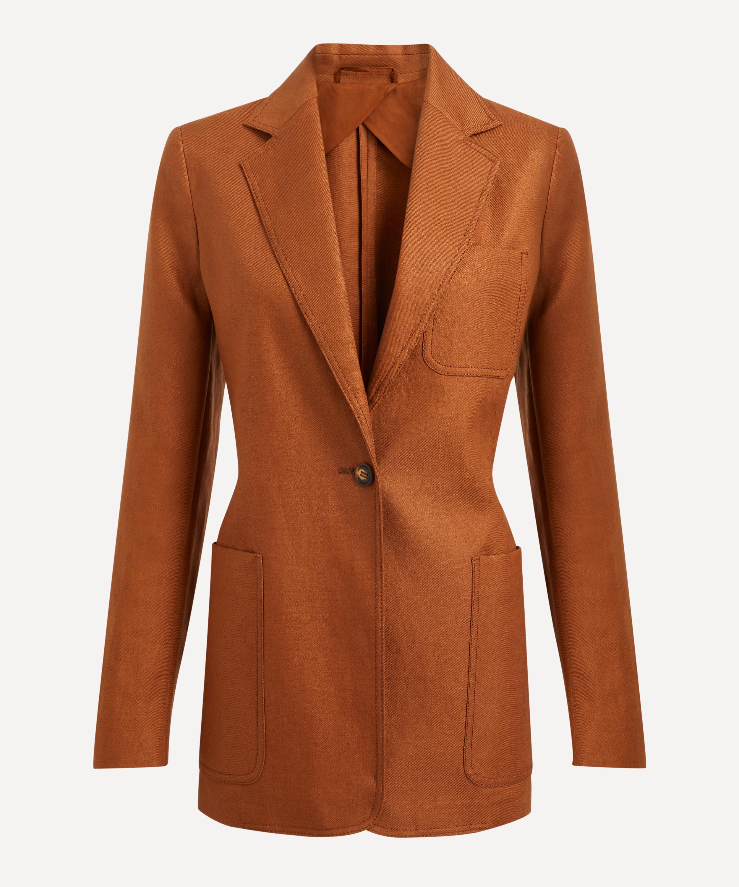 Made of pure linen twill, this single-breasted blazer boasts a flattering, semi-fitted silhouette complete with a lapel collar, three patch pockets, and a single-button closure. Pair it with the matching Hangar Flared Linen Trousers for an effortlessly sophisticated sartorial look.