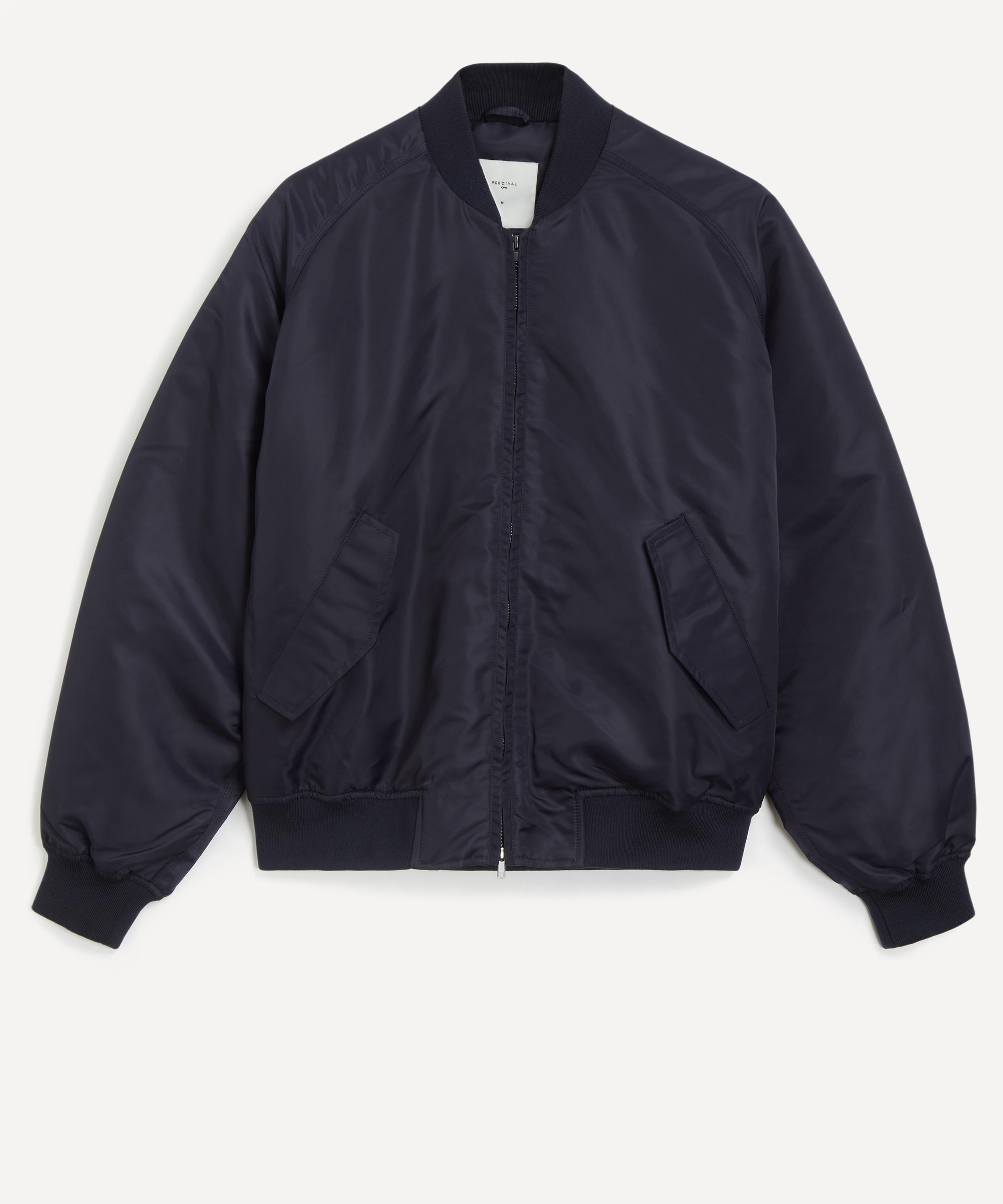 Crafted from a heavyweight premium nylon for a relaxed fit, this jacket features a press stud and zip front closure, a ribbed collar, and traditional flight jacket pockets, and is complete with contrast wadded lining and interior pockets – with a water-resistant finish, it is a versatile piece suitable for colder evenings and smart casual events.