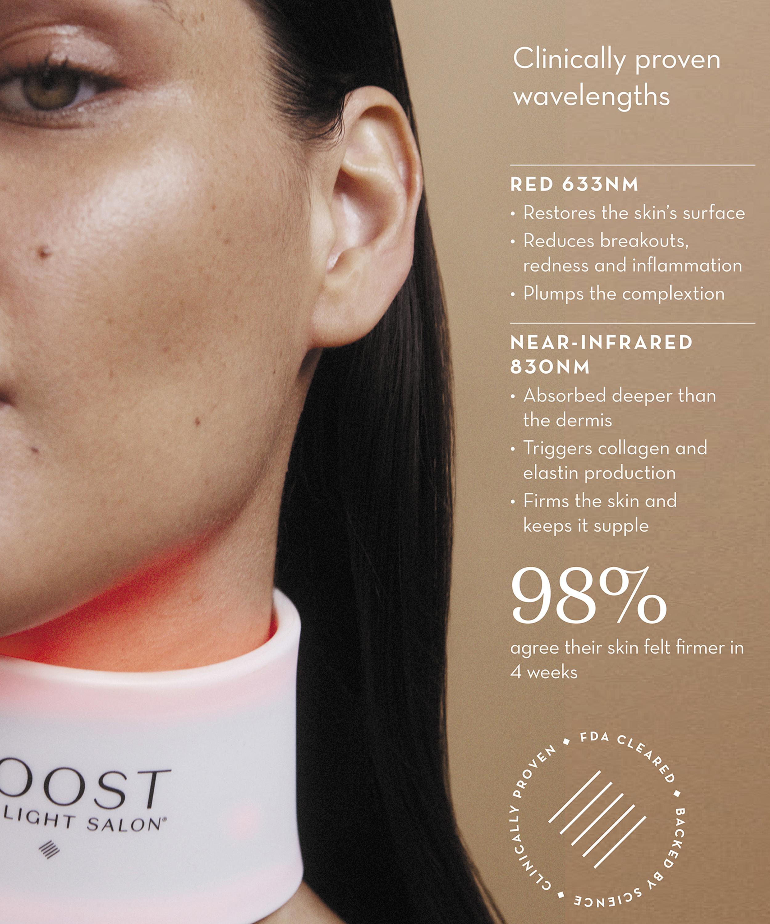 - Clinically proven red 633nm and near infrared 830nm wavelengths