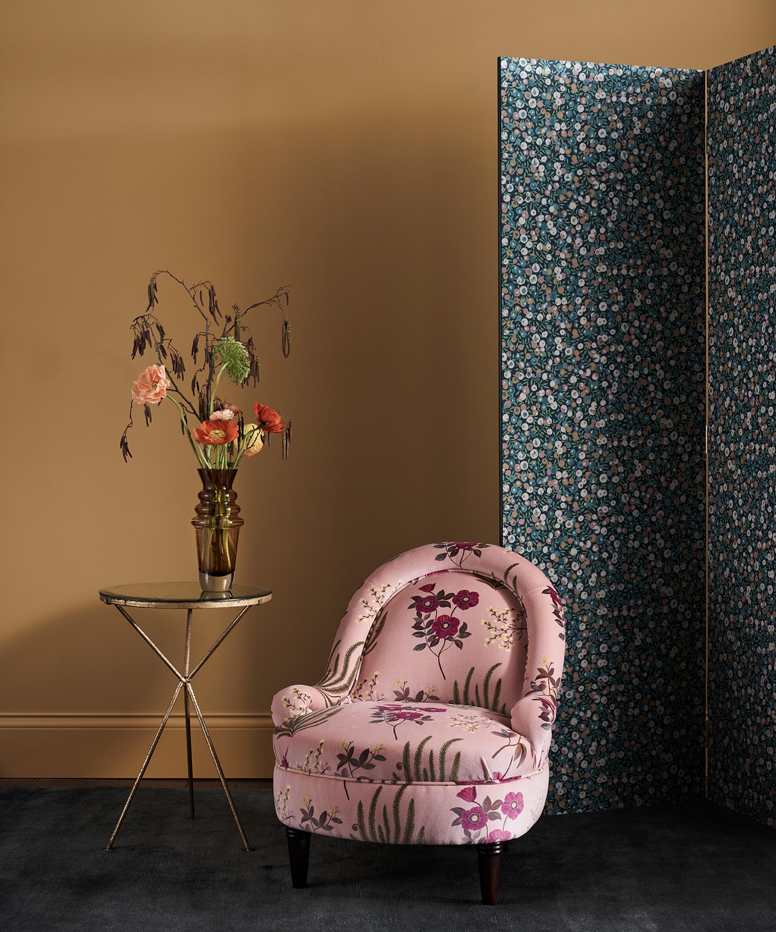 Hand-painted in the Liberty design studio, Botanical Flora is a hero artwork of the Floribunda story, celebrating the historic tradition of botanical illustration in Britain. Botanical Flora appears on cotton velvet, bringing to life the soft painterly nature of the motifs.