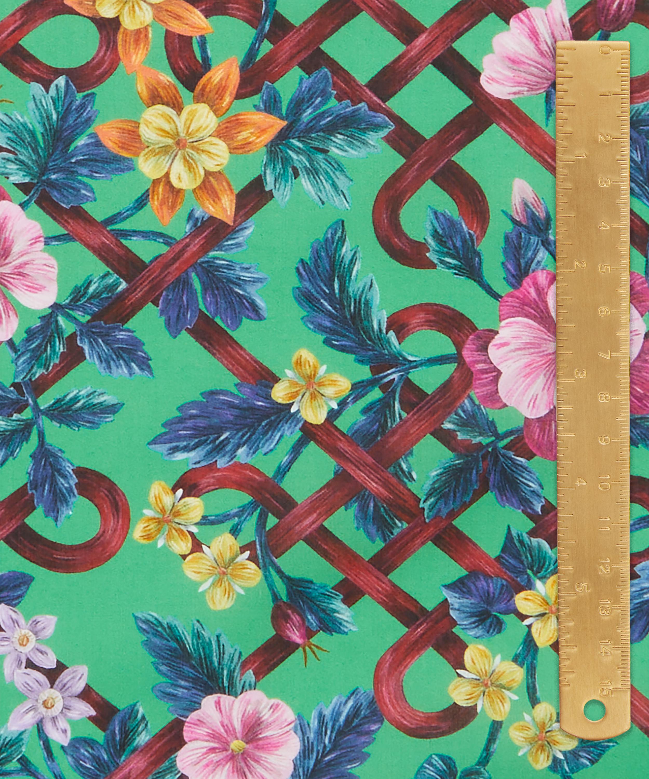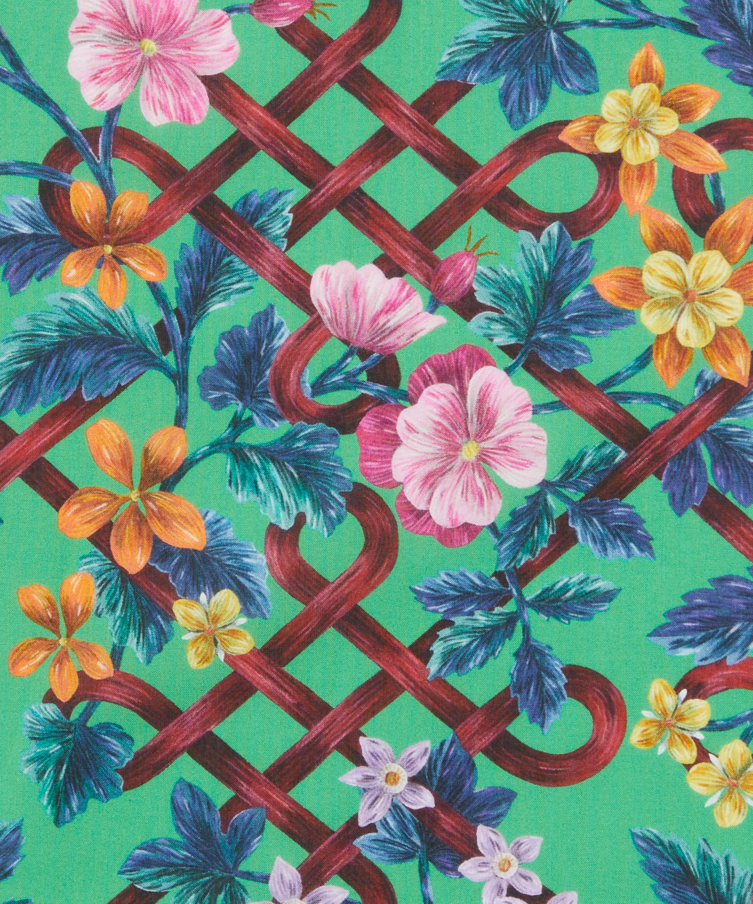Botanical Knot transports us back to Liberty's 1900s needlework department, which sold many designs in the style of multi-talented Arts and Crafts luminary, May Morris. Inspired by her distinctive aesthetic, this botanical trellis was hand-painted in gouache and delicately overlaid with pencil marks, echoing the intricacy of her embroidery stitching. Its flowers and foliage entwine through a lattice of interlocking knots, further honouring Morris's work, which often featured Celtic-influenced knotwork motifs. This print is part of the anniversary collection’s final chapter, Collectibles. Offering a design for each decade, this timeline of hero prints encapsulates 150 years - exploring the design house’s varied and influential handwriting while honouring key moments of creativity and discovery.